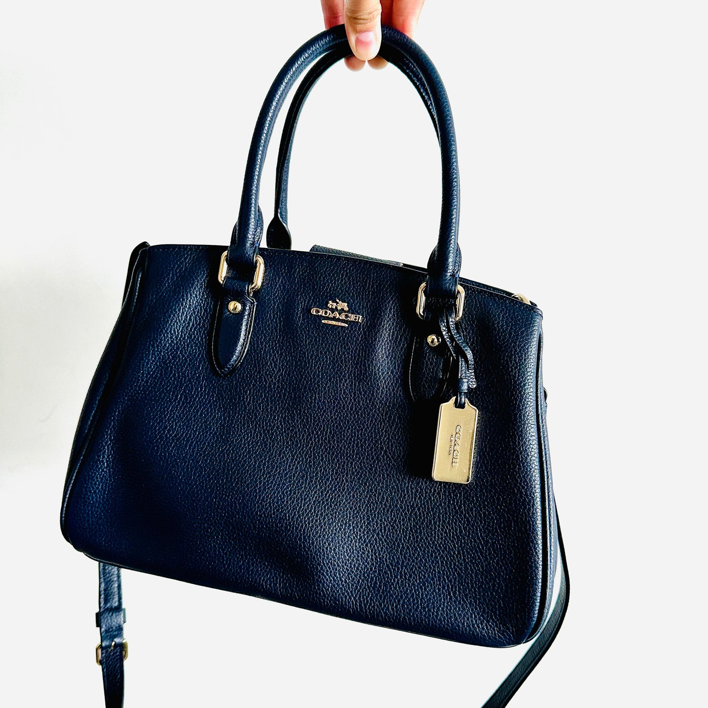 Coach Navy Blue GHW Empire Carryall 2-Way Top Handle Shoulder Sling Pebbled Leather Tote Bag
