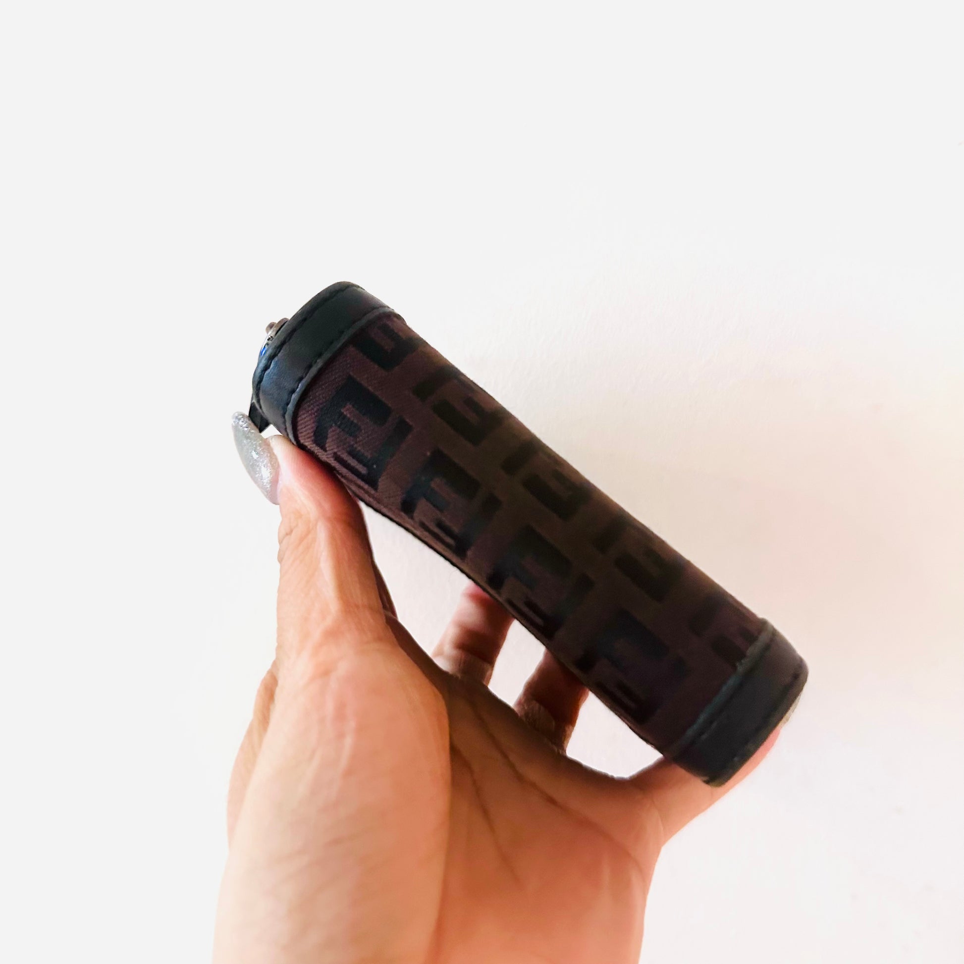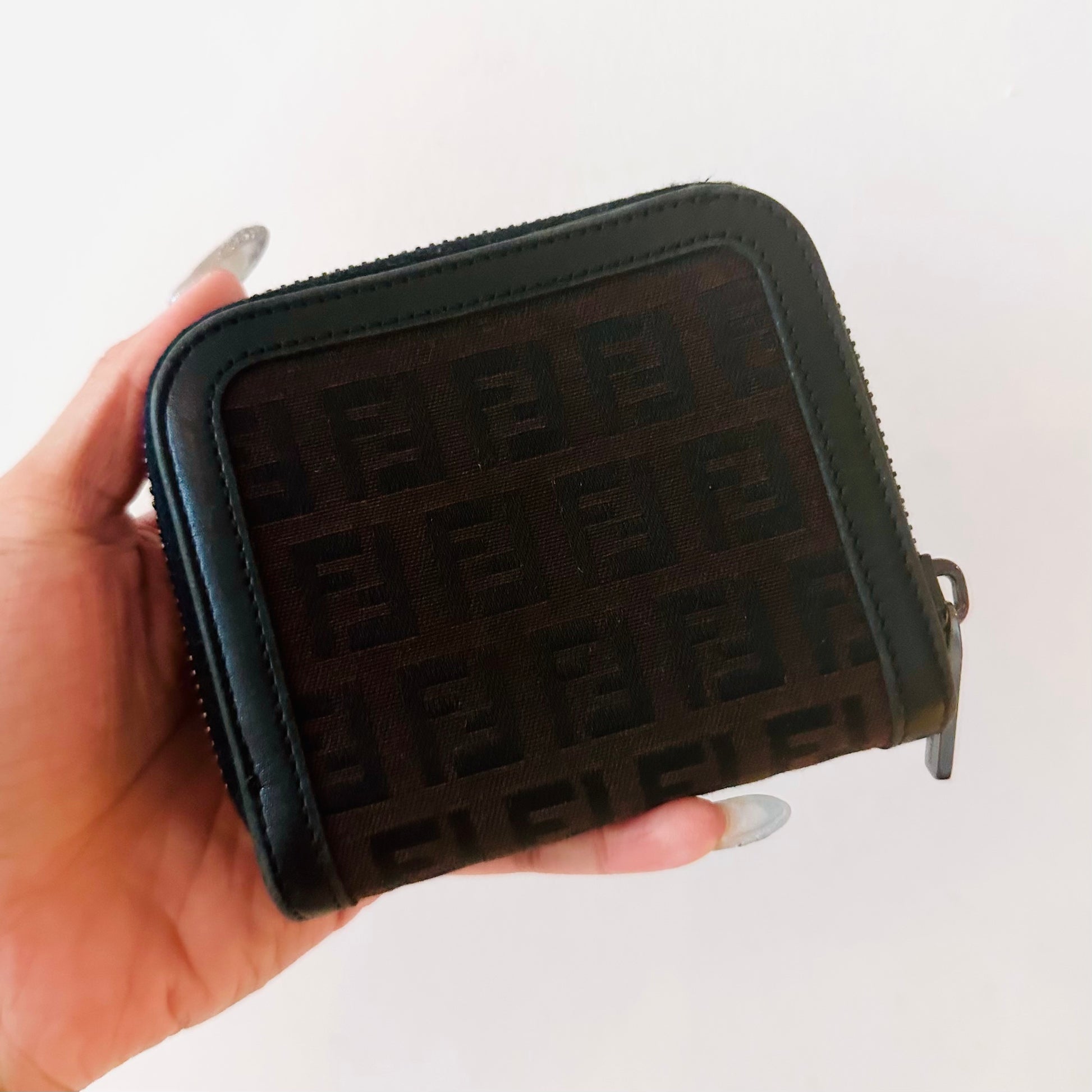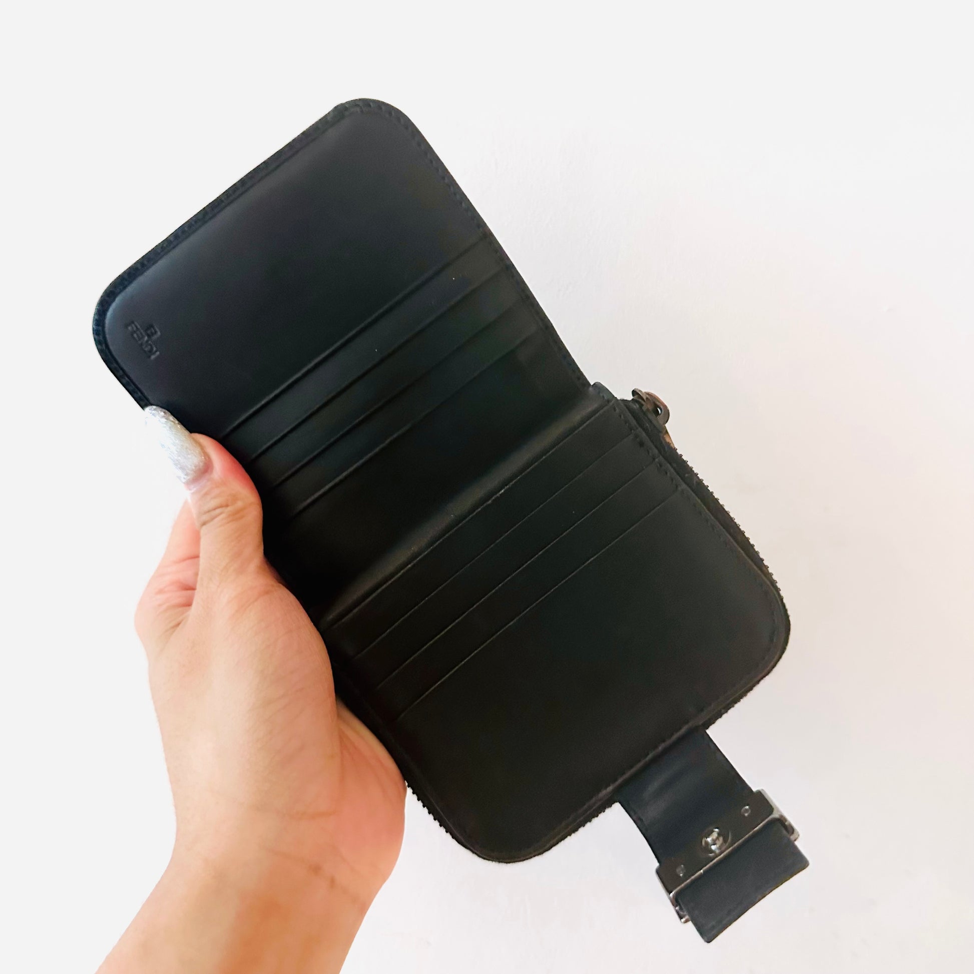 Fendi Black / Brown FF Zucchino Monogram Logo Flap Compact Bifold Wallet