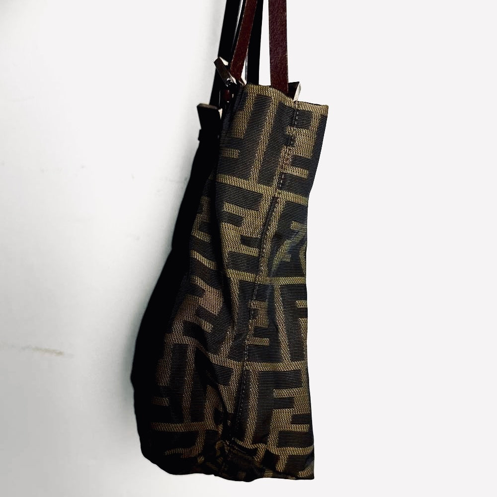 Fendi Brown FF Monogram Logo Zucca Zucchino Shopper Shoulder Tote Bag