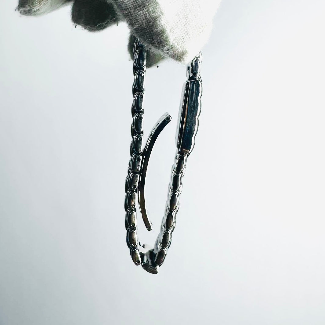 16cm wrist size, can be resized. This comes with holder, box, card, extra links, front logo and number.