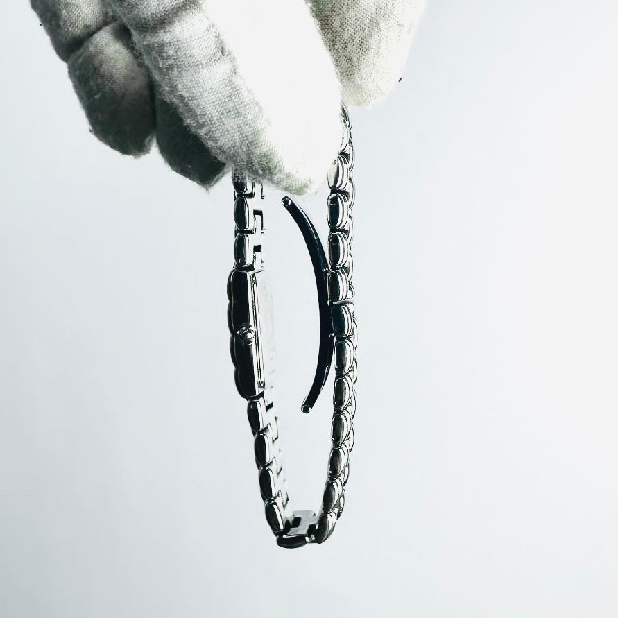 Fendi FF Monogram Logo White Dial 660L Rectangular Stainless Steel 15MM Quartz Watch
