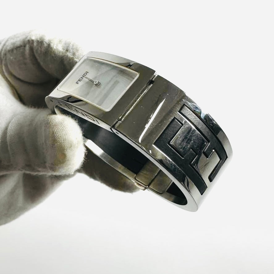 Fendi FF Monogram Logo White Dial Rectangular Stainless Steel 22MM Quartz Watch