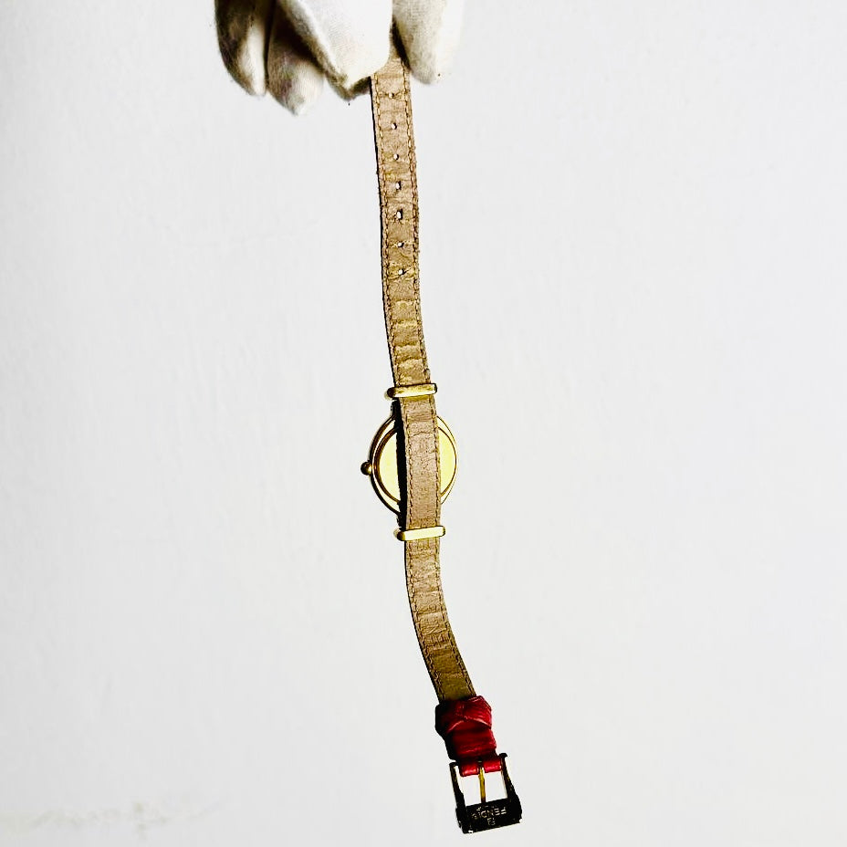 Fendi Gold Stainless Steel Oval Dial Leather Strap 24MM Watch
