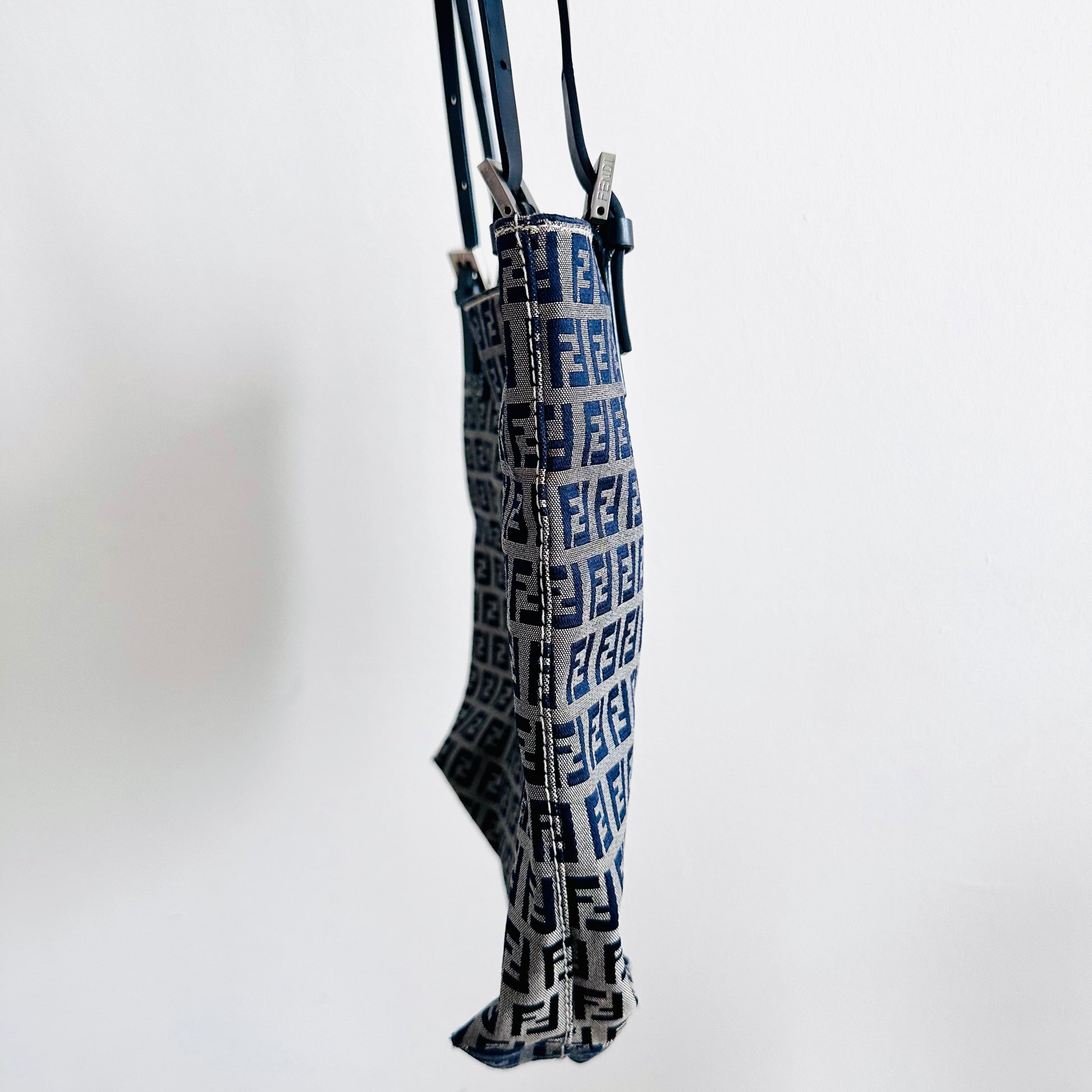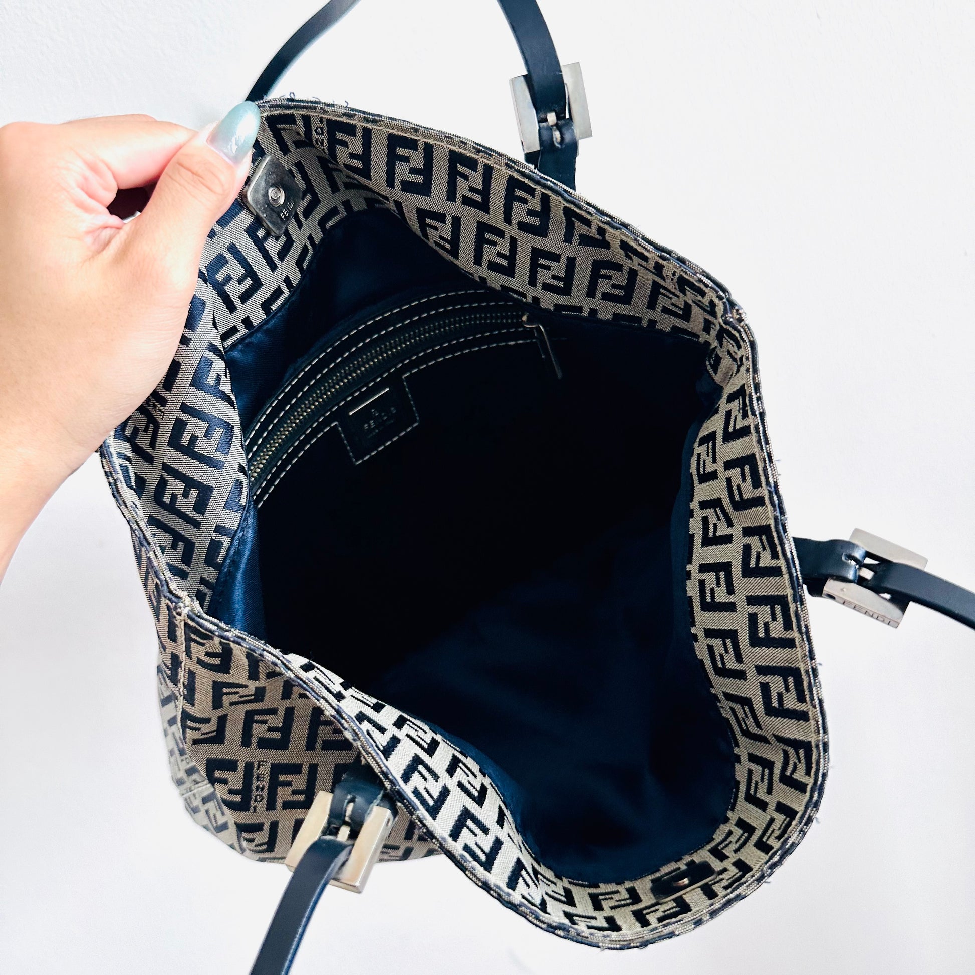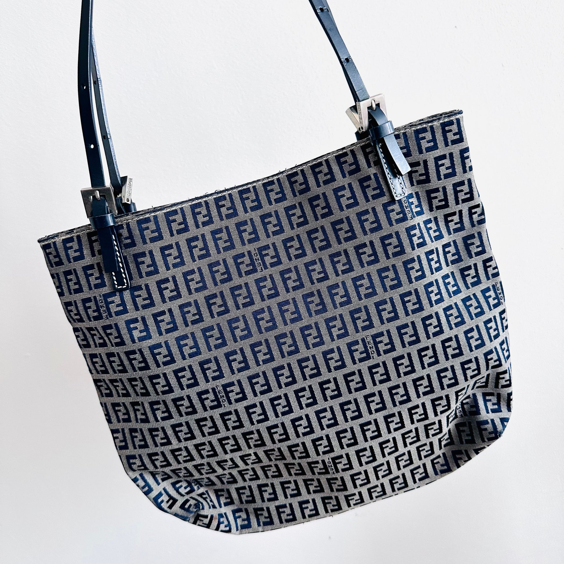 Fendi Zucca Navy Blue Zucchino FF Monogram Logo Shopper Shoulder Tote Bag