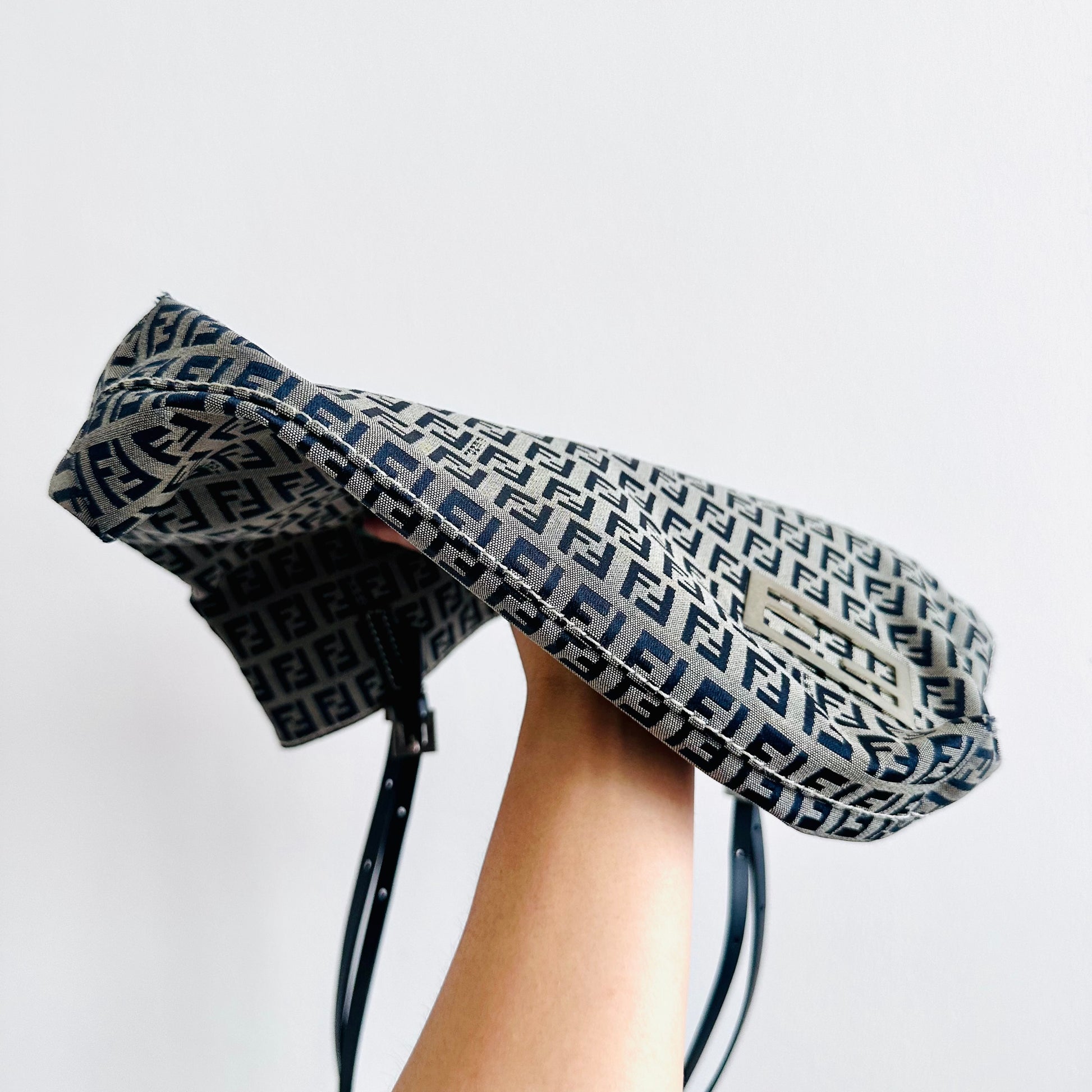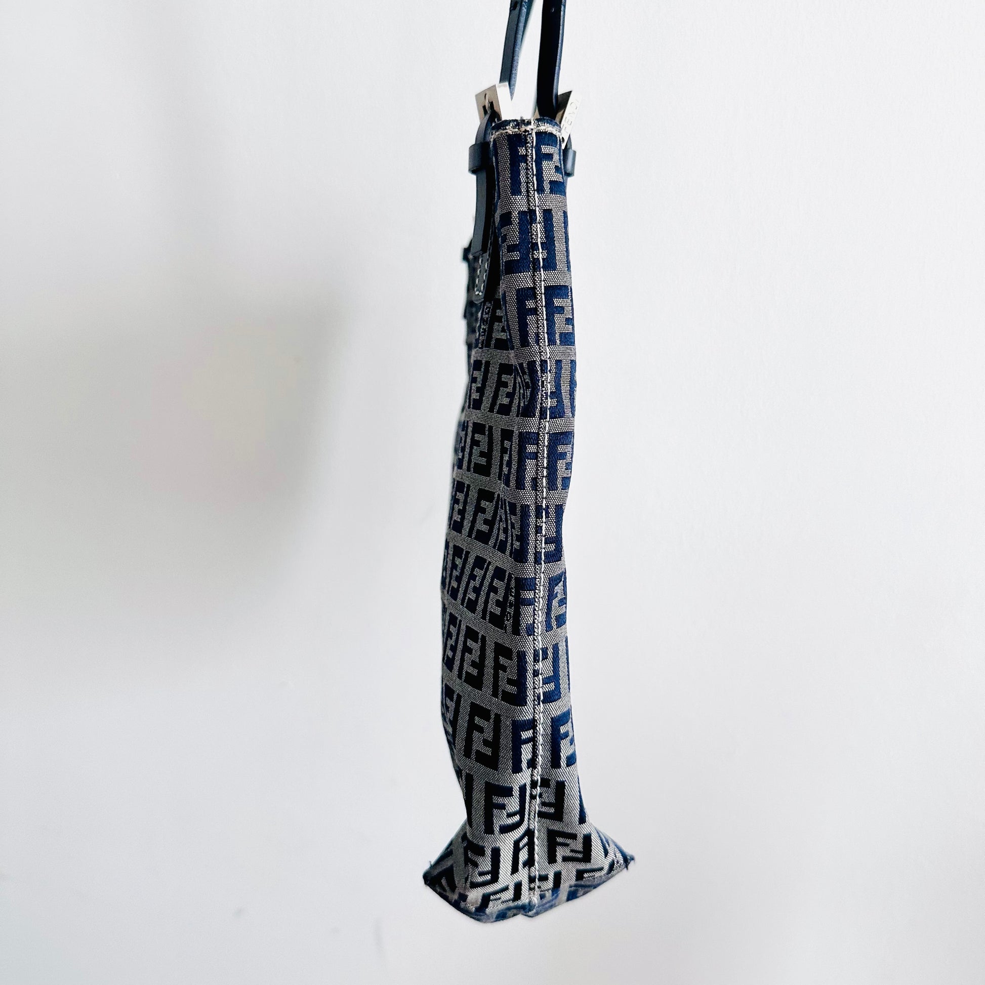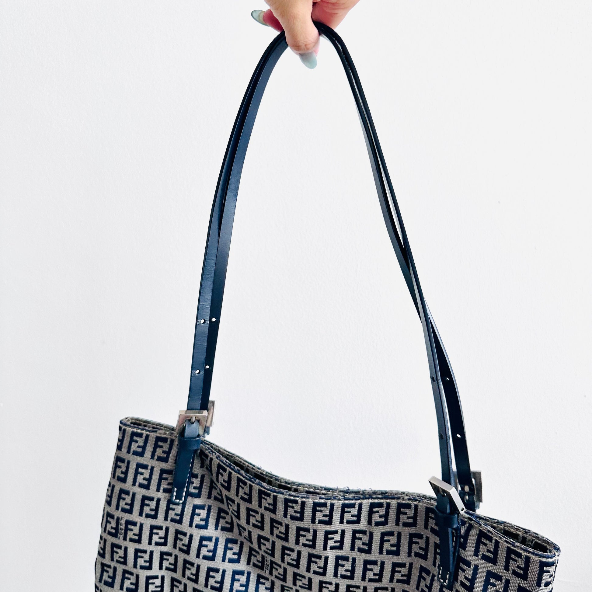 Fendi Zucca Navy Blue Zucchino FF Monogram Logo Shopper Shoulder Tote Bag