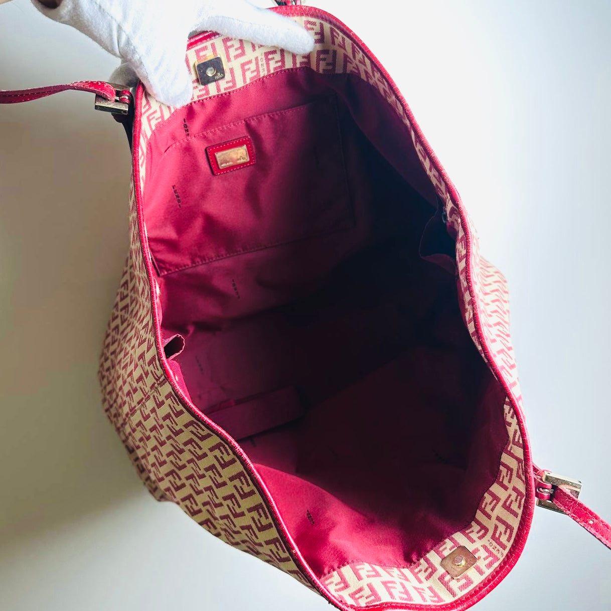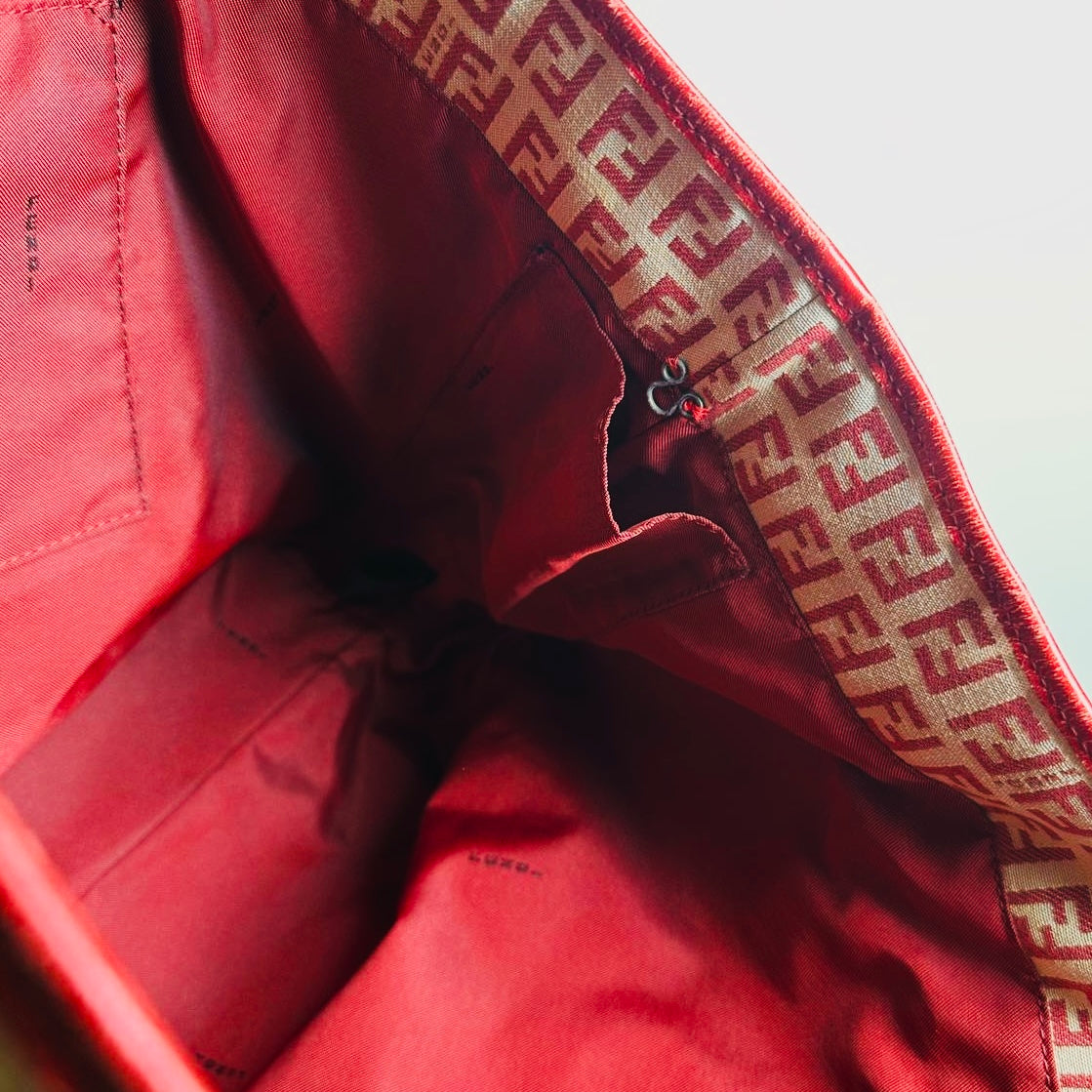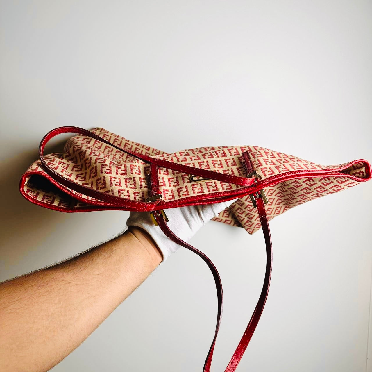 Fendi Zucca Red GHW FF Monogram Logo Shopper Shoulder Zucchino Tote Bag