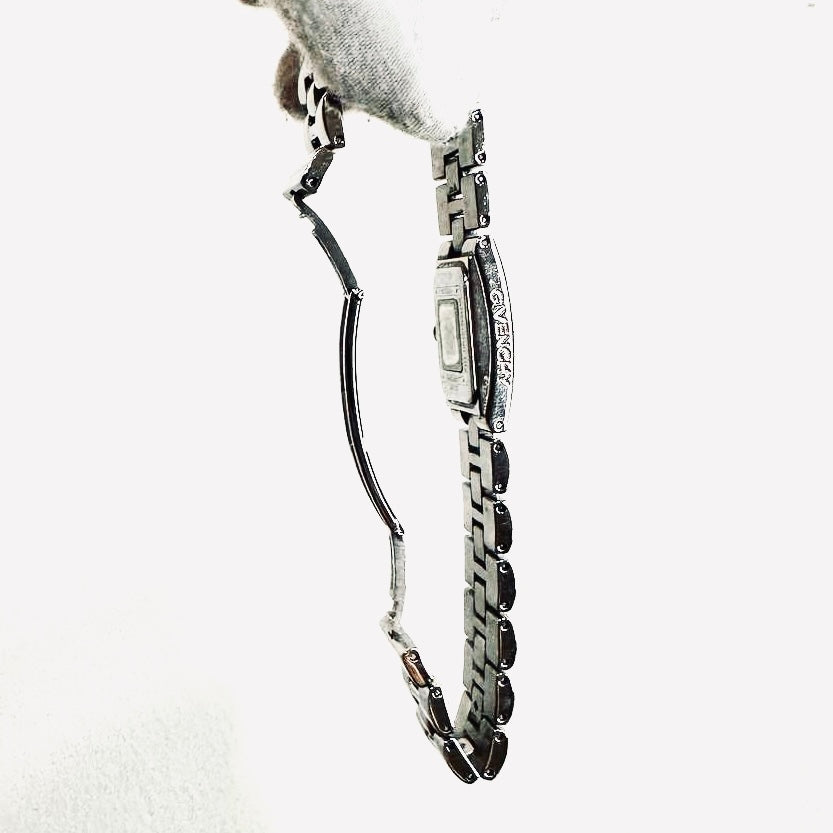 Givenchy Black Rectangular Dial Monogram Logo Stainless Steel Bracelet 17MM Quartz Watch