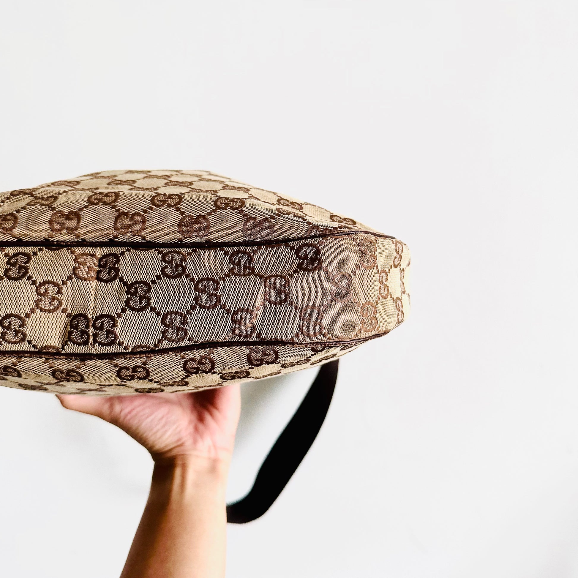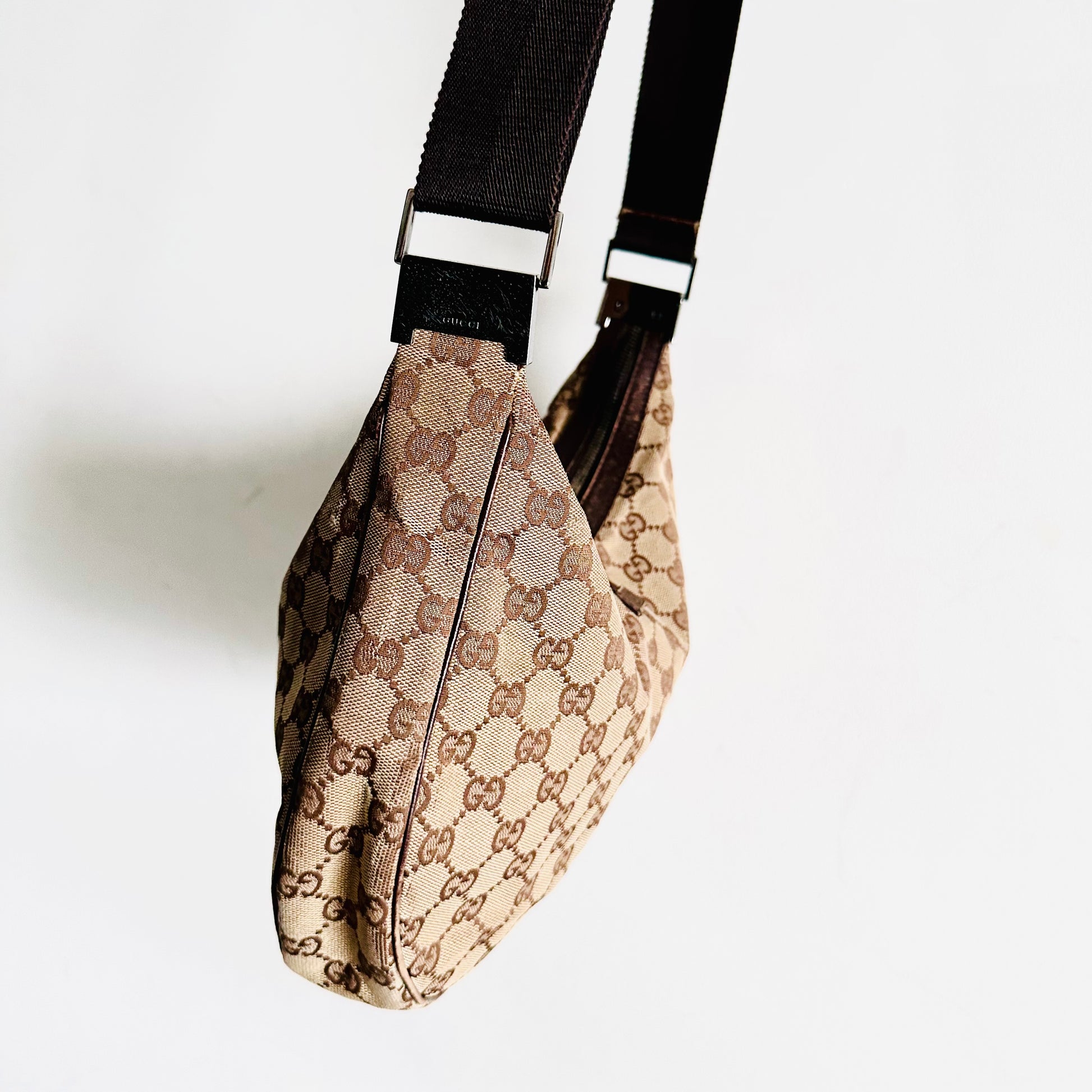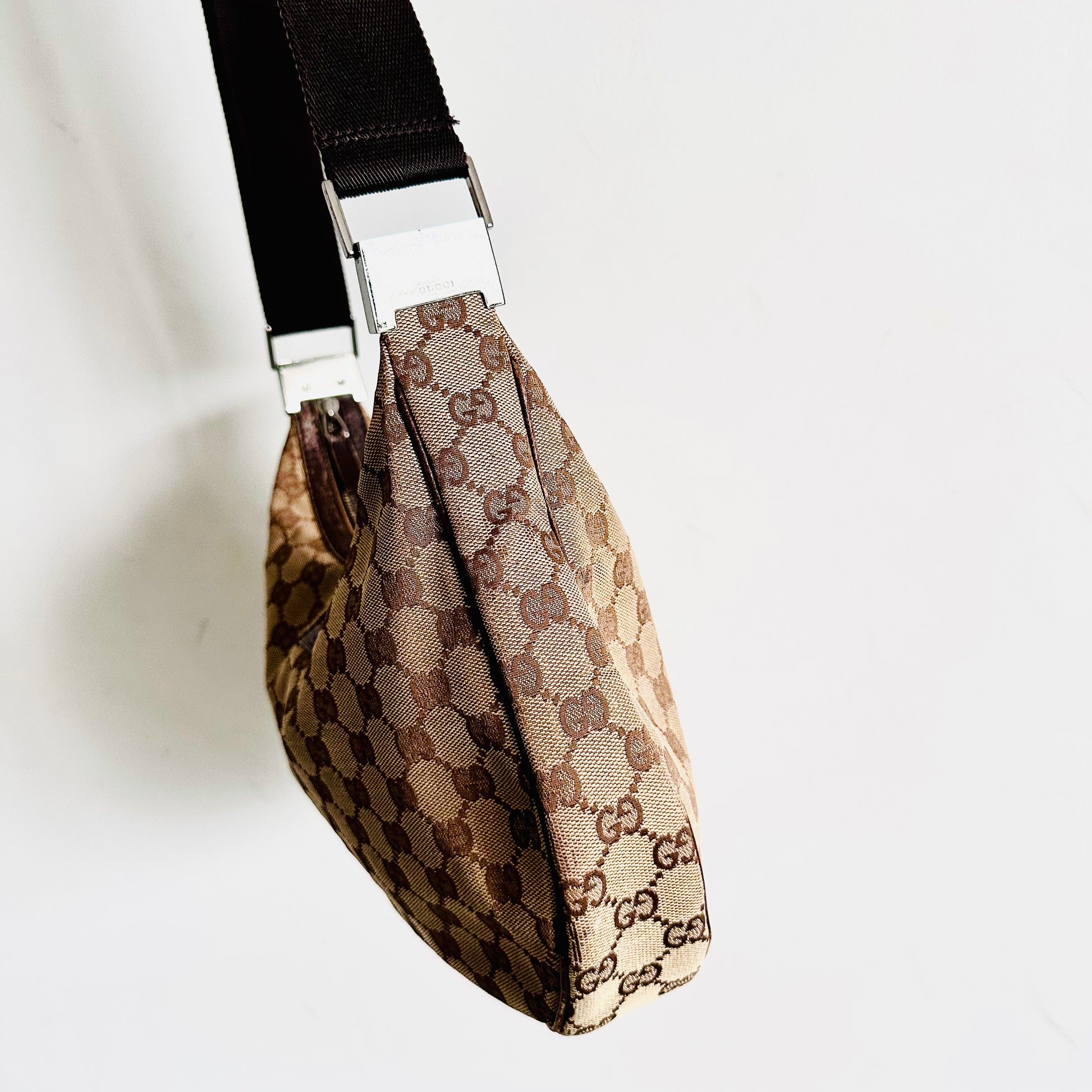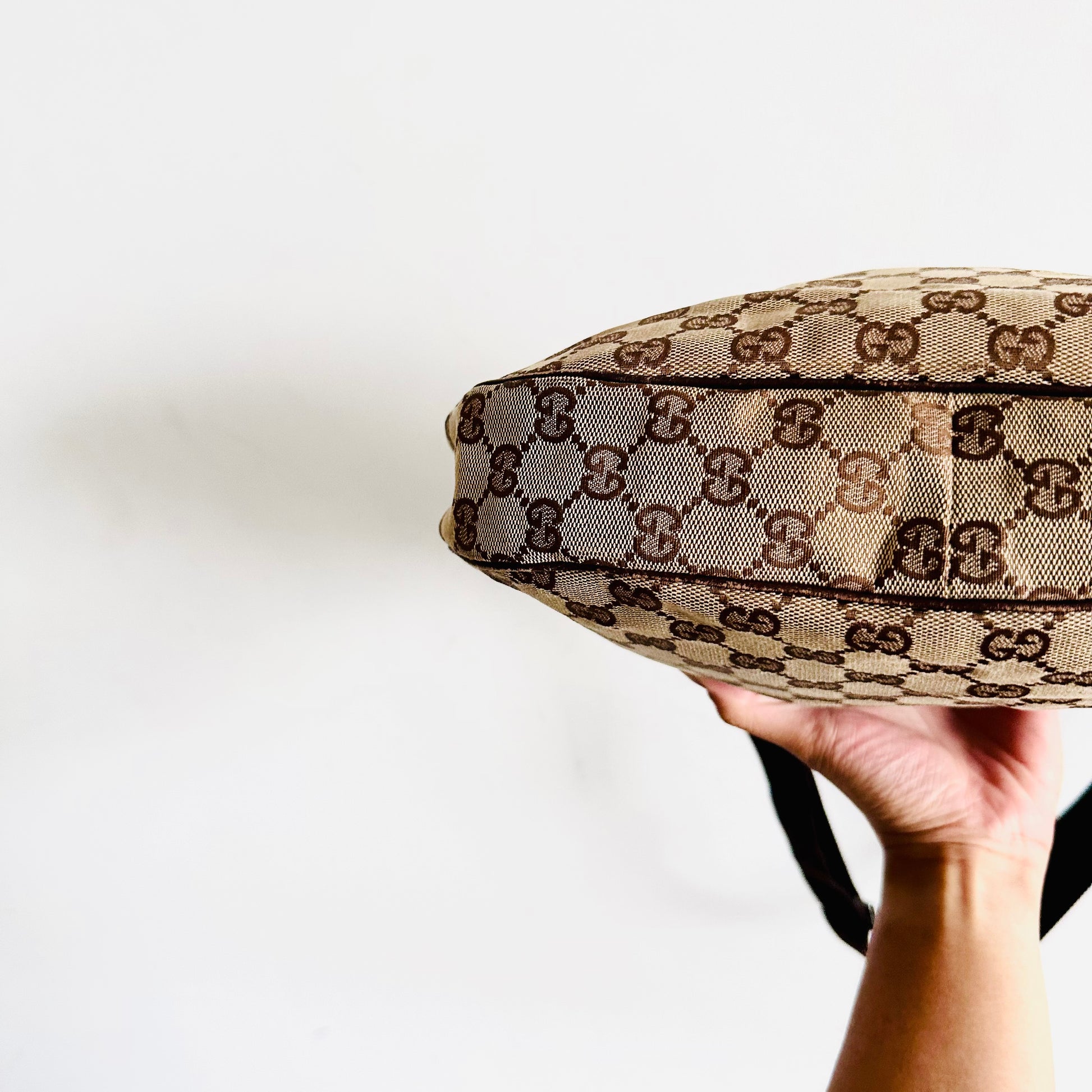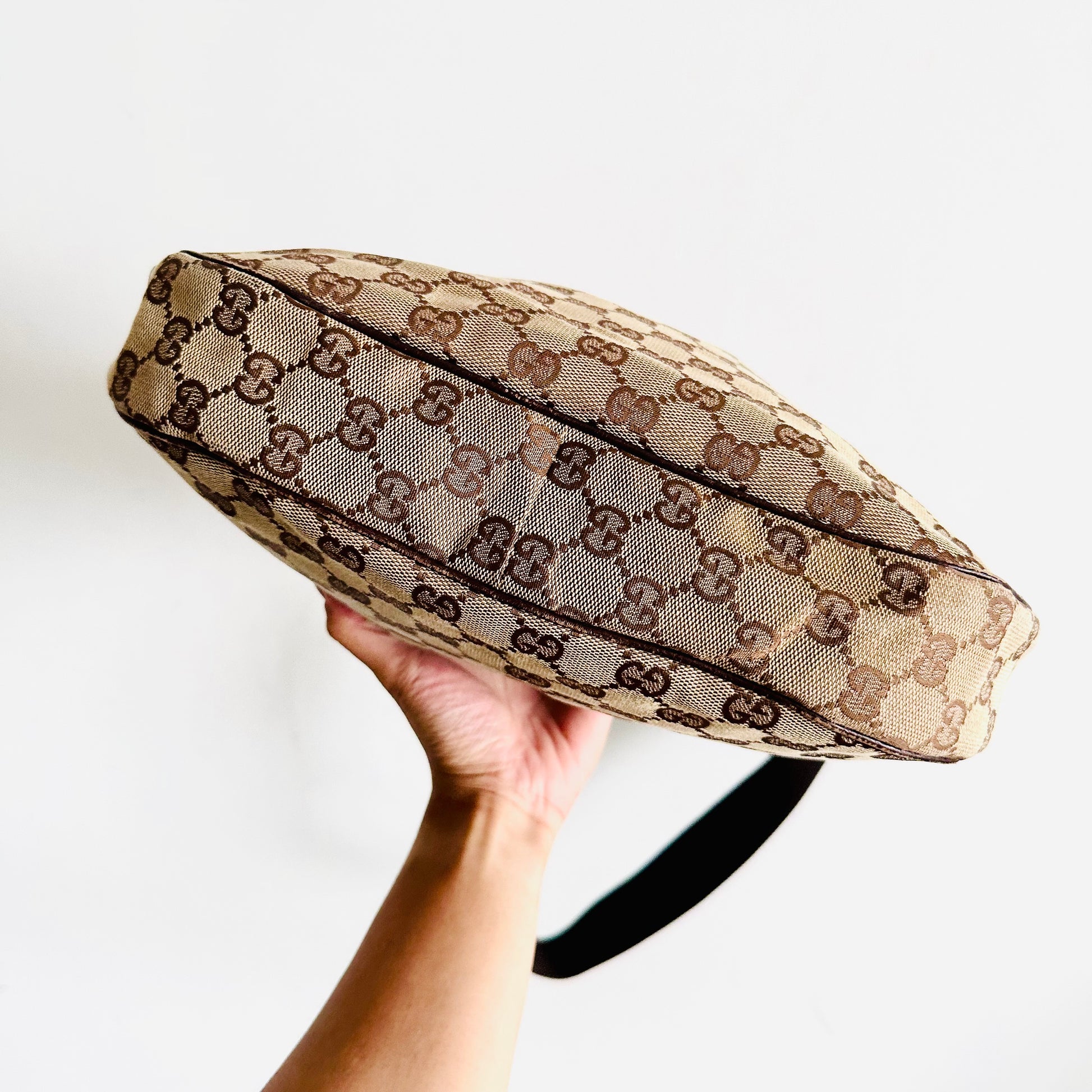 Gucci Beige GG Monogram Logo Hobo Baguette Half Moon Crescent Shoulder Sling Bag