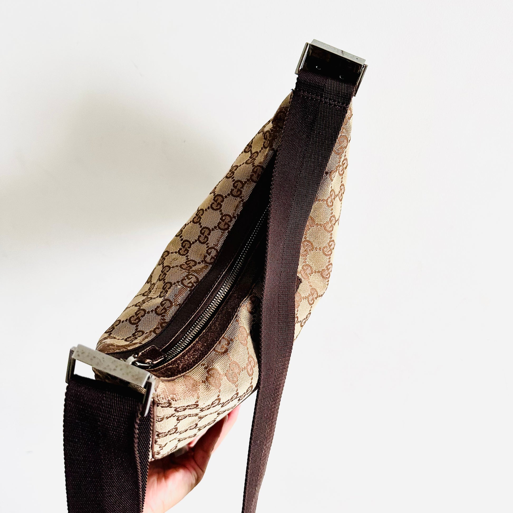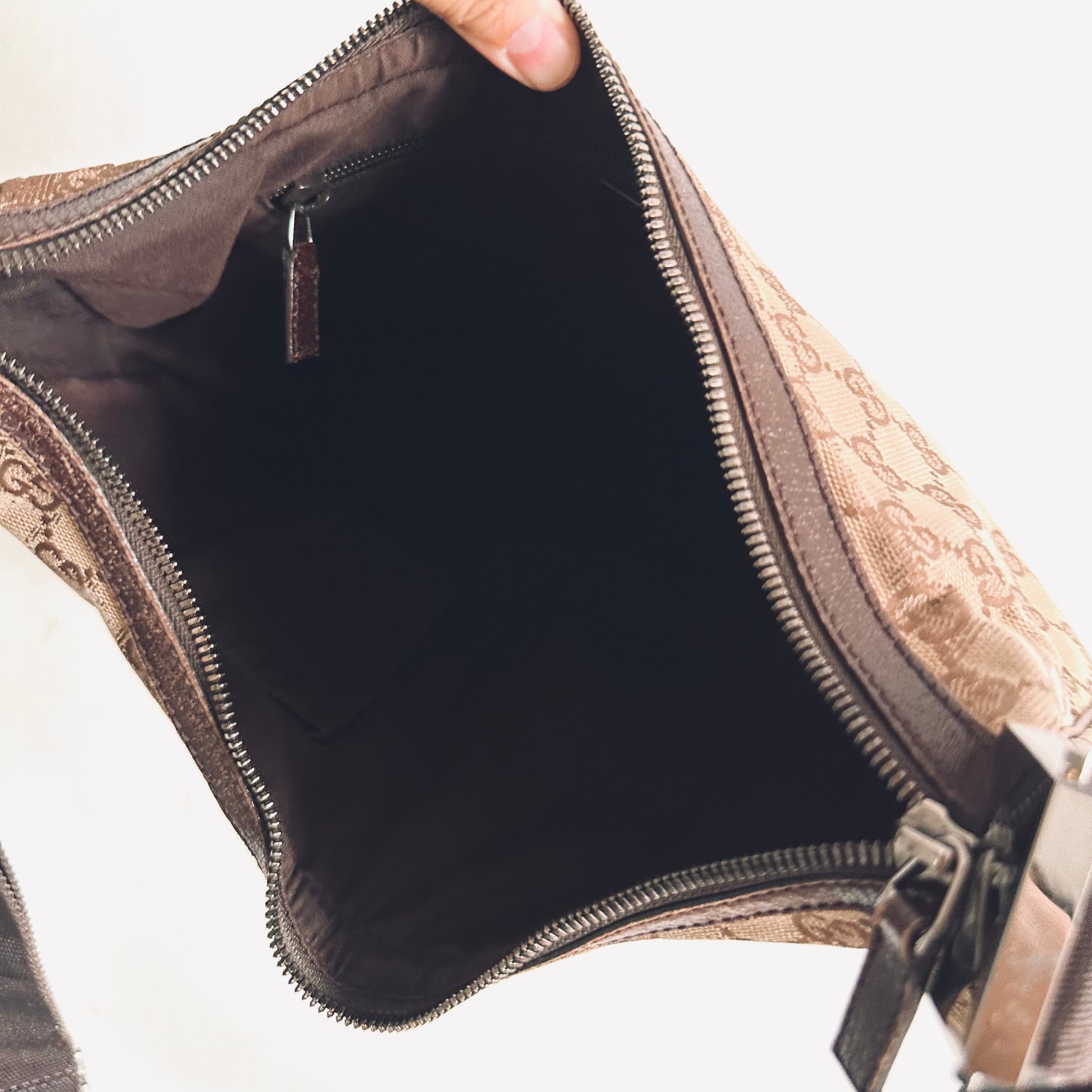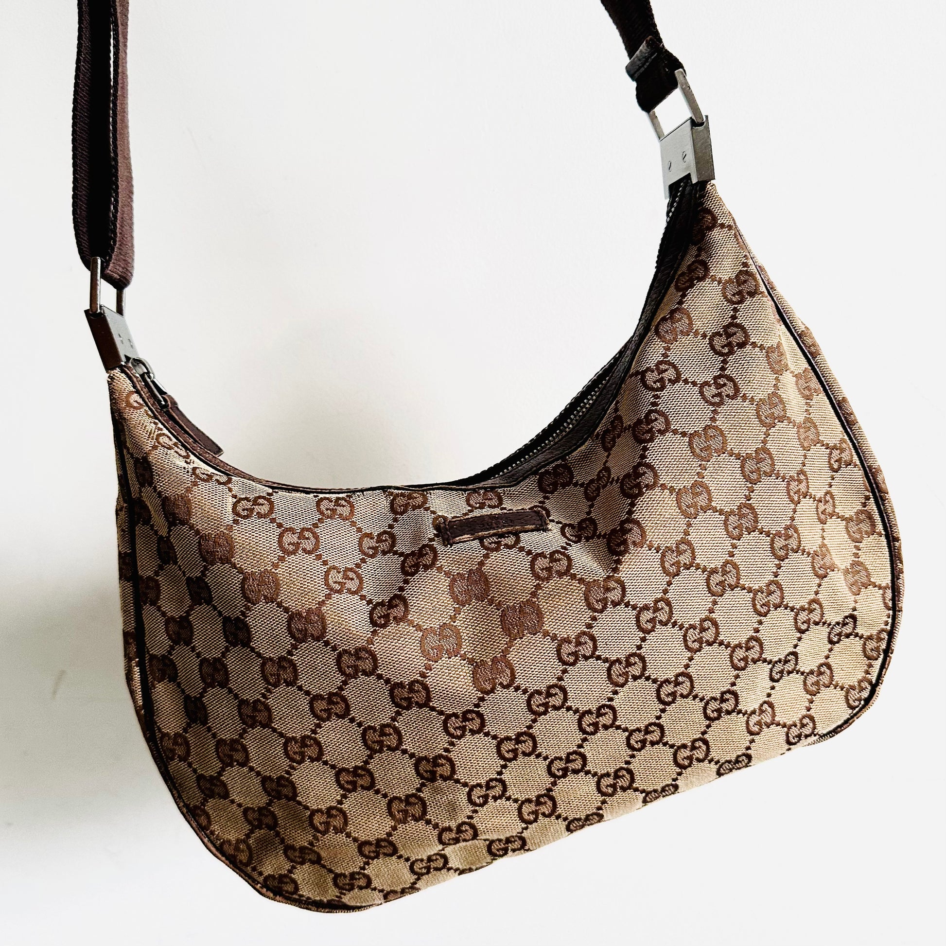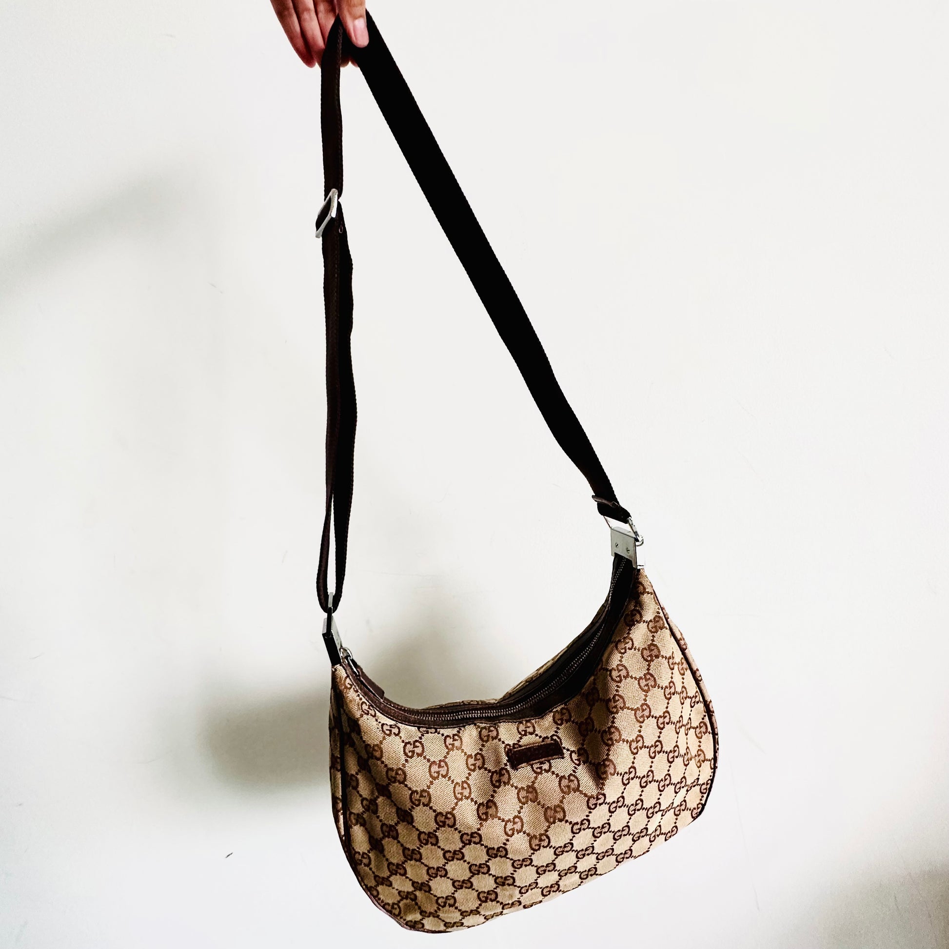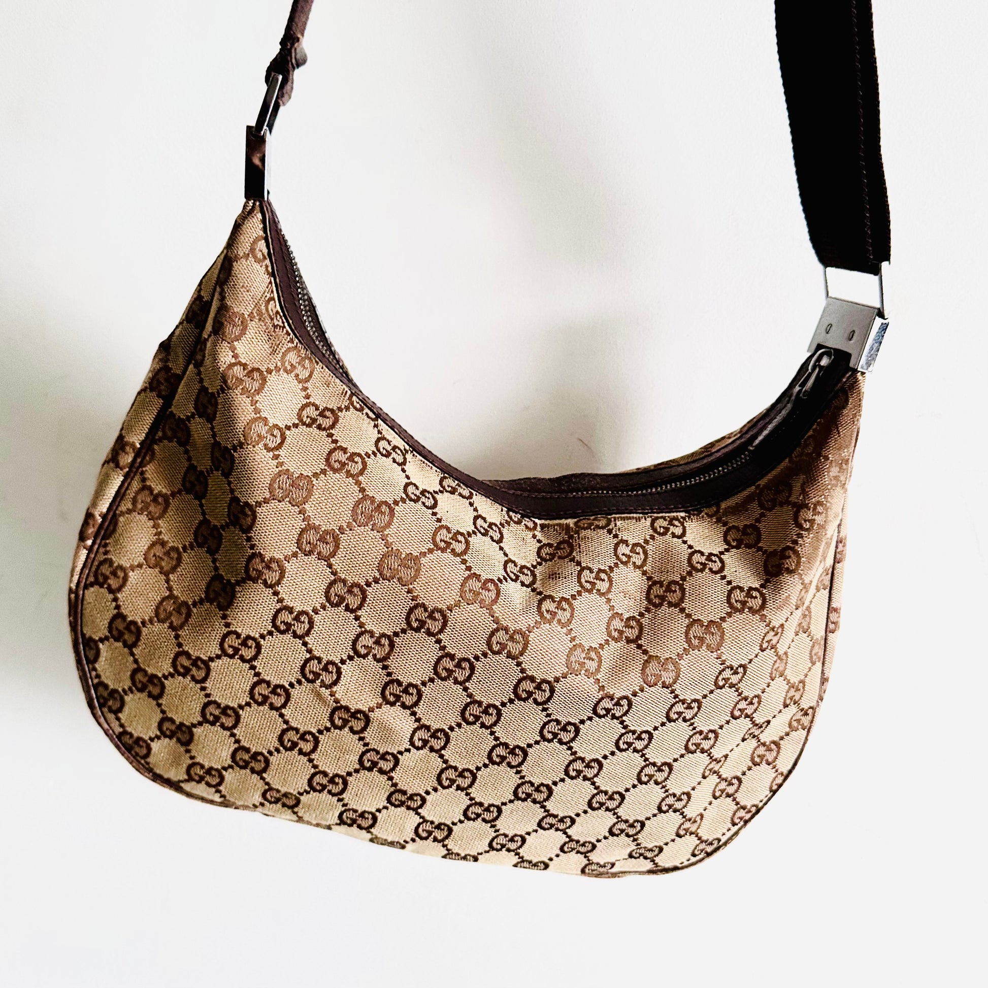 Gucci Beige GG Monogram Logo Hobo Baguette Half Moon Crescent Shoulder Sling Bag