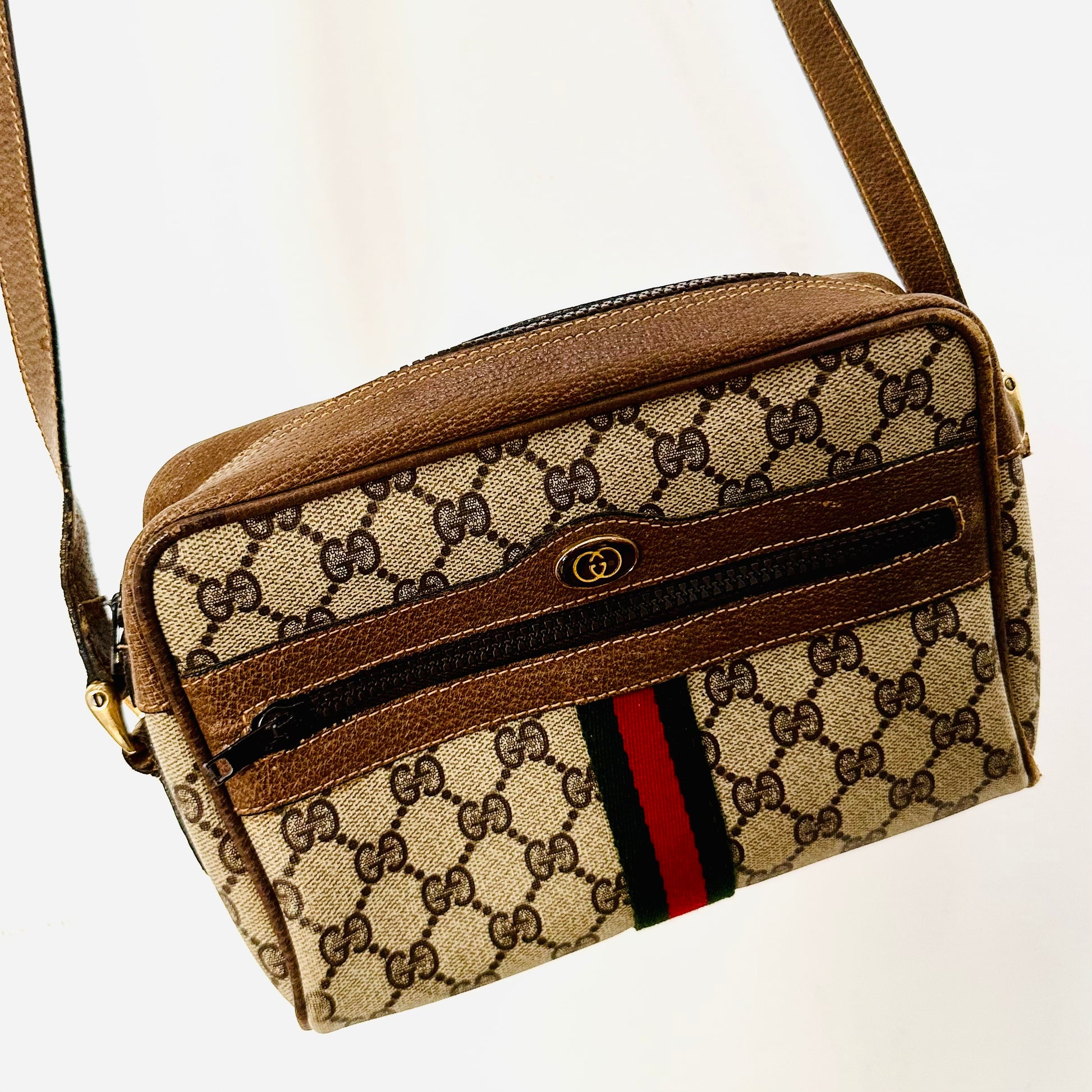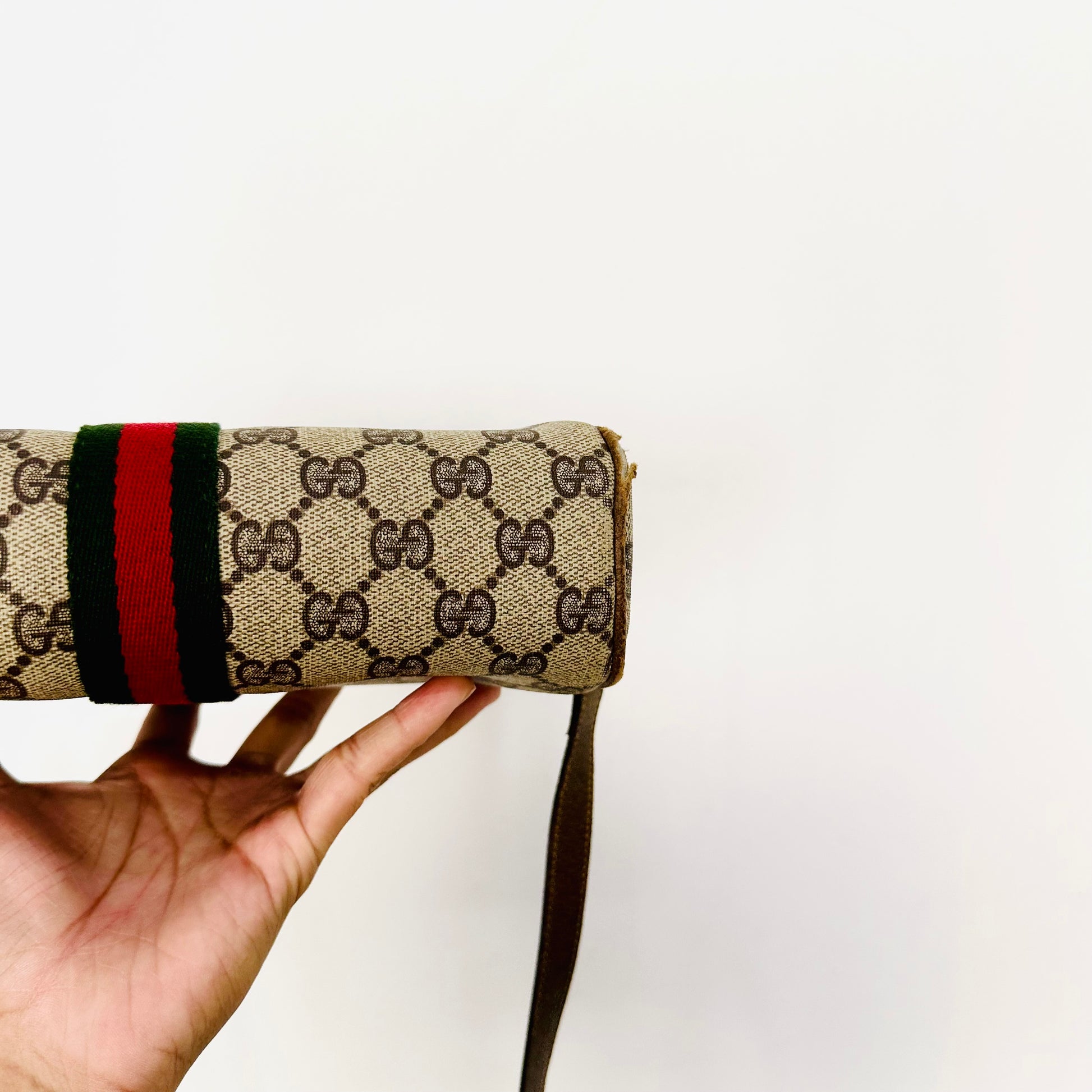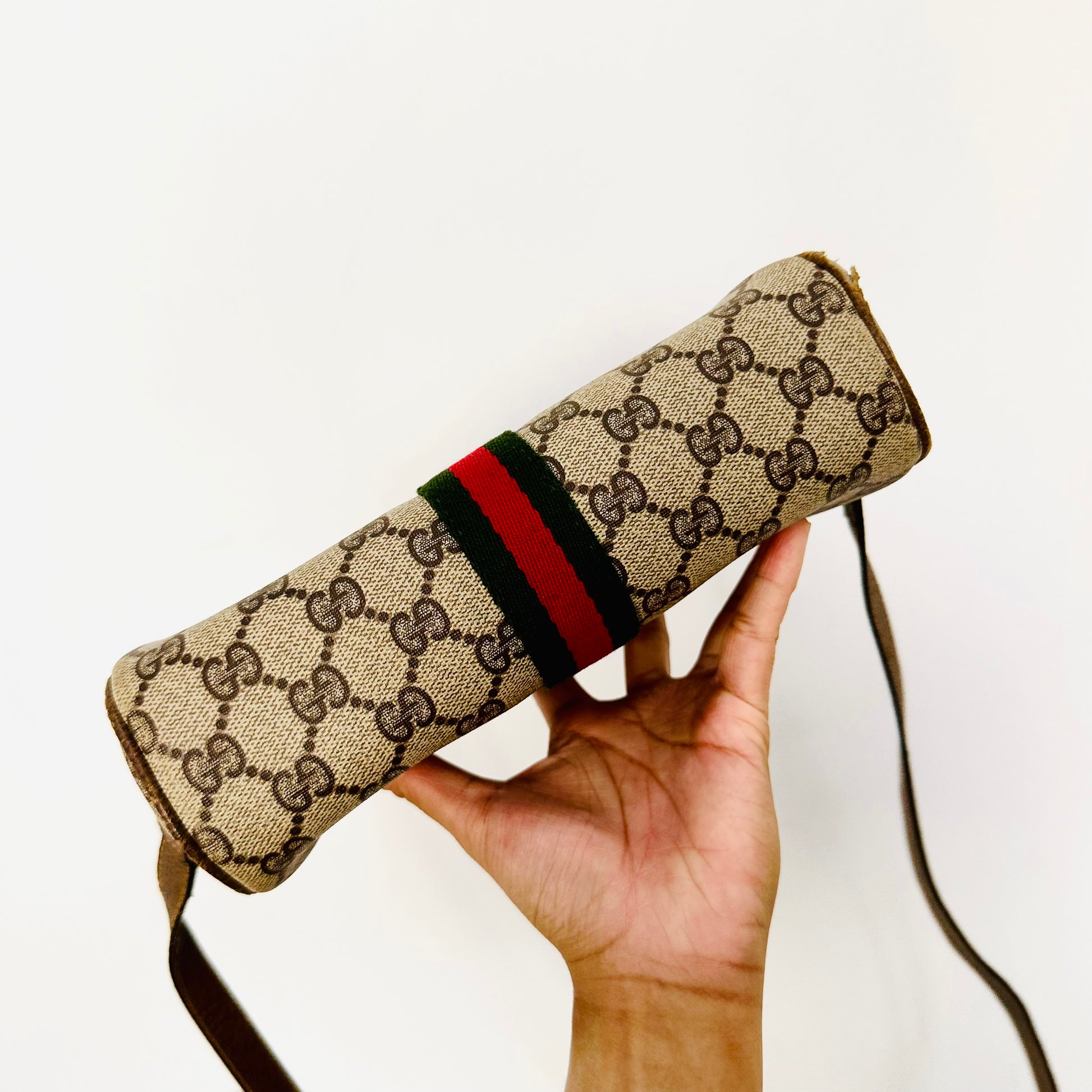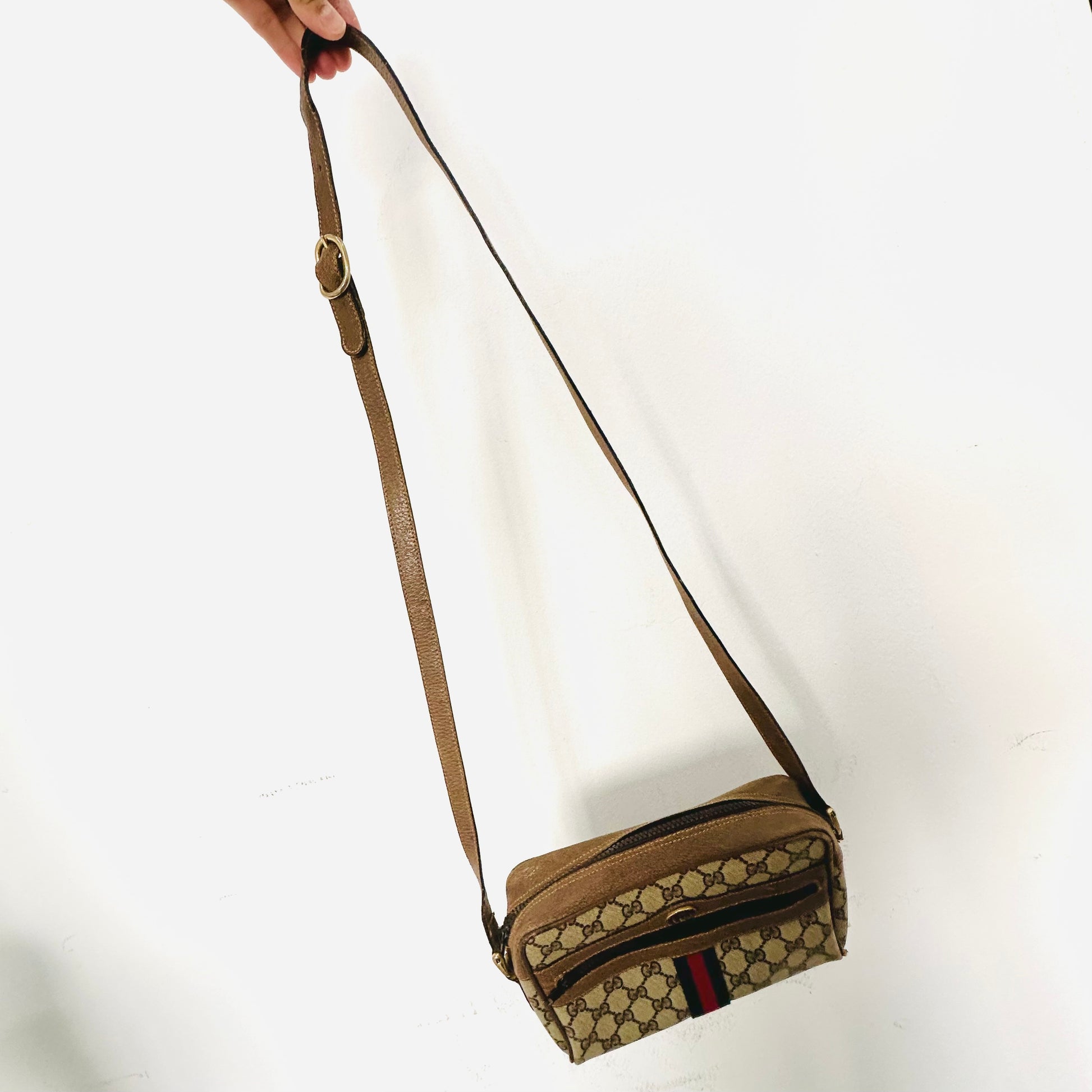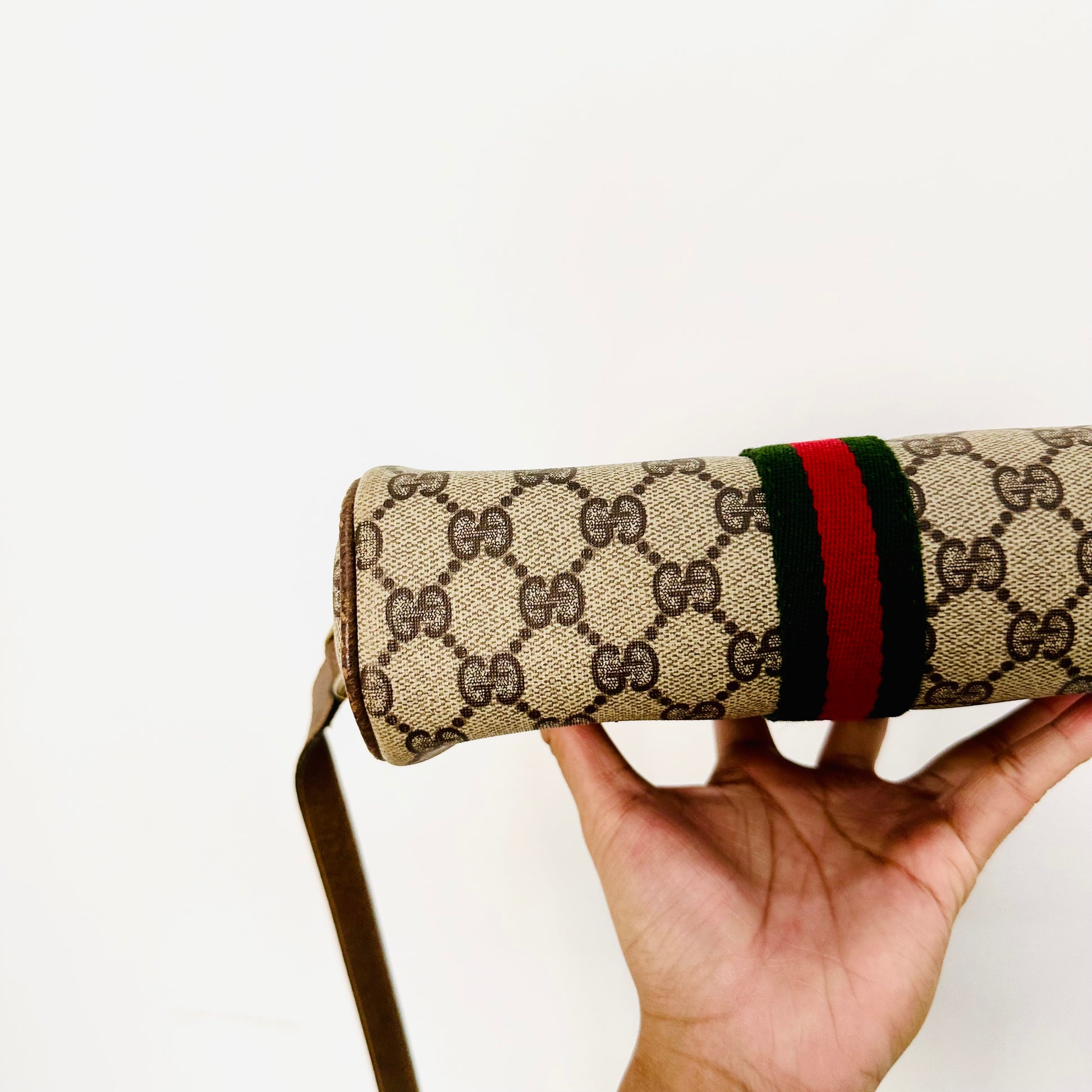 Gucci Beige GHW Ophidia GG Monogram Logo Web Striped Camera Shoulder Sling Bag