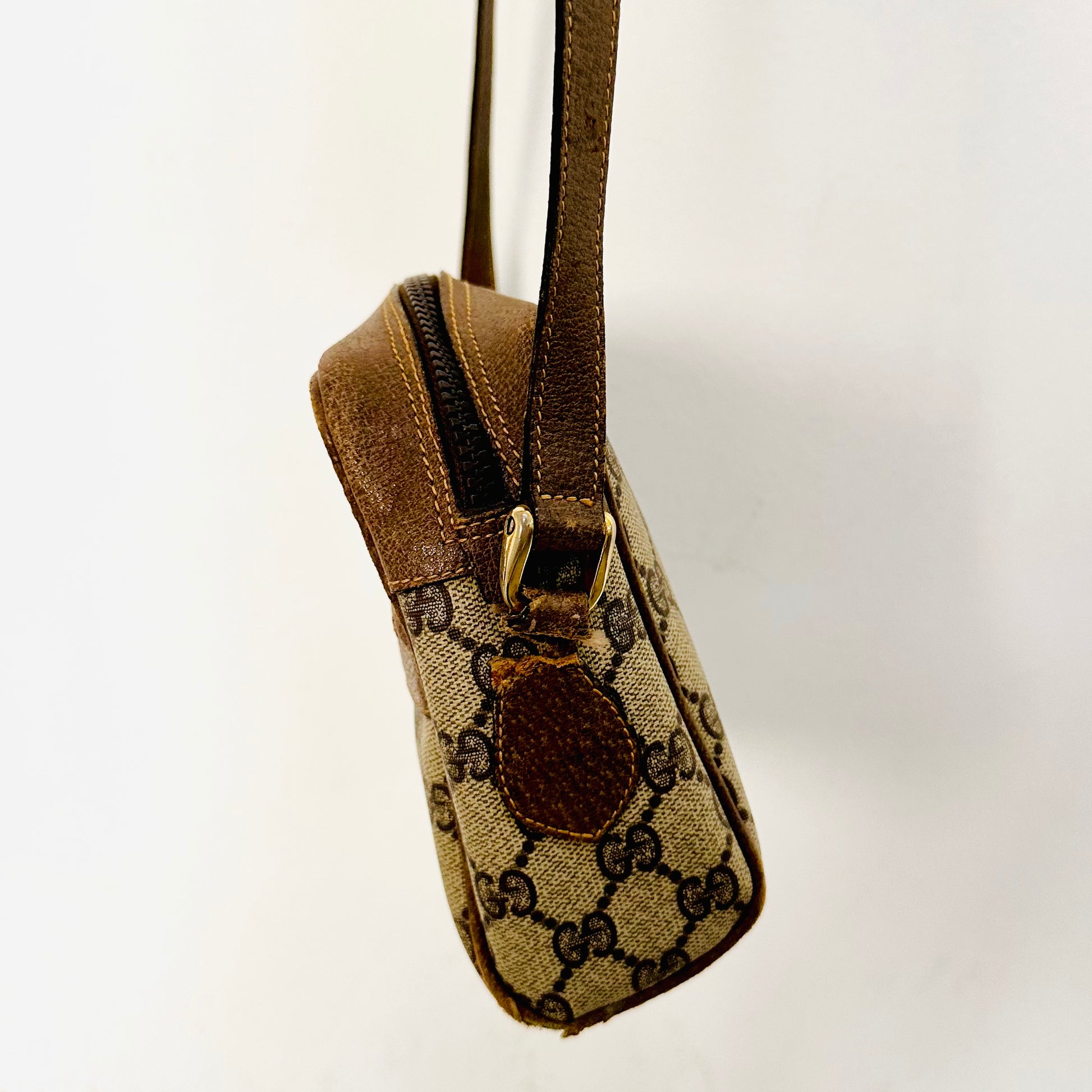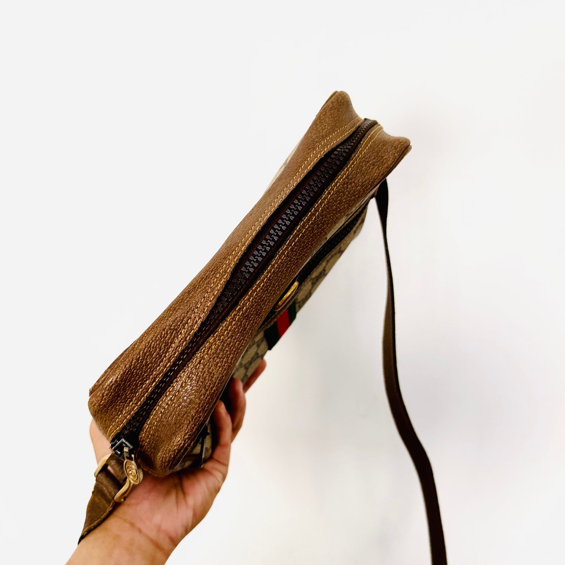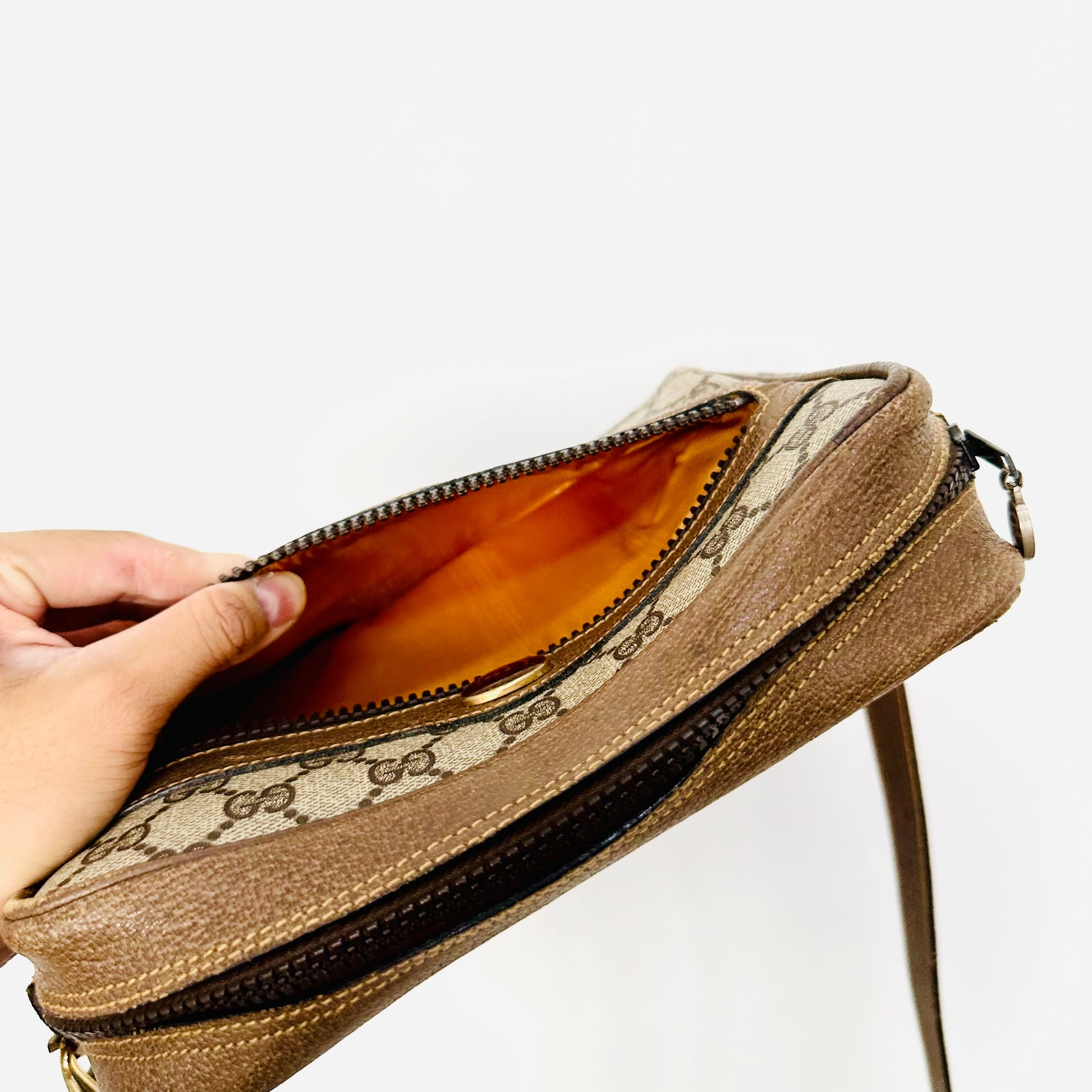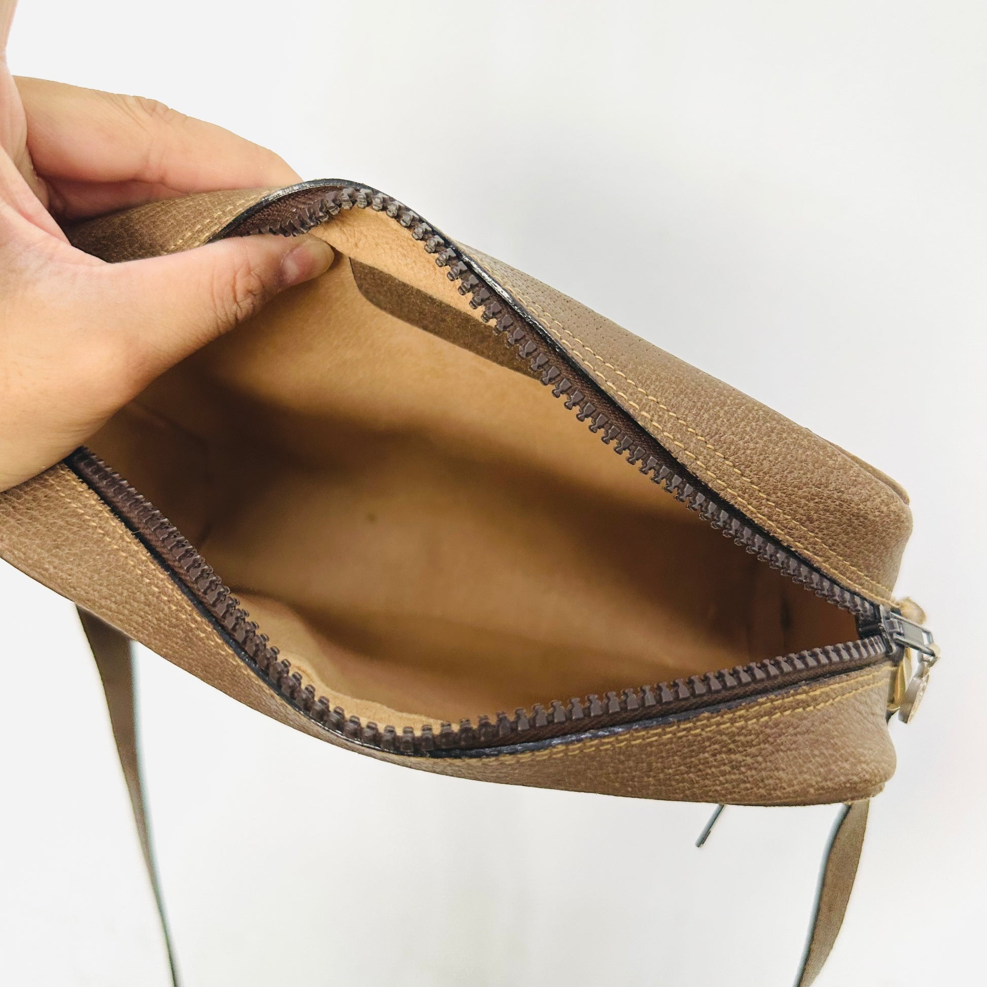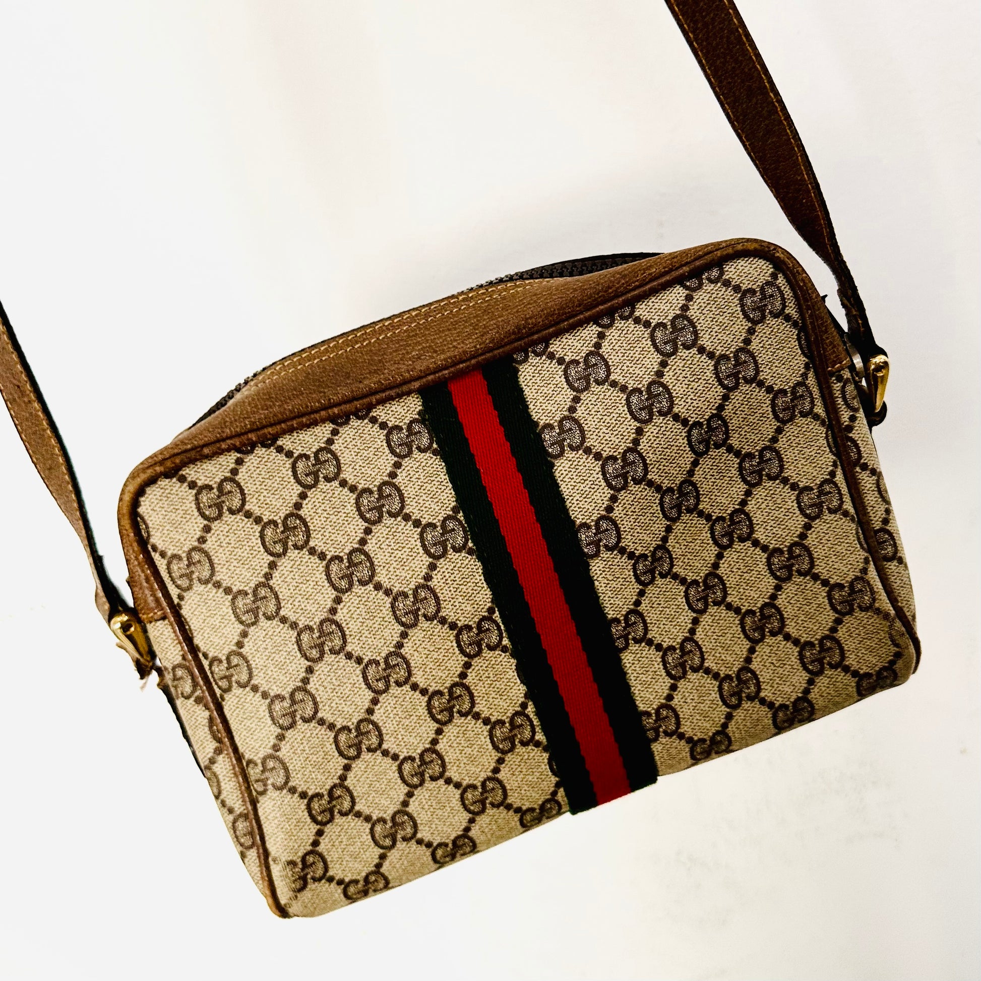 Gucci Beige GHW Ophidia GG Monogram Logo Web Striped Camera Shoulder Sling Bag