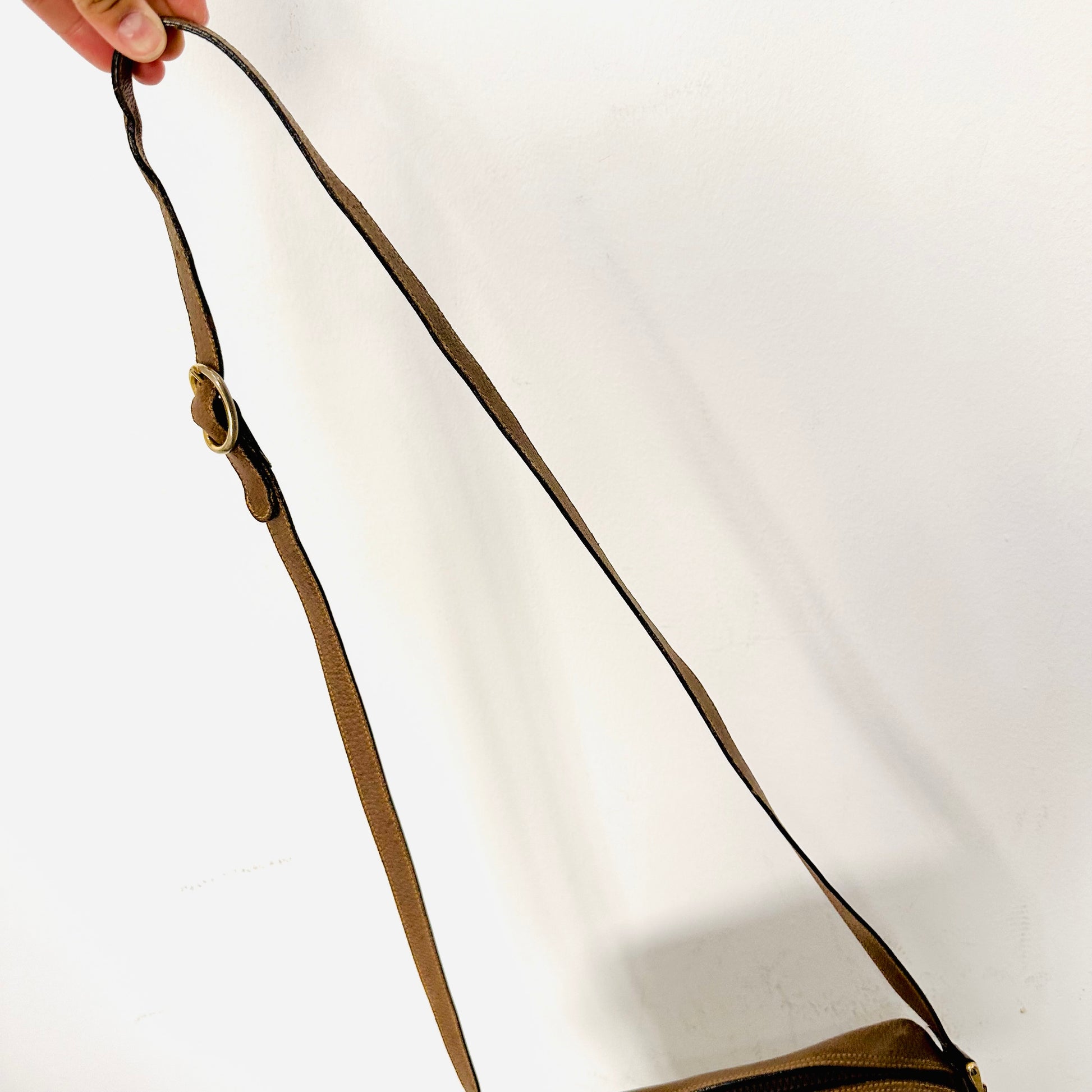 Preloved 9/10. This has a front zip pocket, zip closure and central compartment. This measures 24x16x8cm.