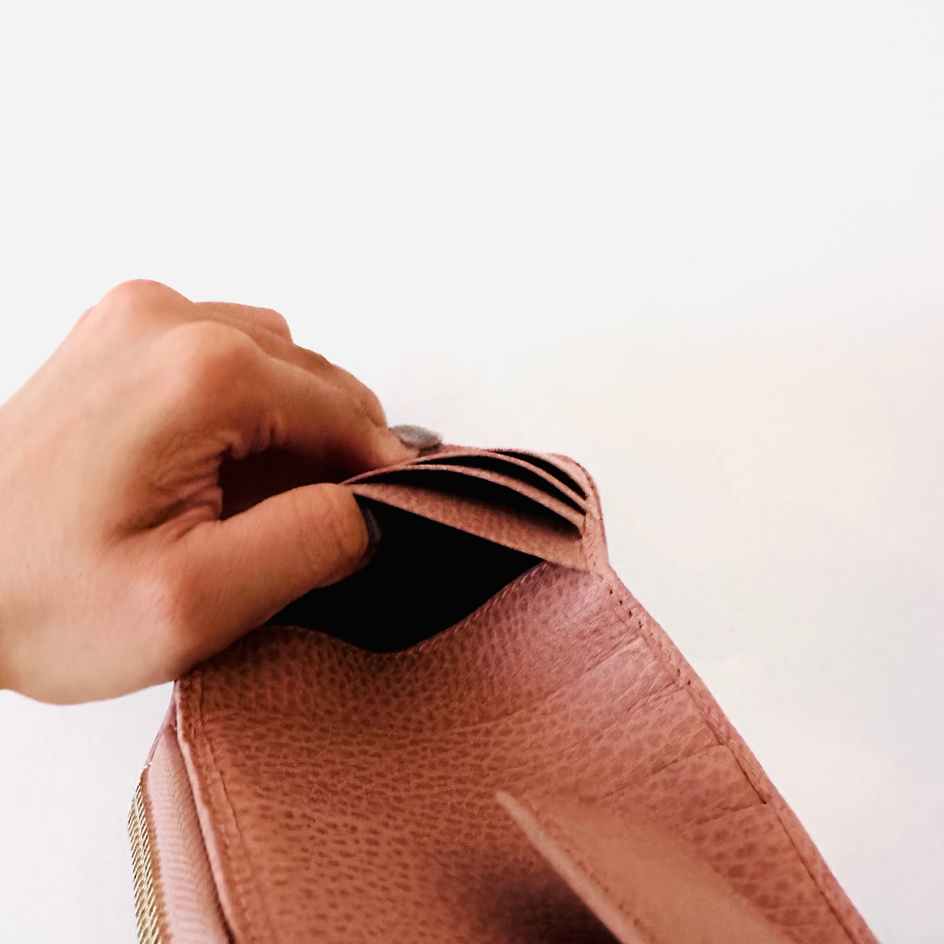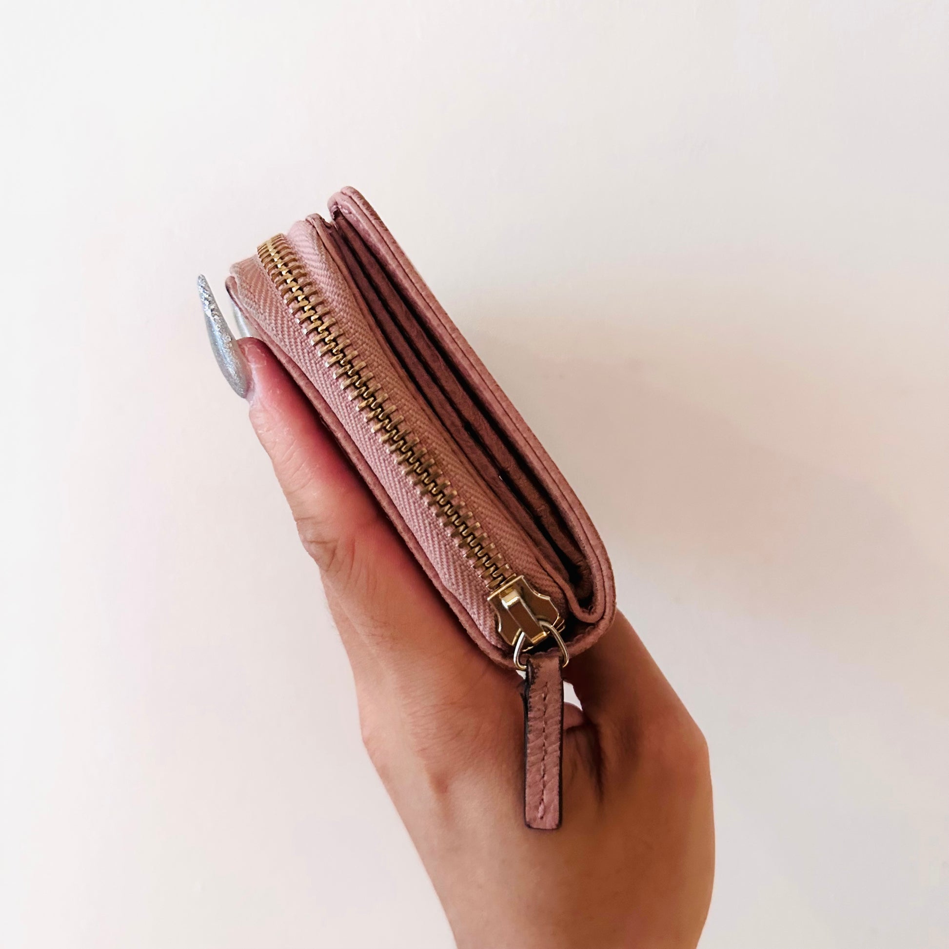 Preloved 9.5/10. This has a button flap closure, card slots, central compartment, slip pockets and zip coin pocket. This measures 11x10x2cm.