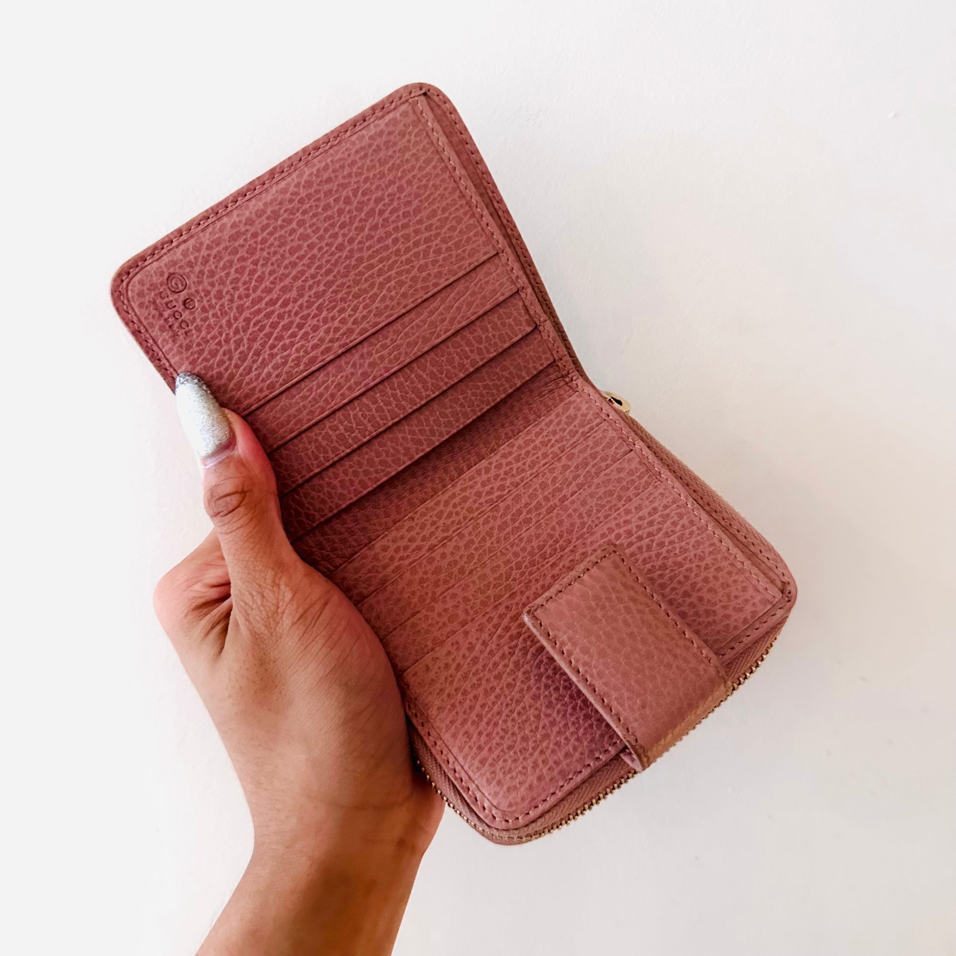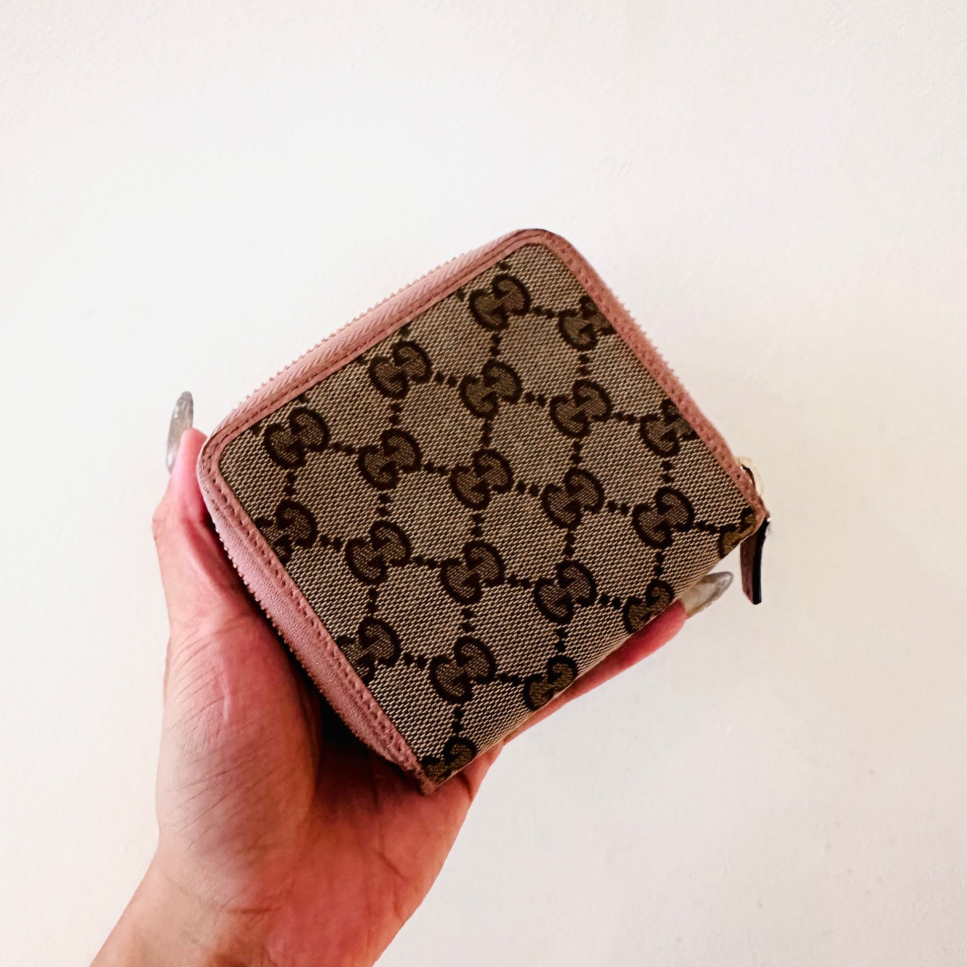 Gucci Beige/ Pink GG Monogram Logo Compact Bifold Wallet