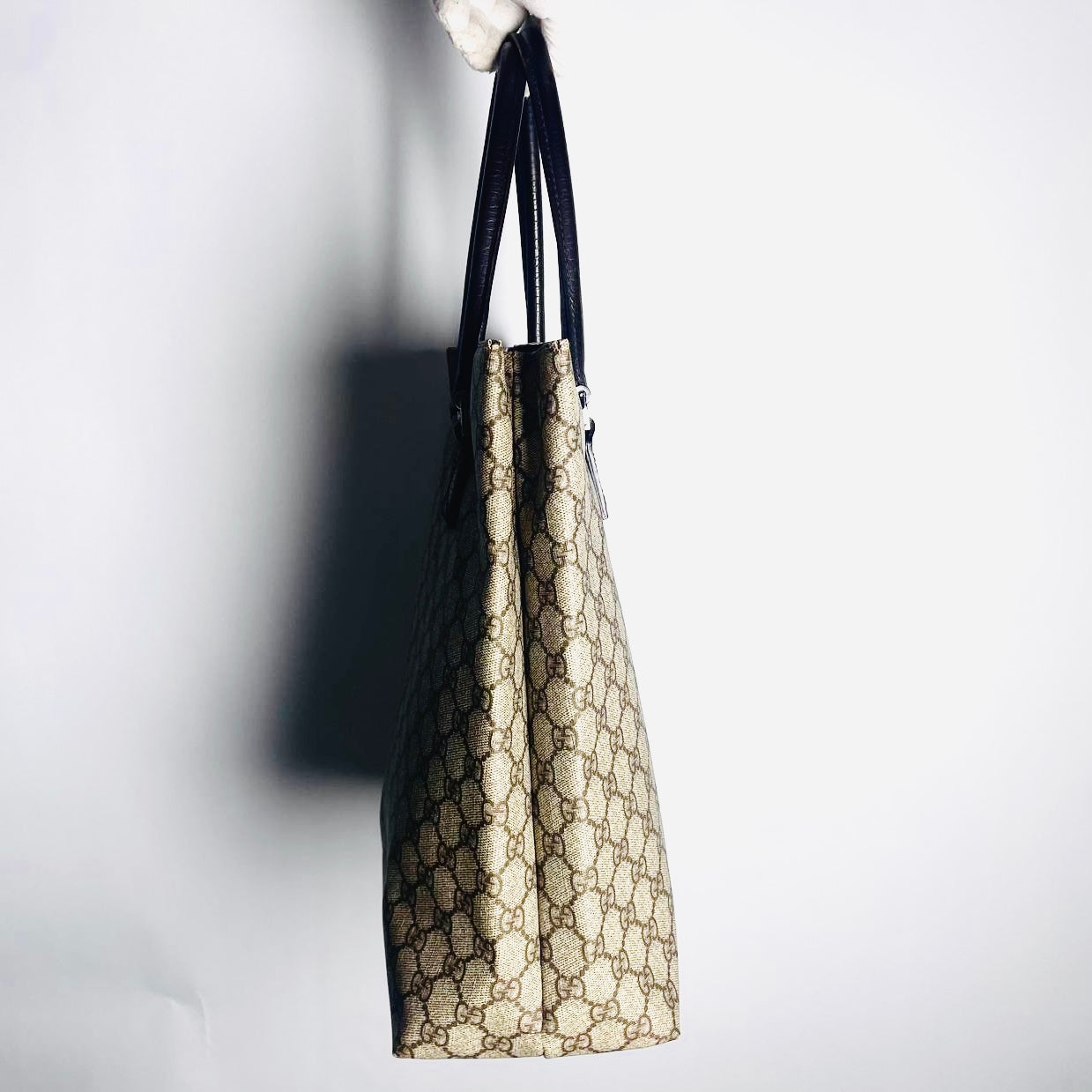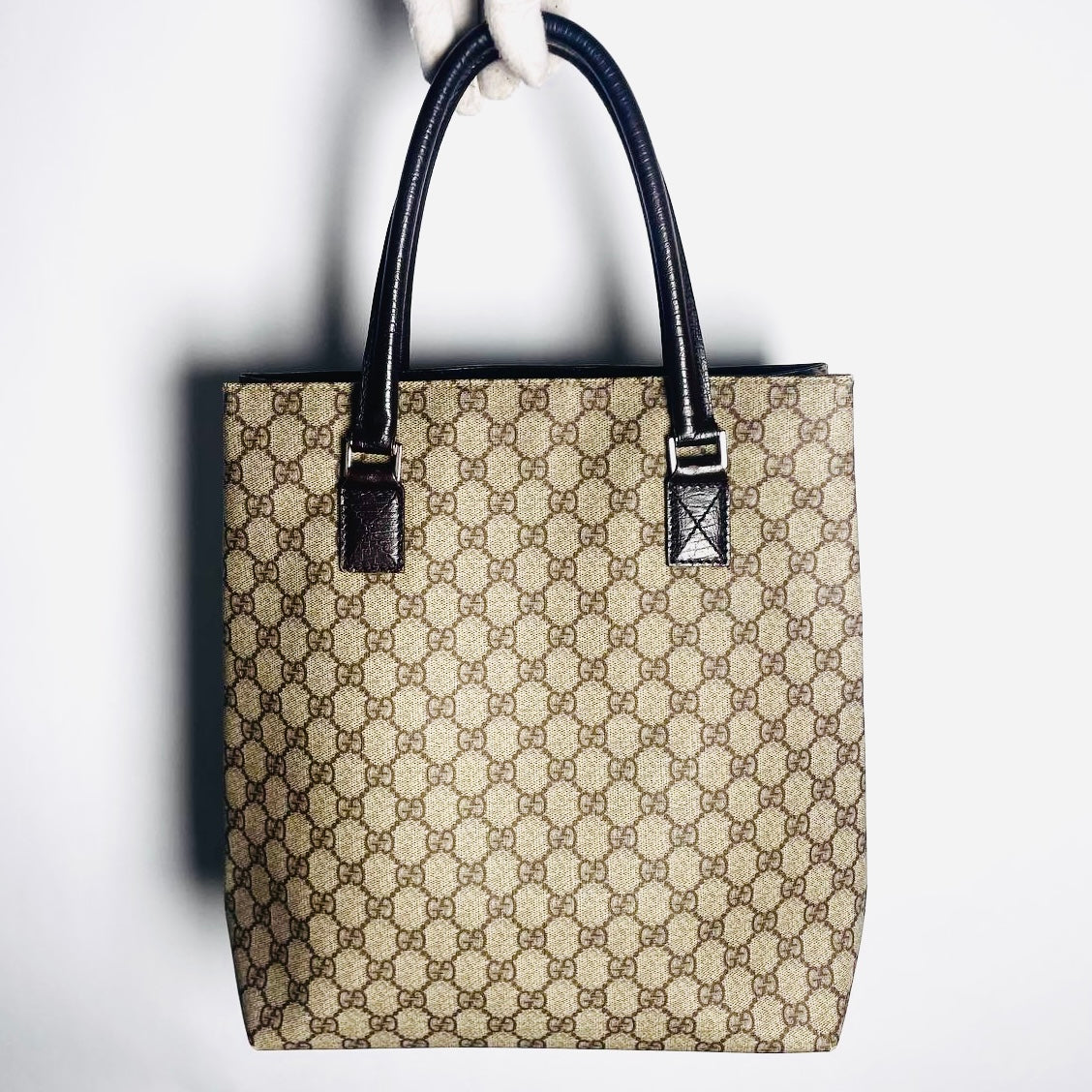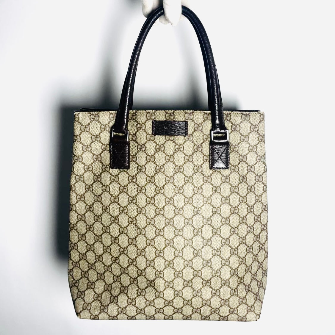 Gucci Beige Supreme GG Monogram Logo Tall Shopper Shoulder Tote Bag