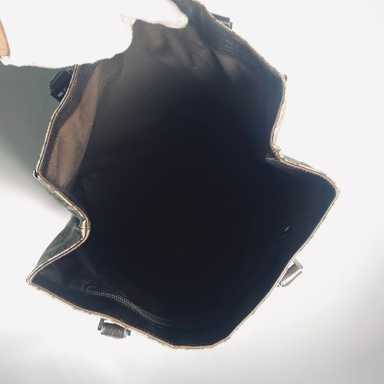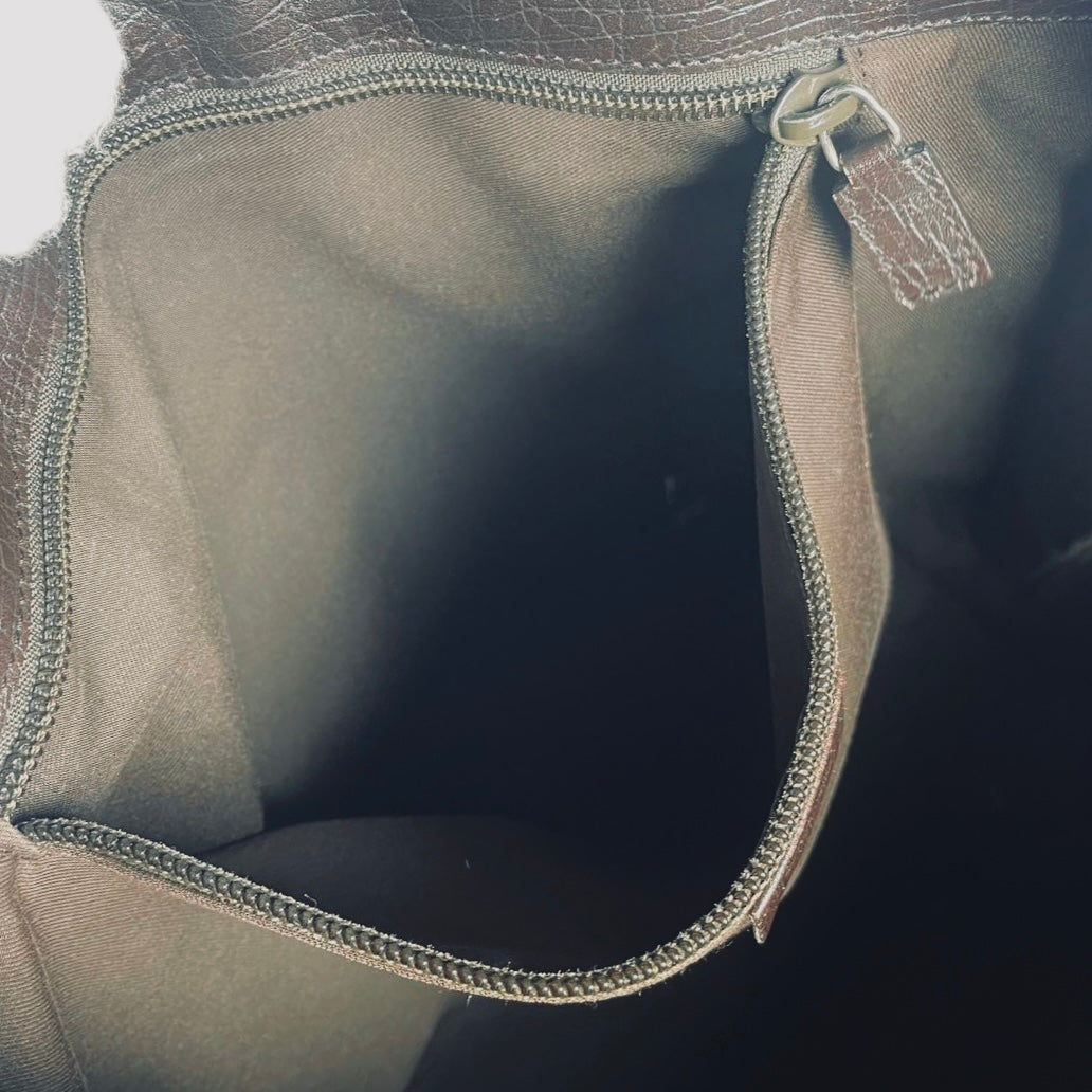 Preloved 9.4/10. This has a central compartment and zip pocket. This measures 35x30x14cm.