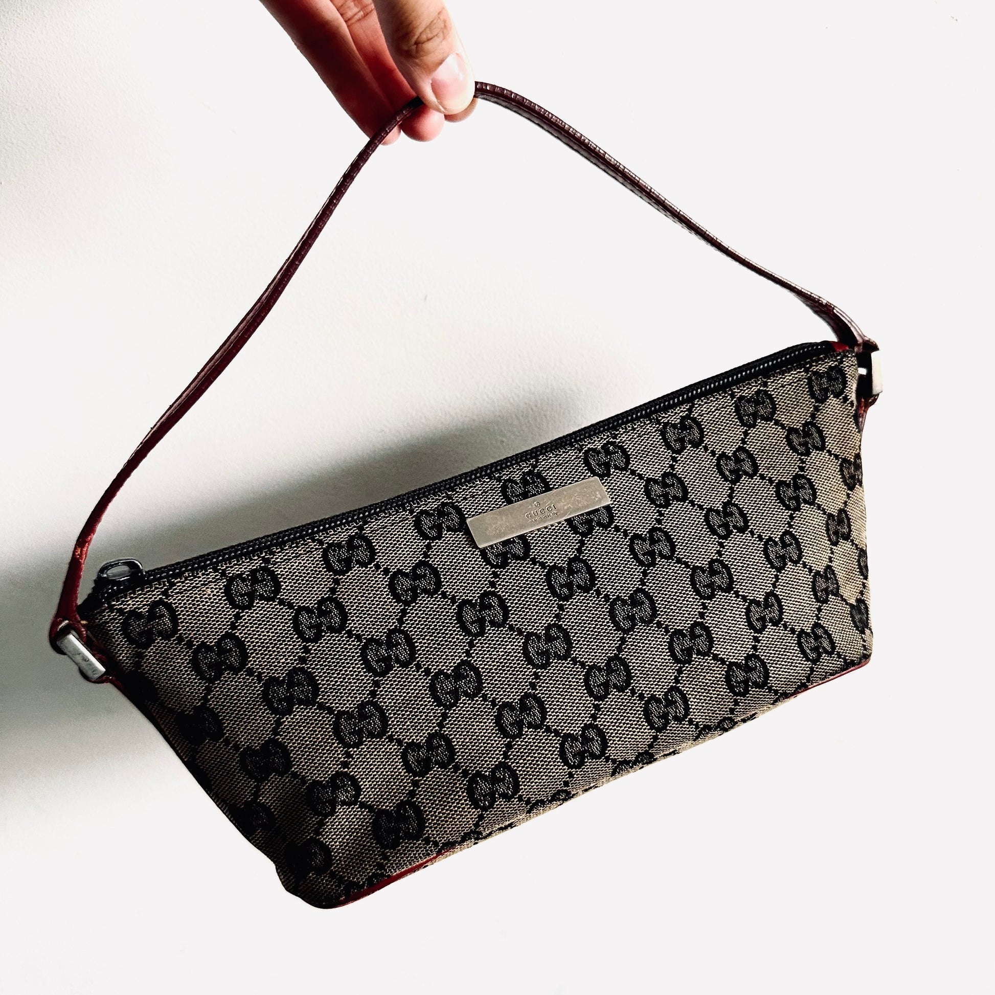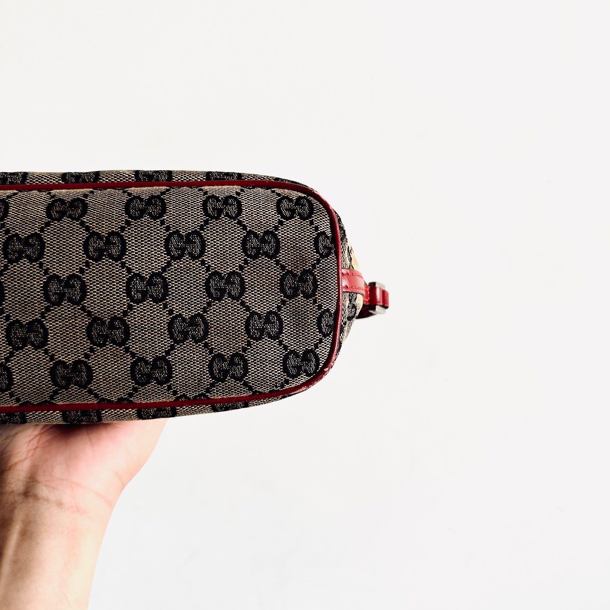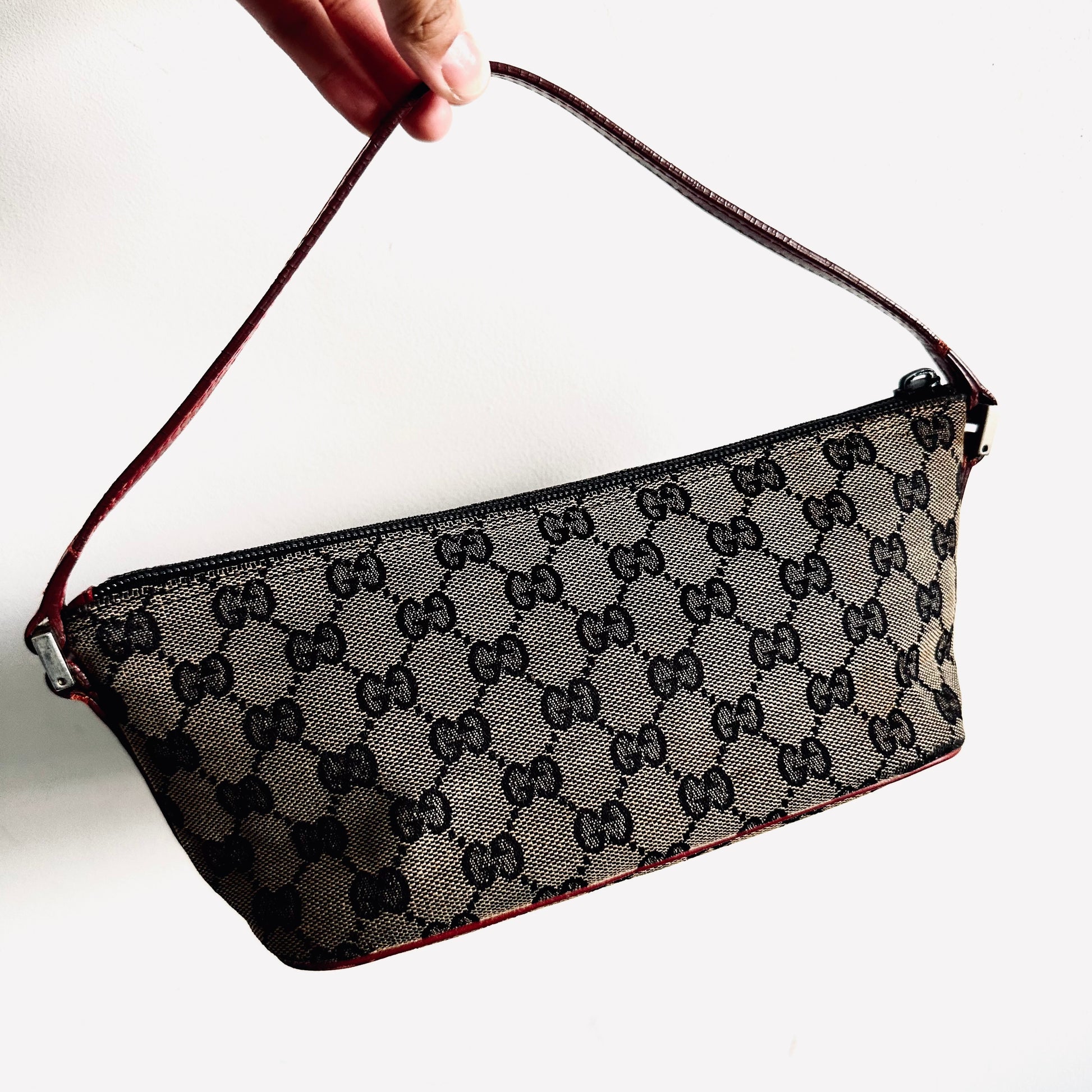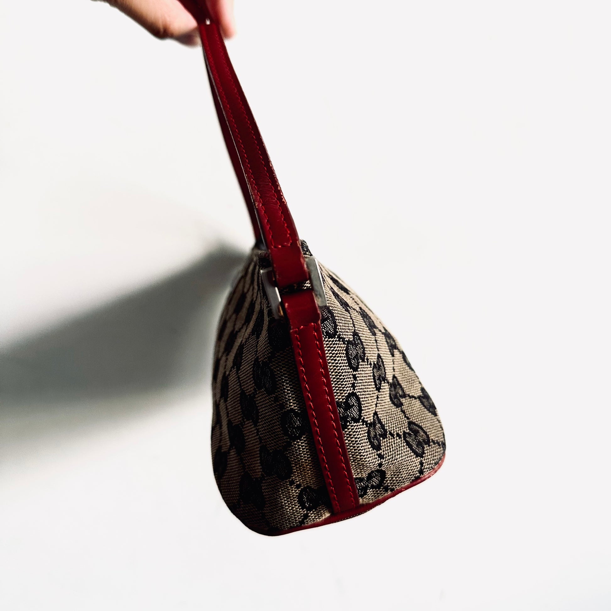 Gucci Black / Ash / Red GG Monogram Logo Mini Hobo Pochette Shoulder Bag