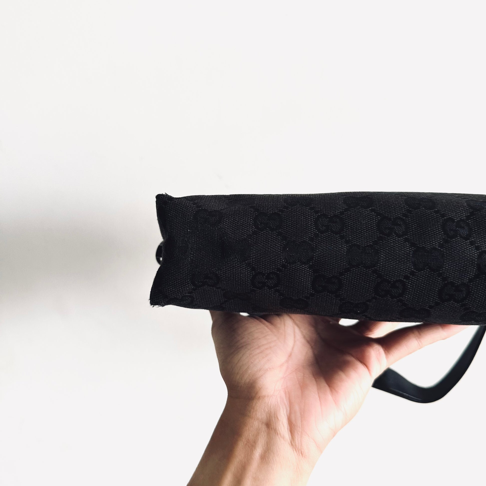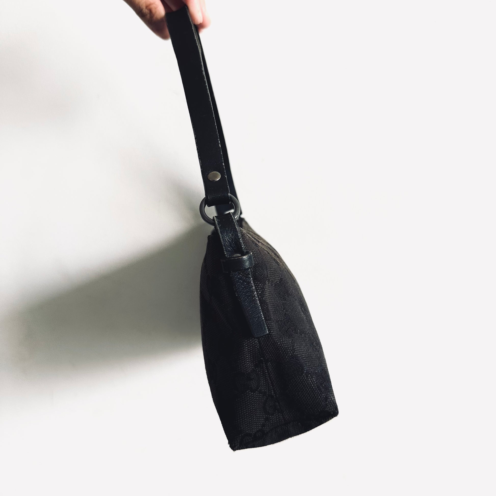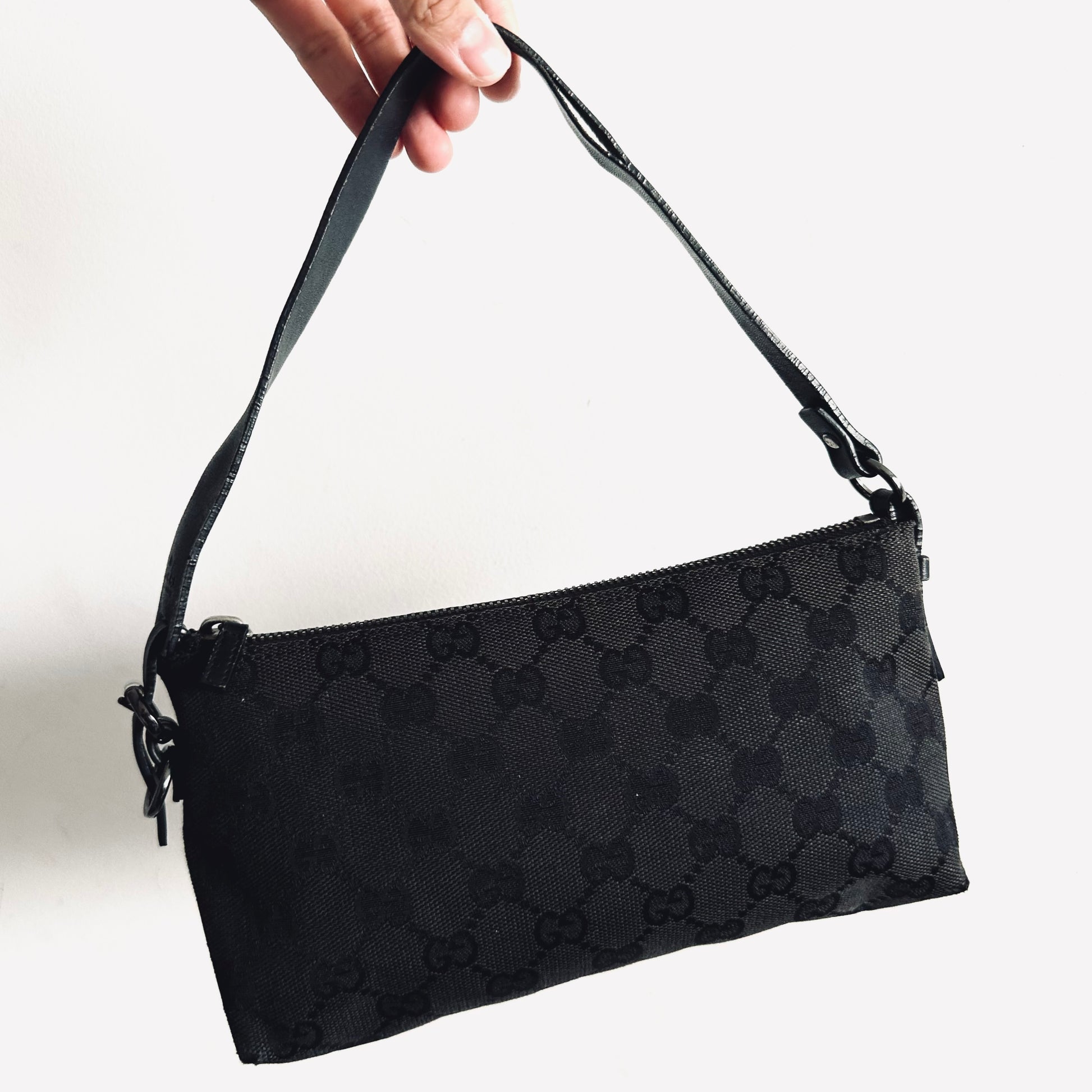 Gucci Black GG Monogram Logo Hobo Baguette Pochette Accessories Shoulder Bag