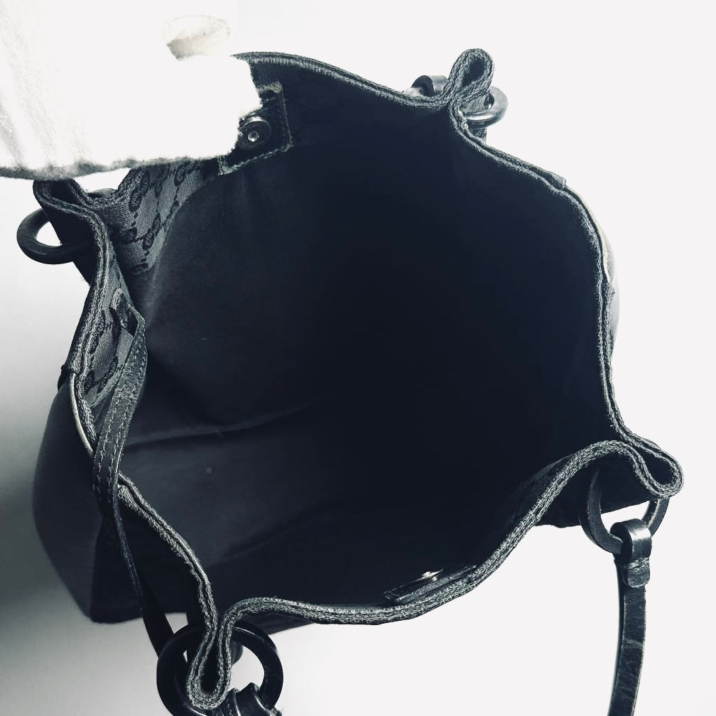 Gucci Black GG Monogram Logo Shopper Shoulder Tote Bag With Pouch