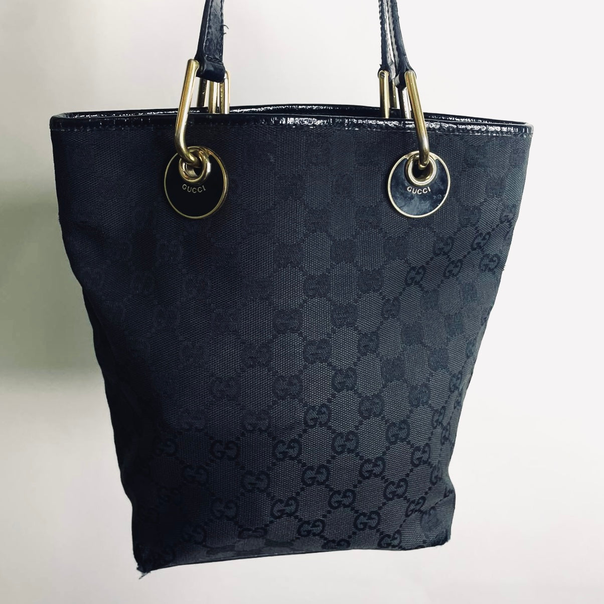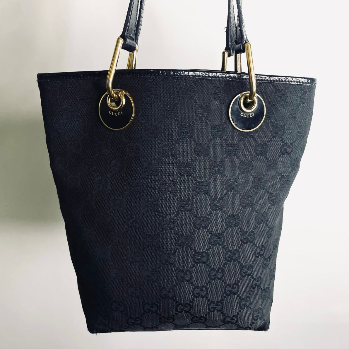 Gucci Black GHW Eclipse GG Monogram Logo Shoulder Shopper Tote Bag