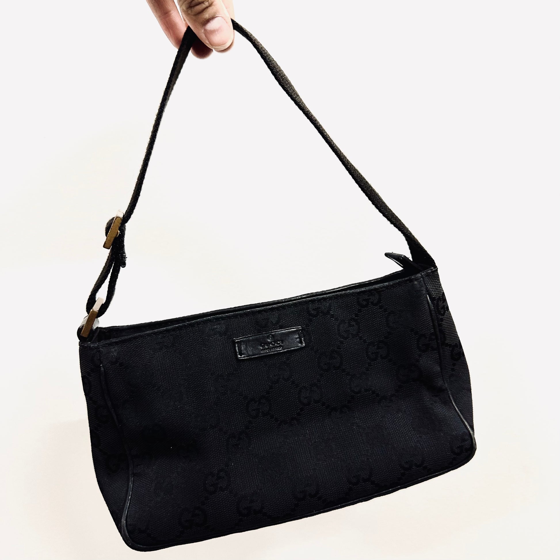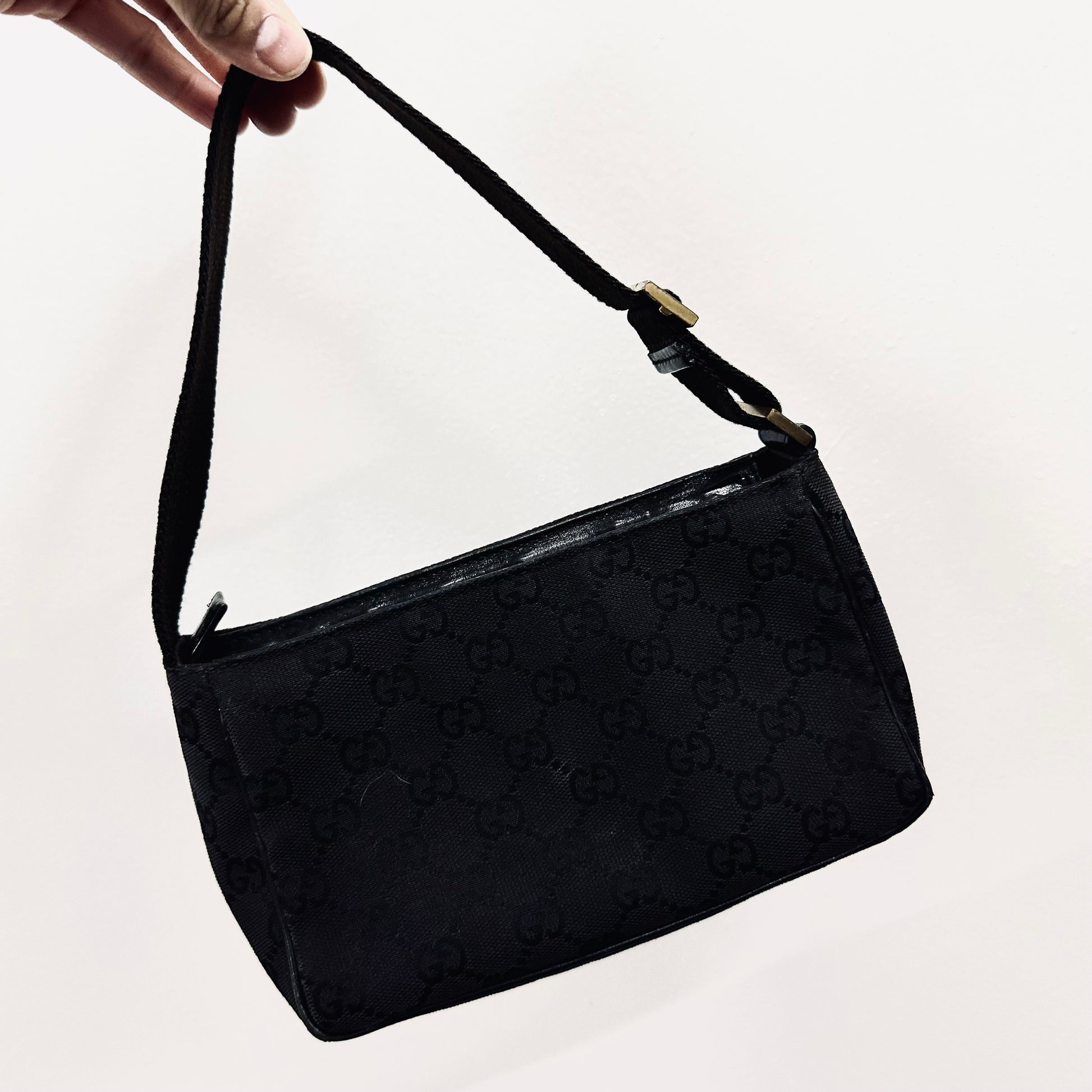 Gucci Black GHW GG Monogram Hobo Bageutte Pochette Shoulder Bag
