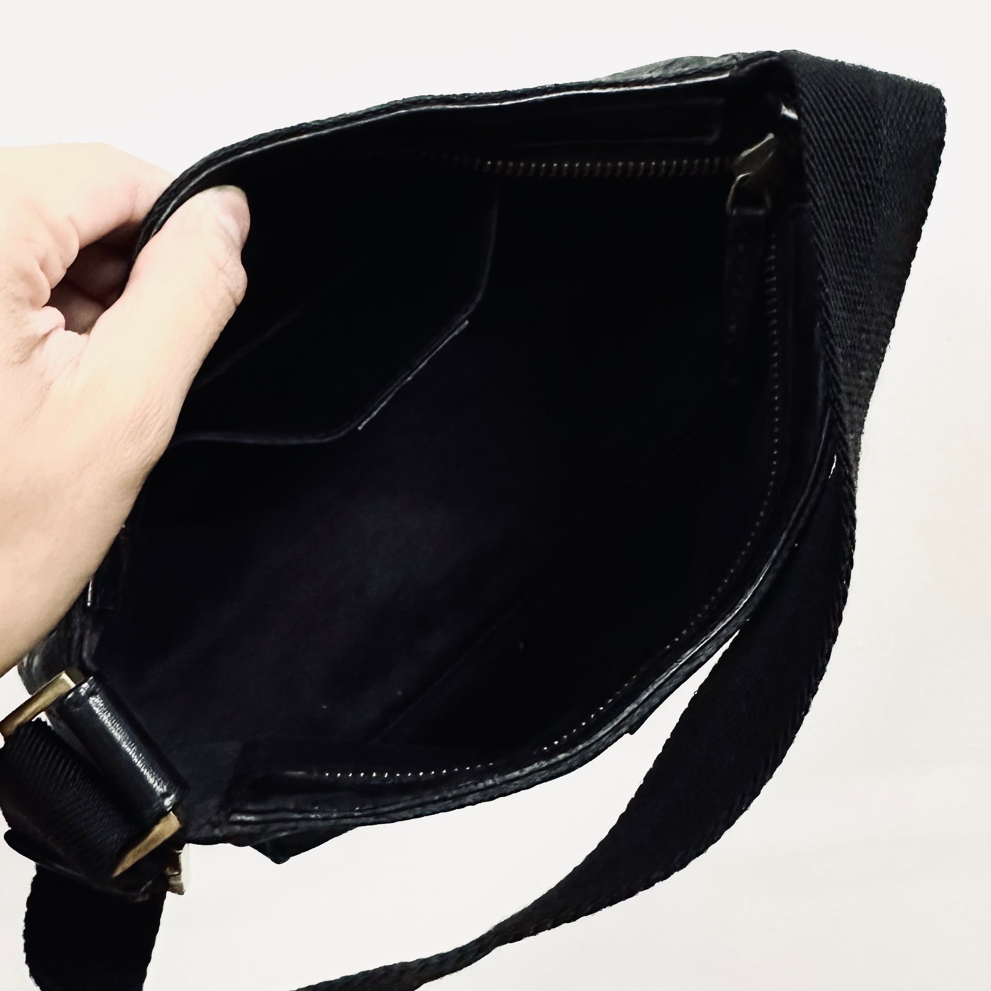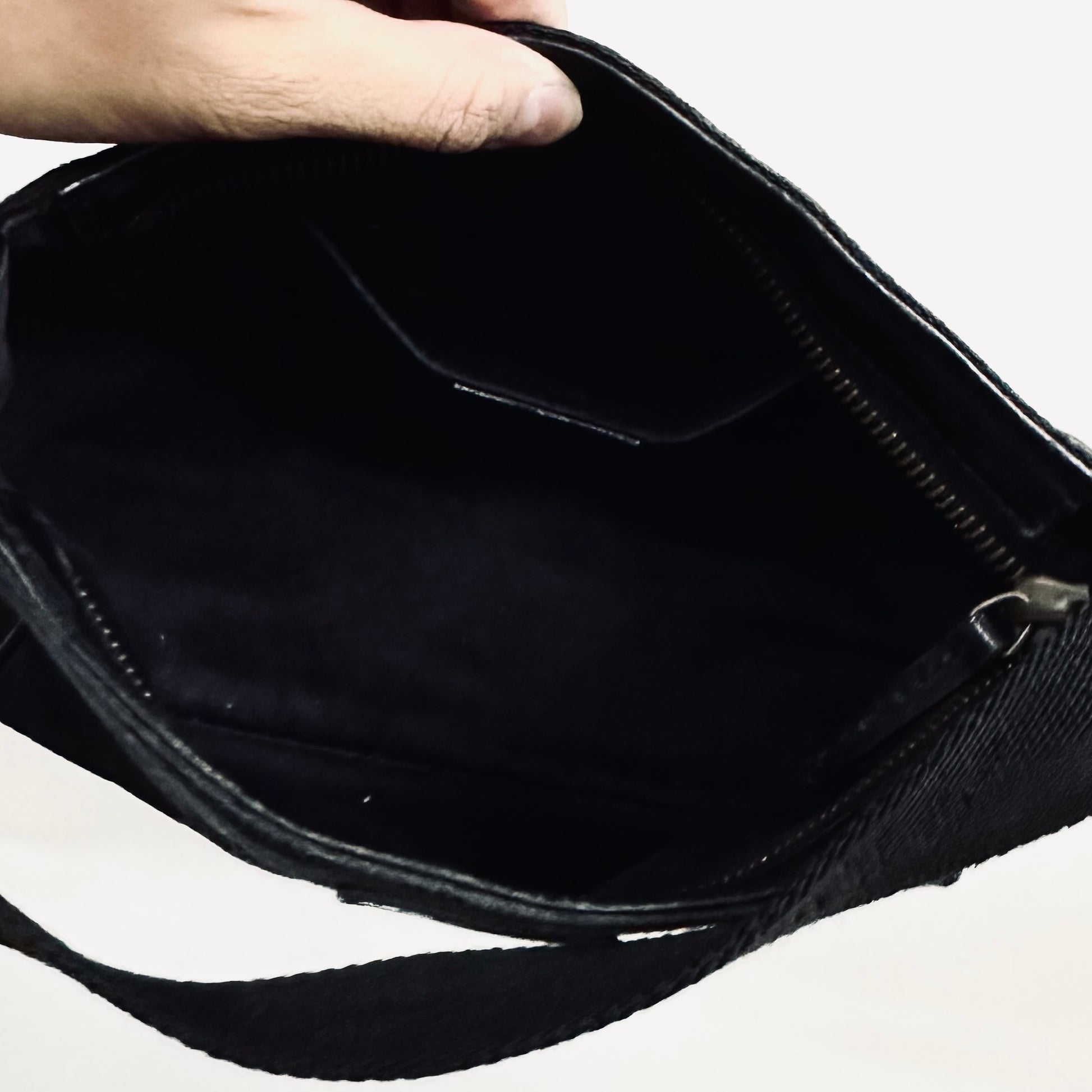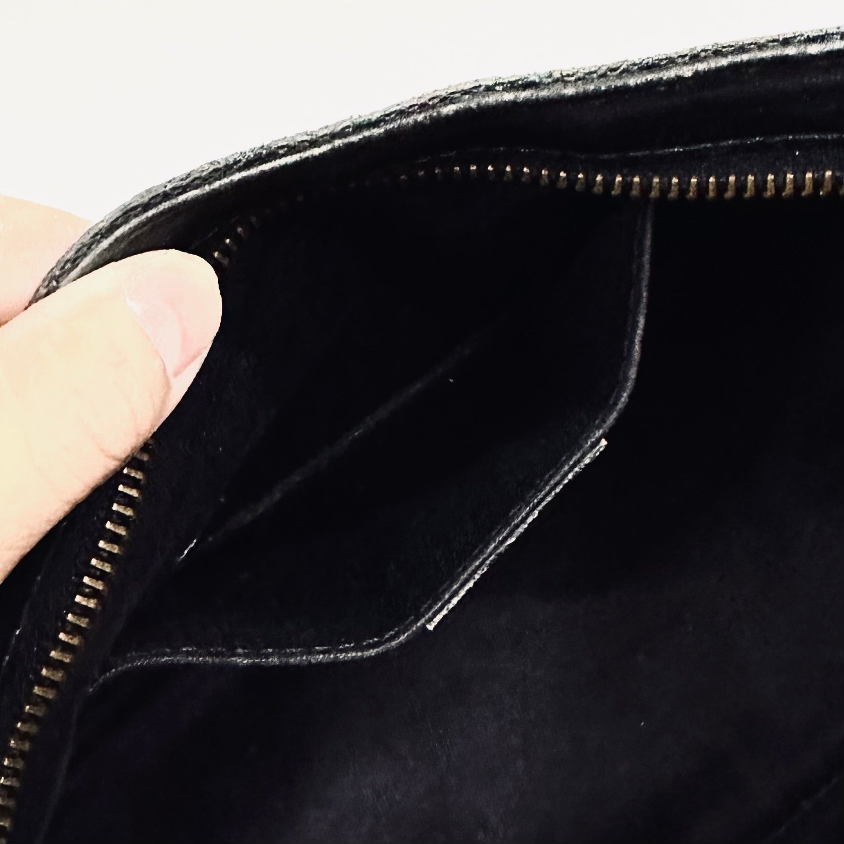 Preloved 9.4/10. This has a zip closure, slip pocket and central compartment. This measures 20x12x6cm.