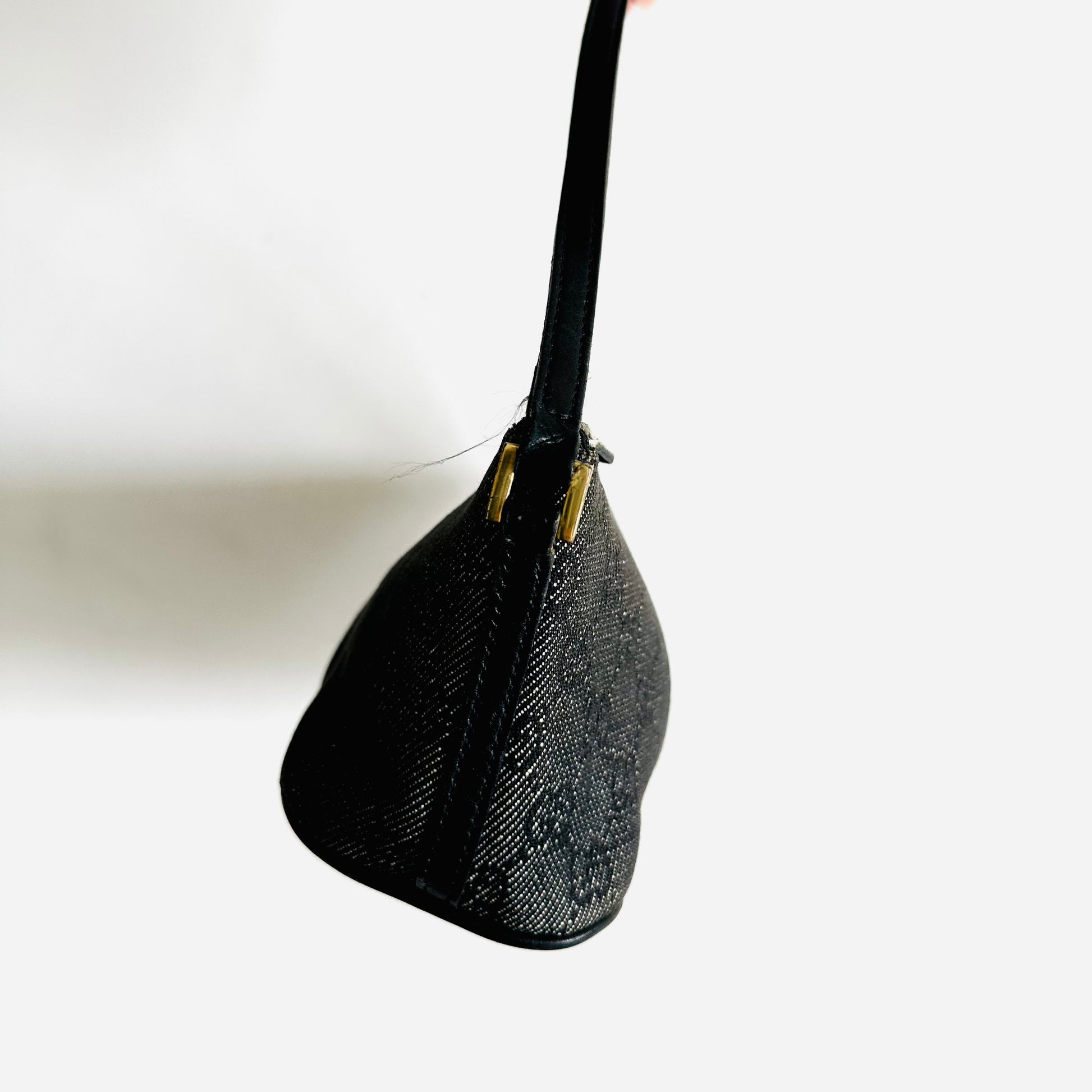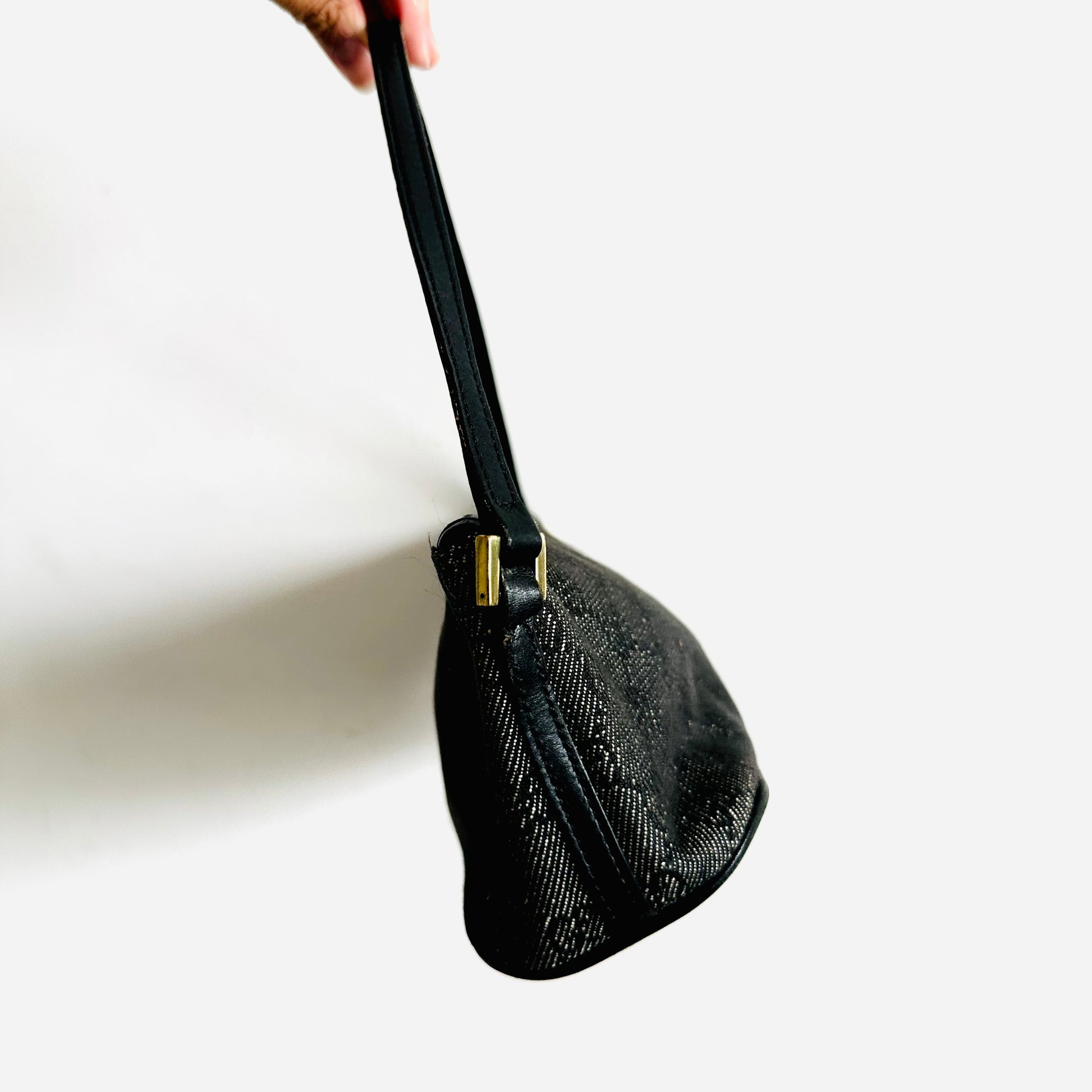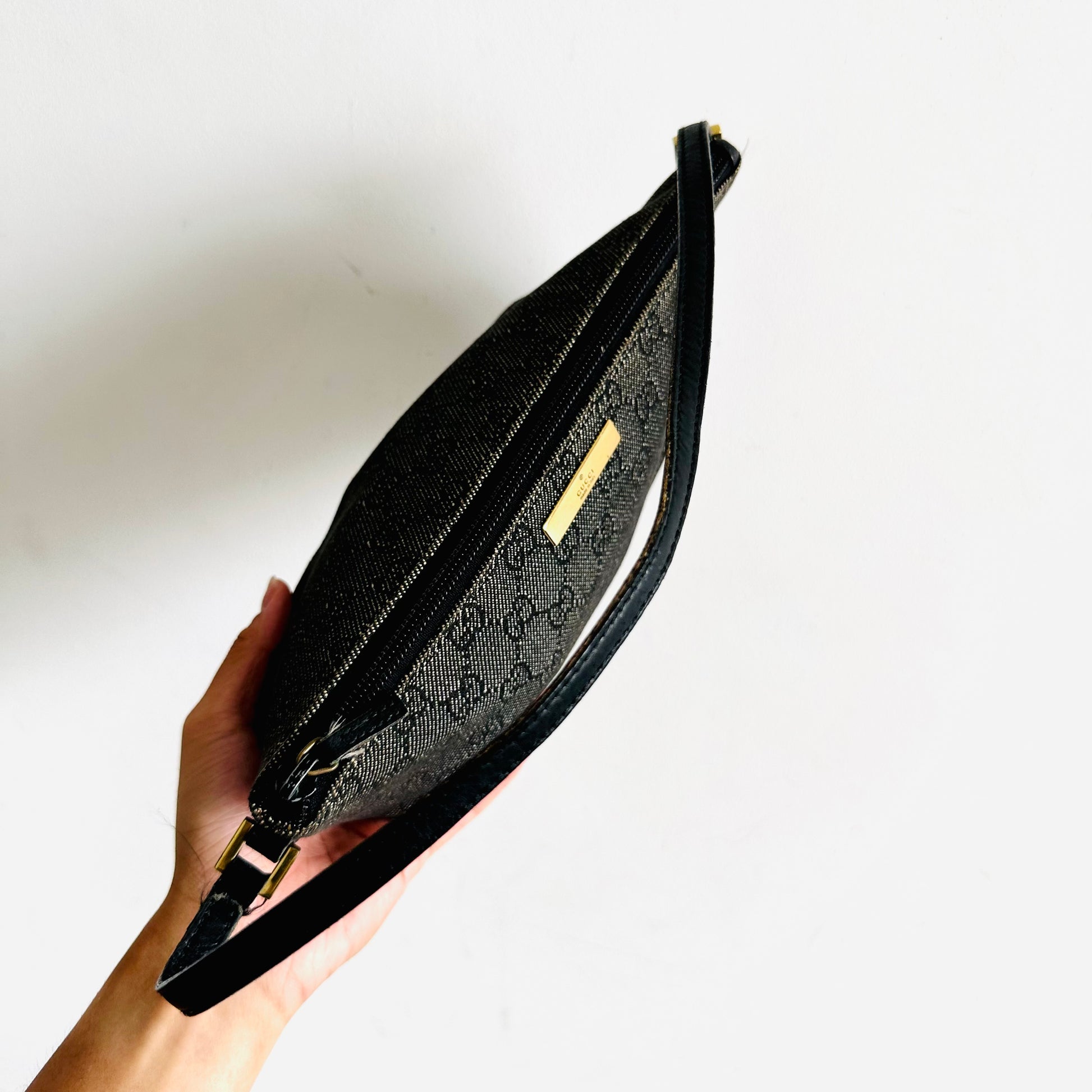 Gucci Black GHW GG Monogram Logo Mini Hobo Pochette Accessories Shoulder Bag