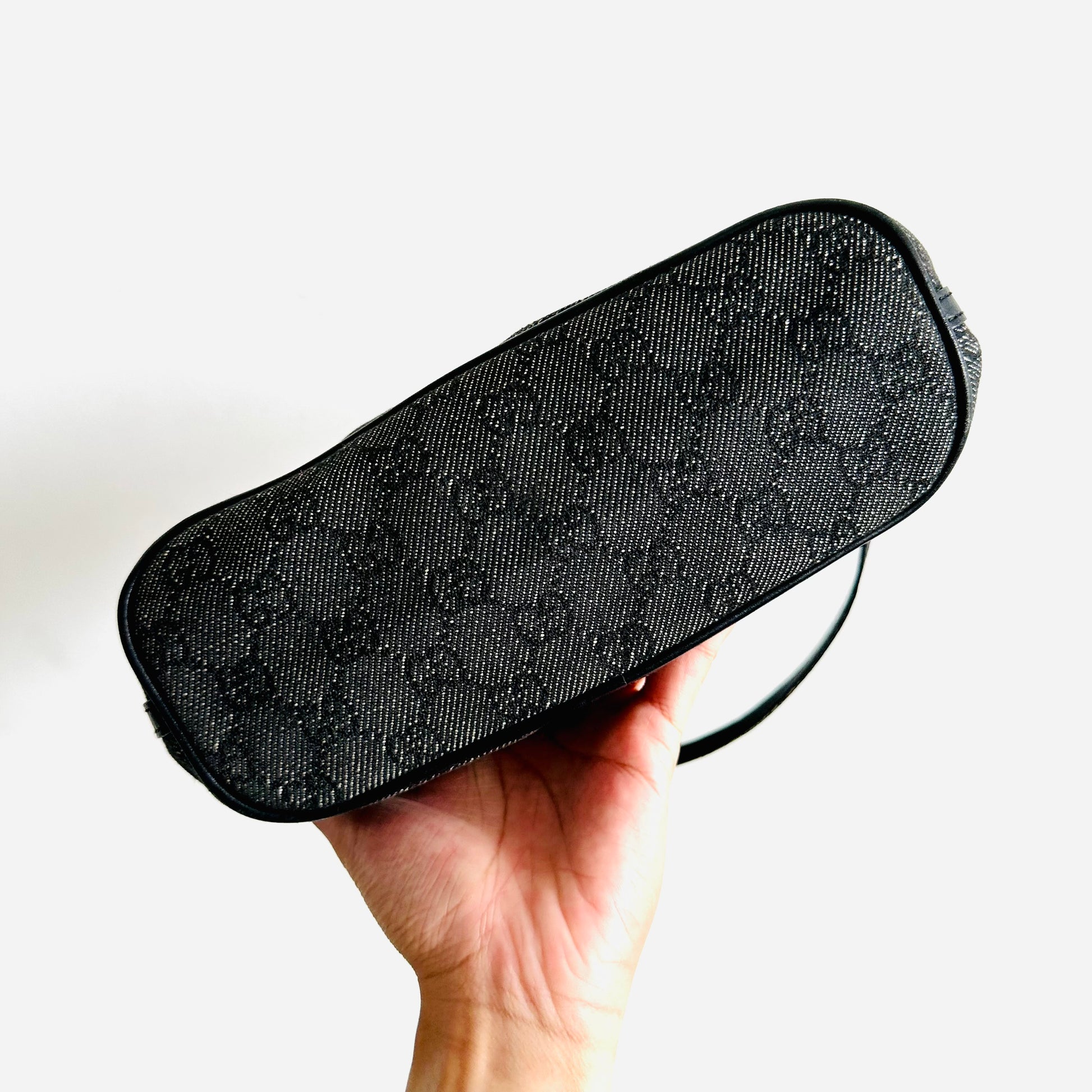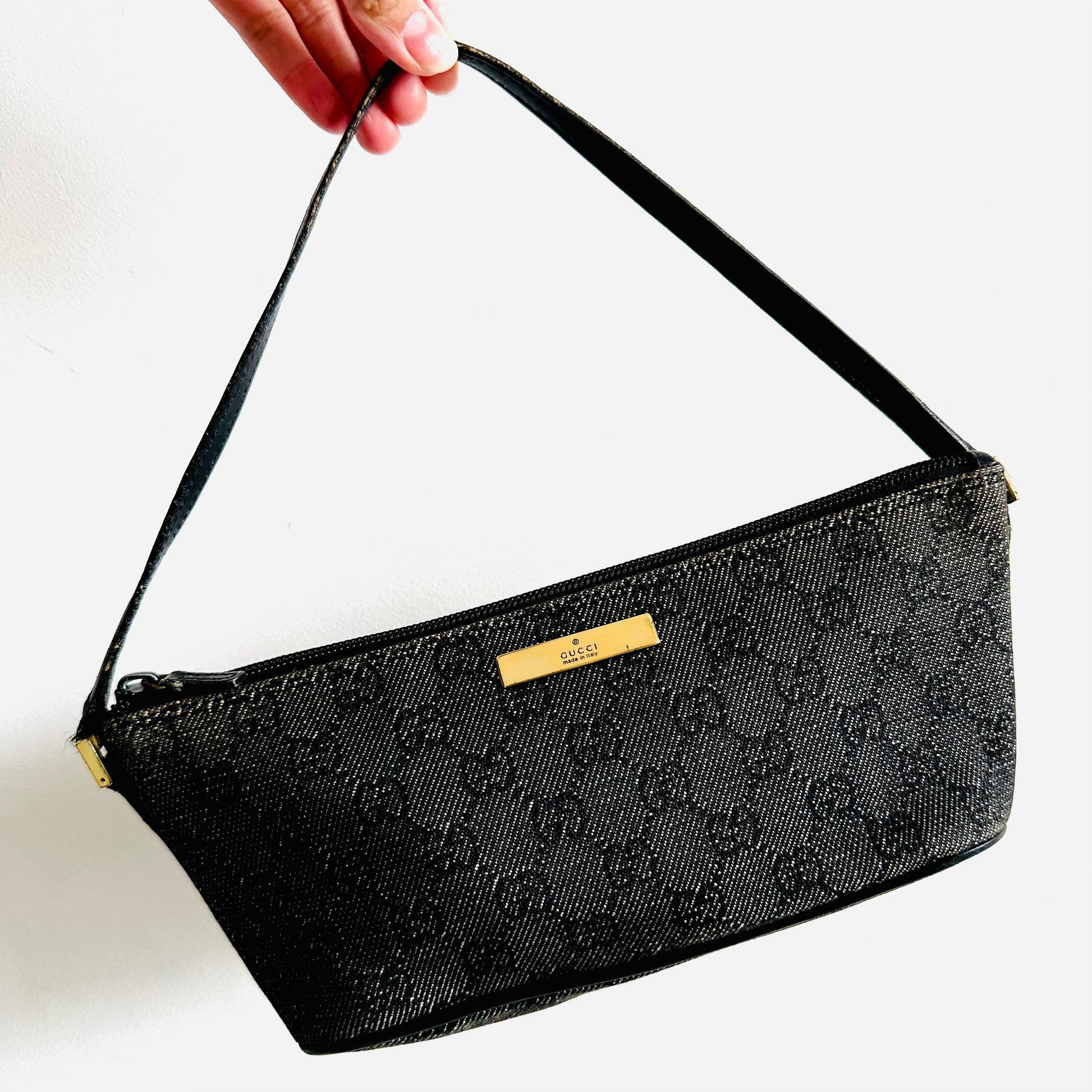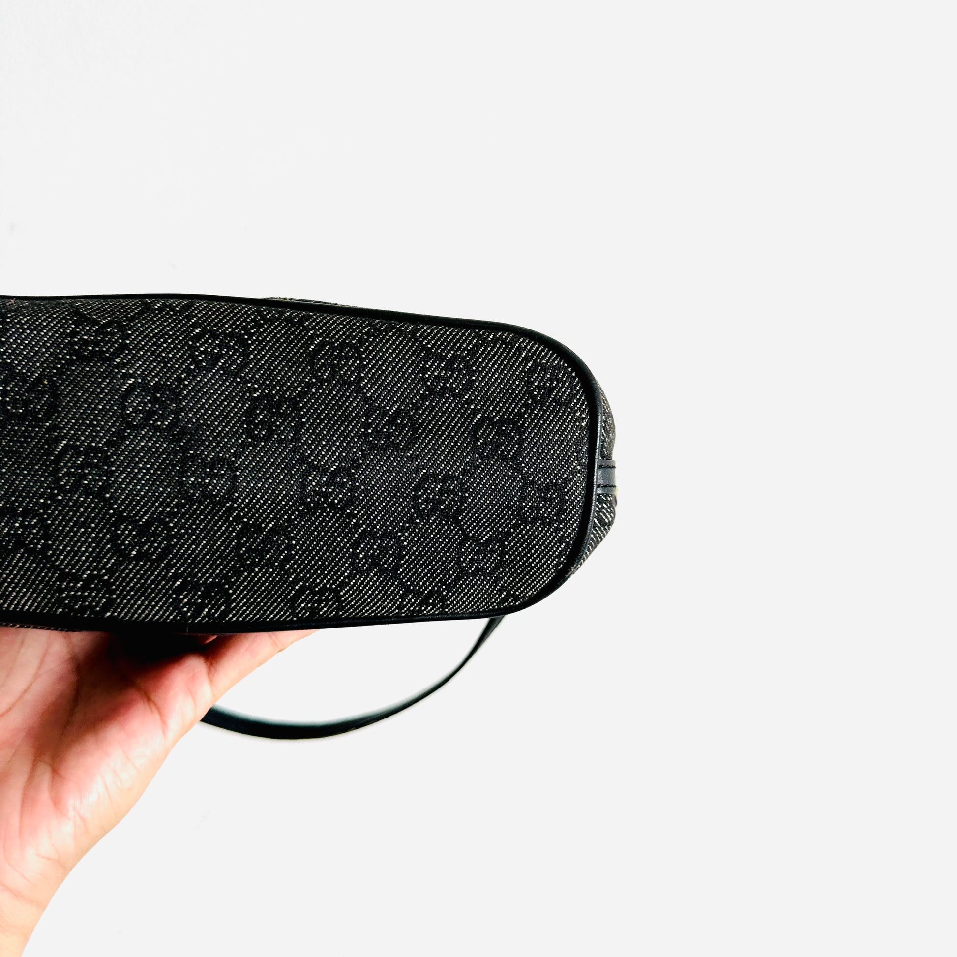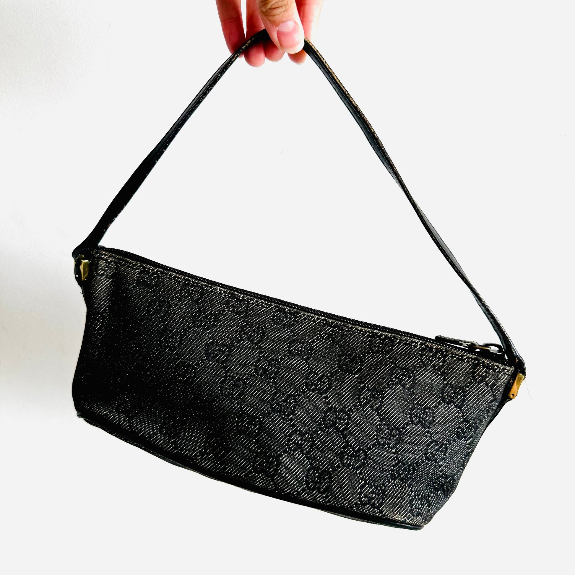 Gucci Black GHW GG Monogram Logo Mini Hobo Pochette Accessories Shoulder Bag