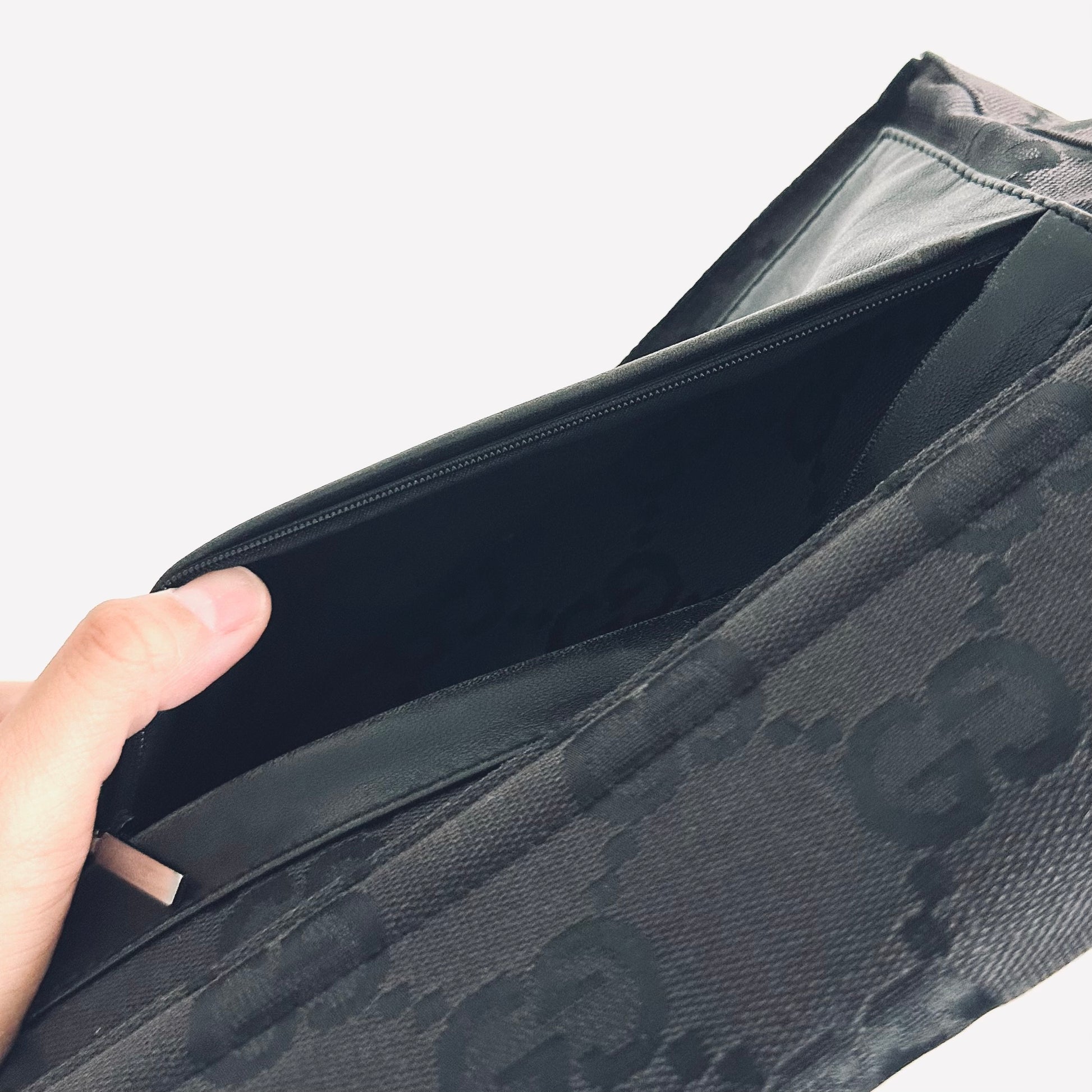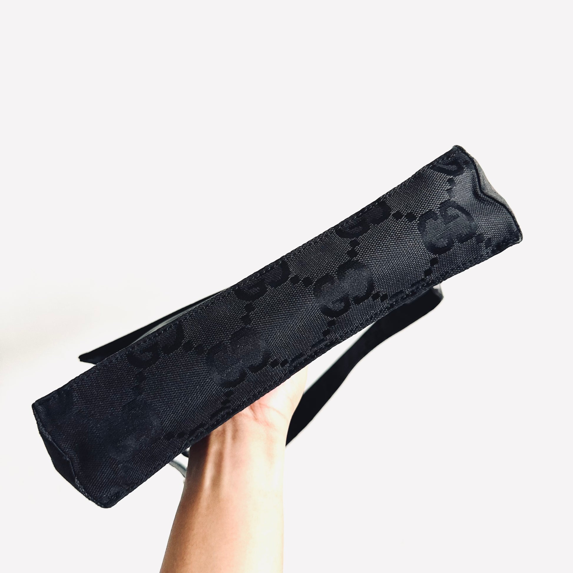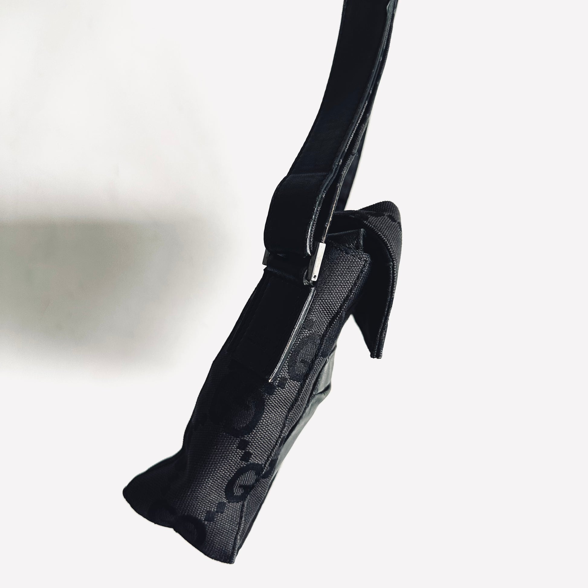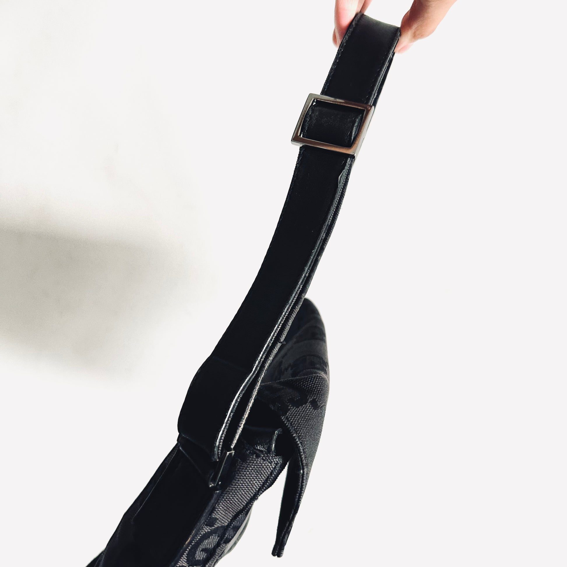Gucci Black Giant GG Monogram Logo Flap Hobo Baguette Shoulder Bag
