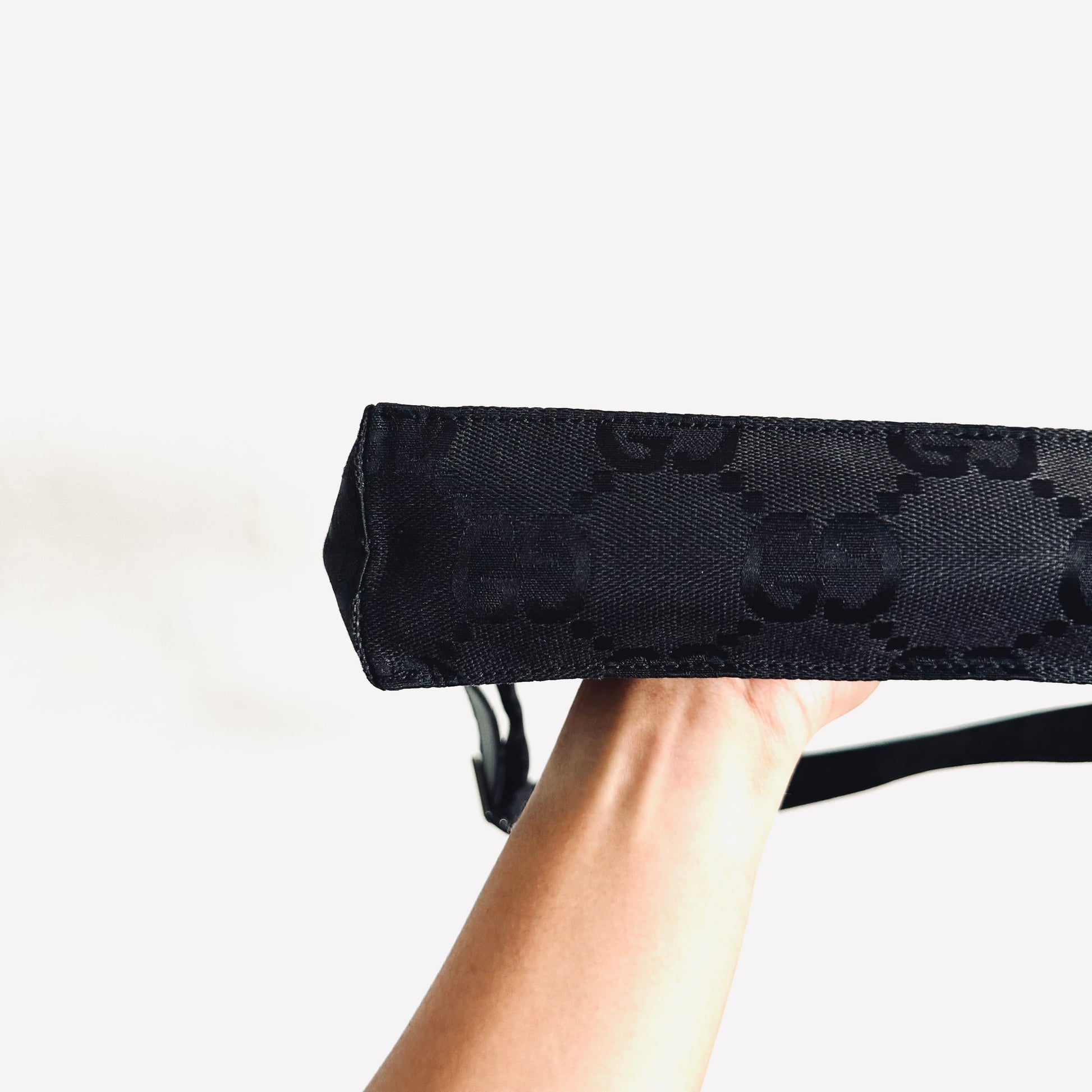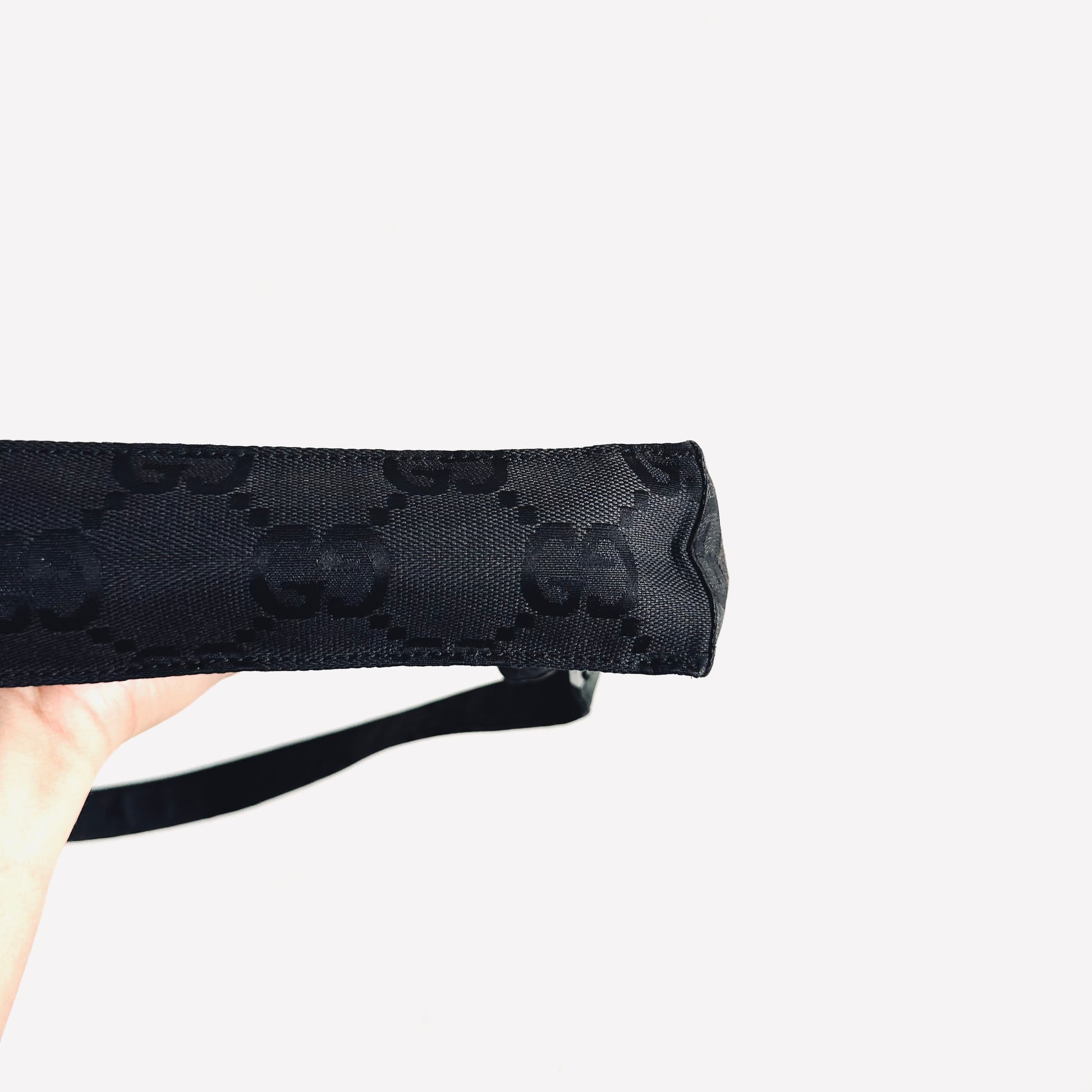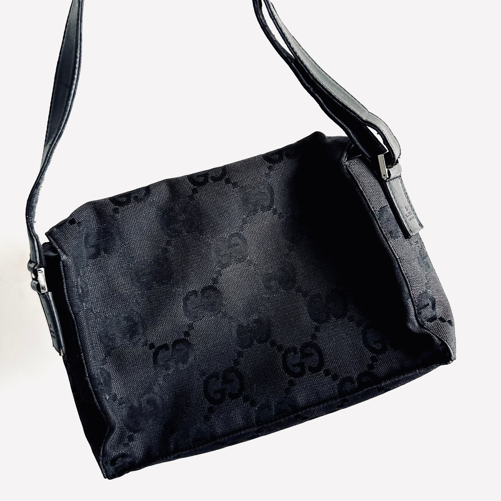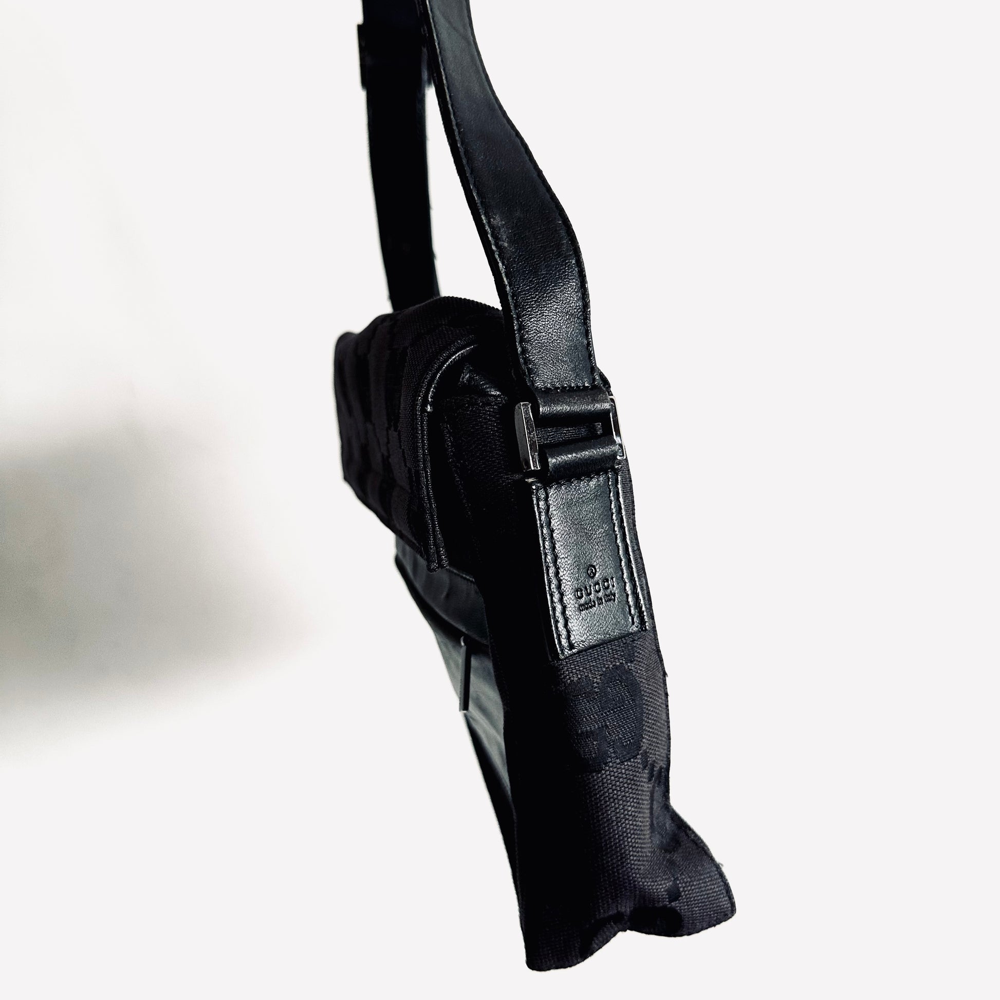 Gucci Black Giant GG Monogram Logo Flap Hobo Baguette Shoulder Bag