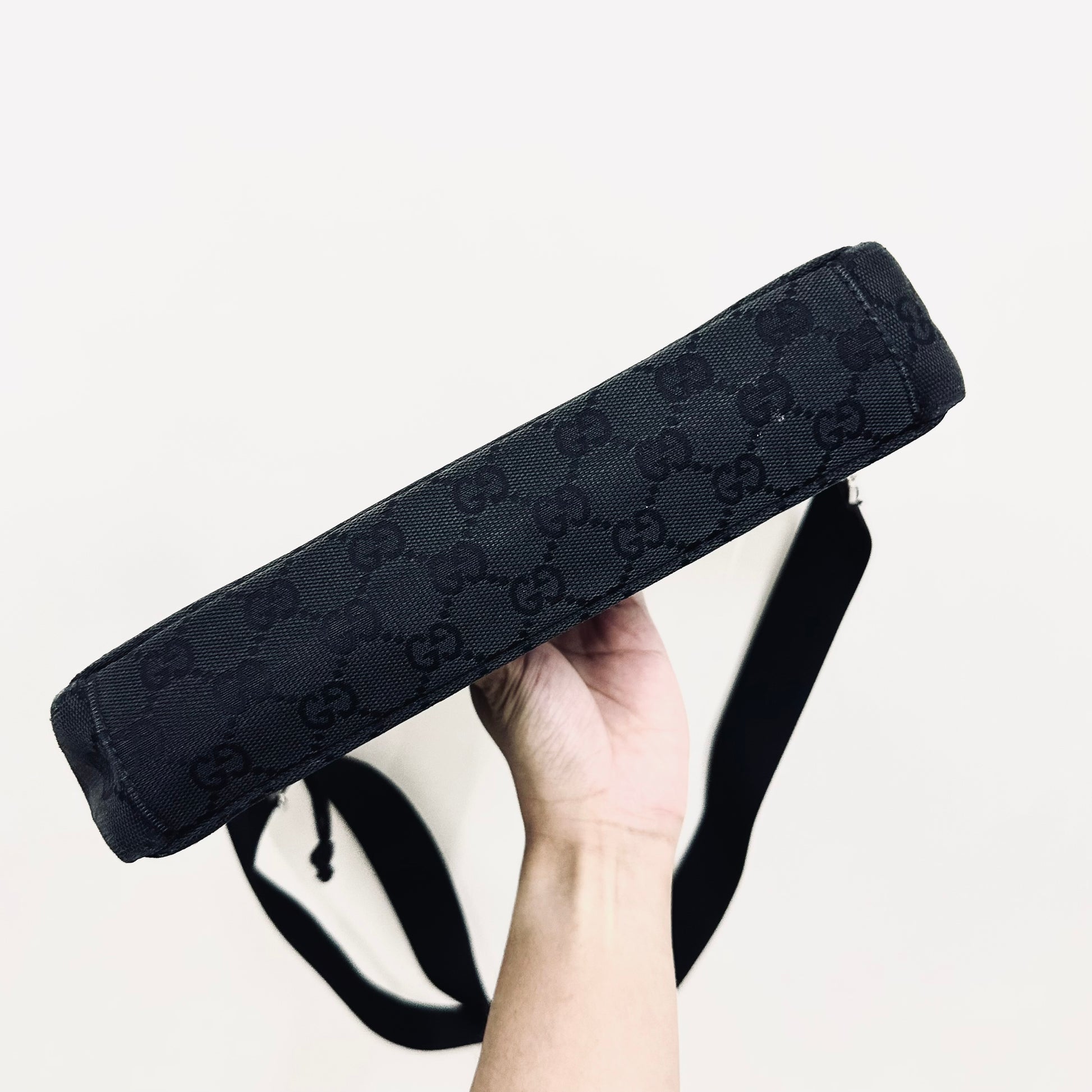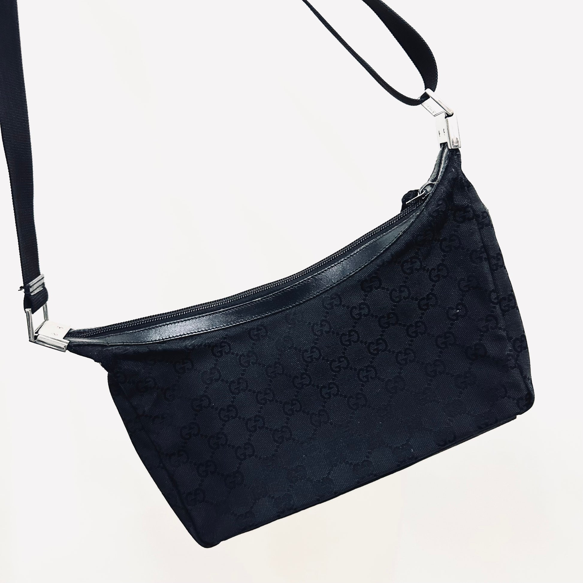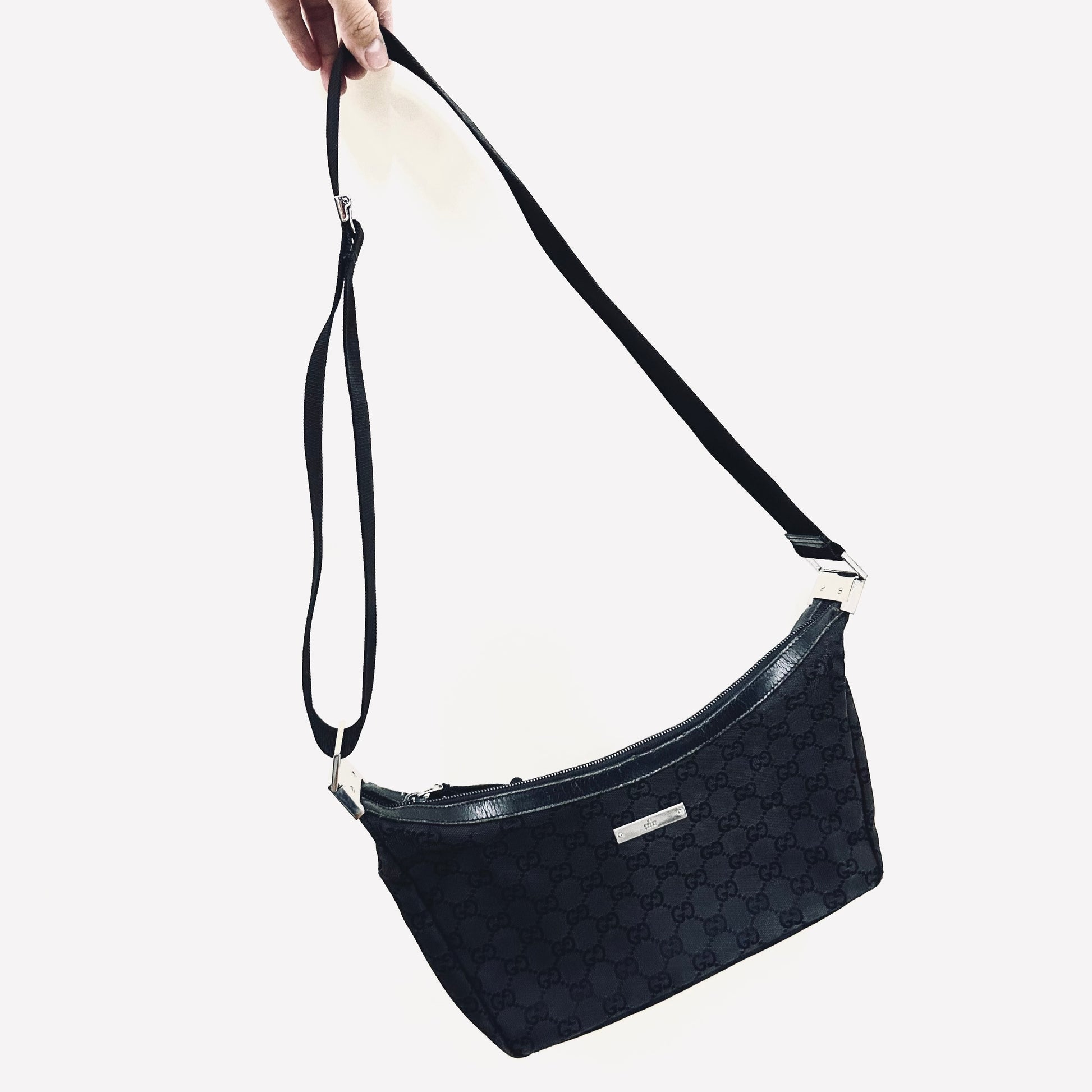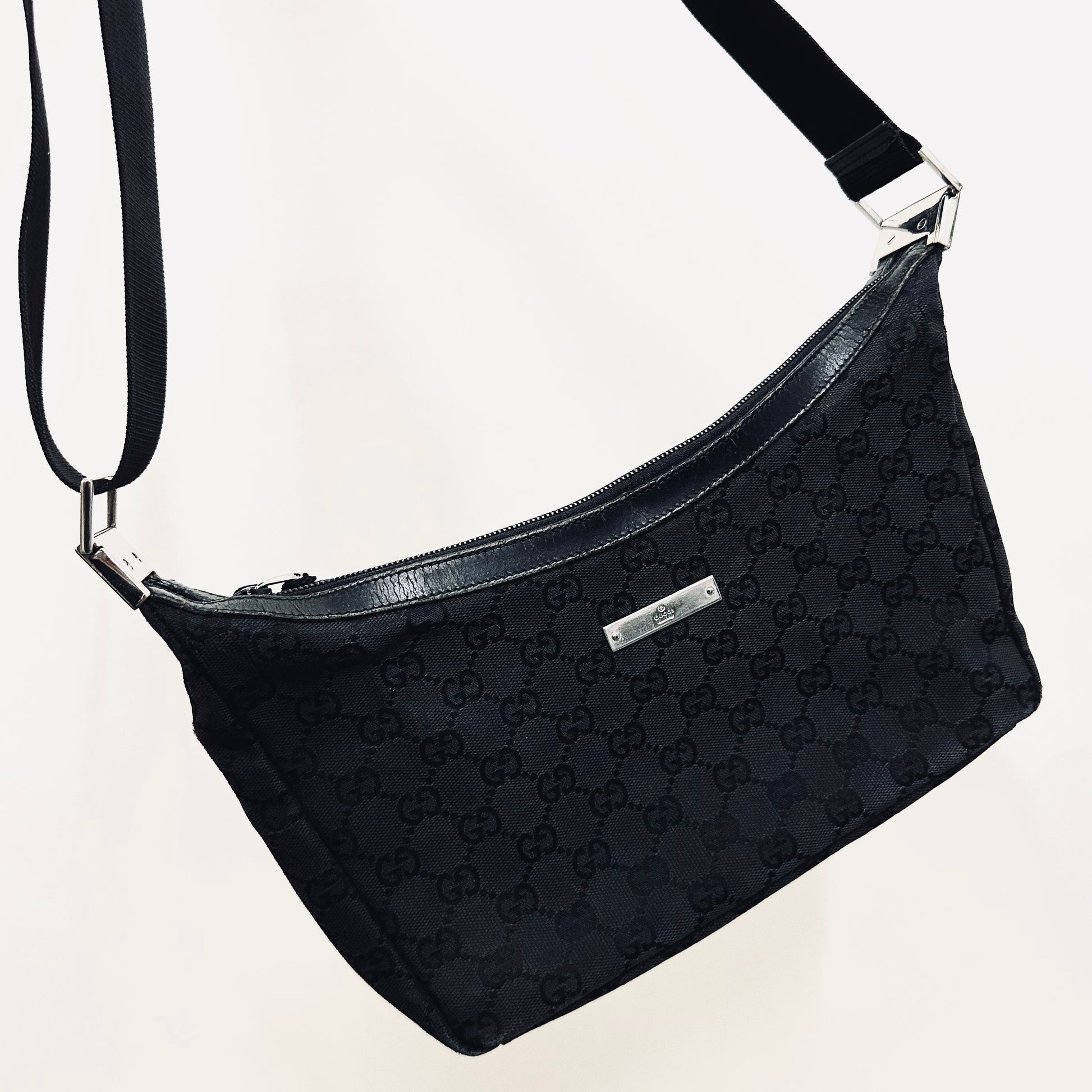 Gucci Black Half Moon Crescent GG Monogram Logo Hobo Baguette Shoulder Sling Bag