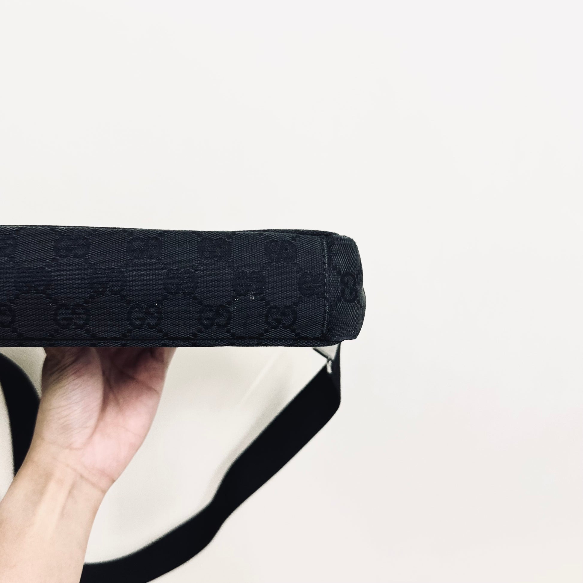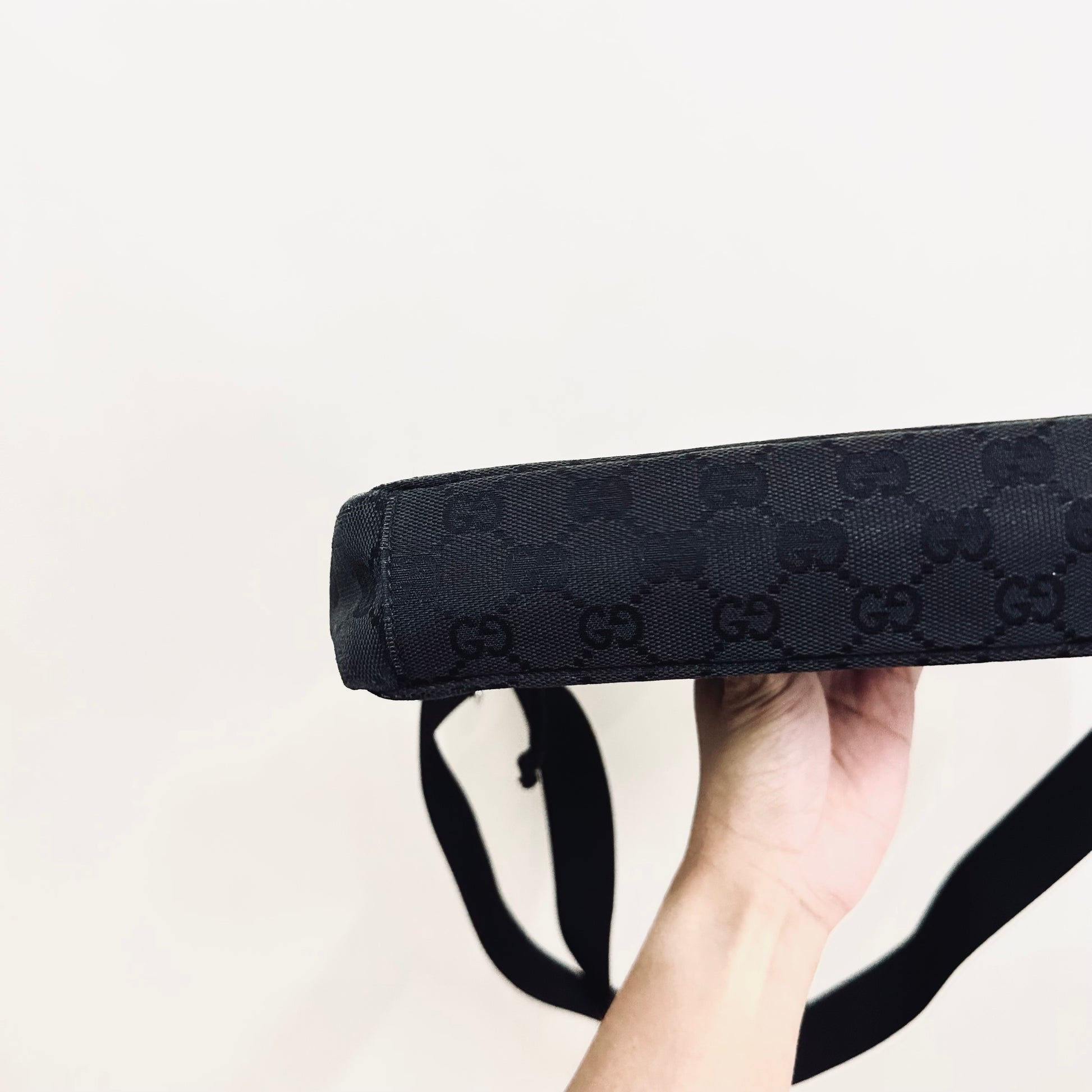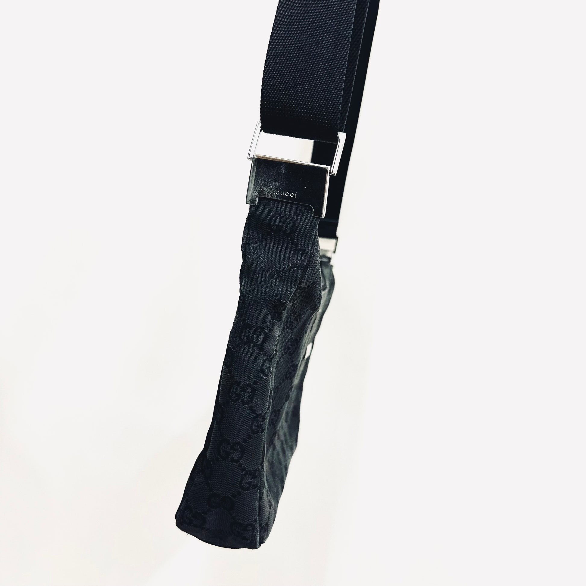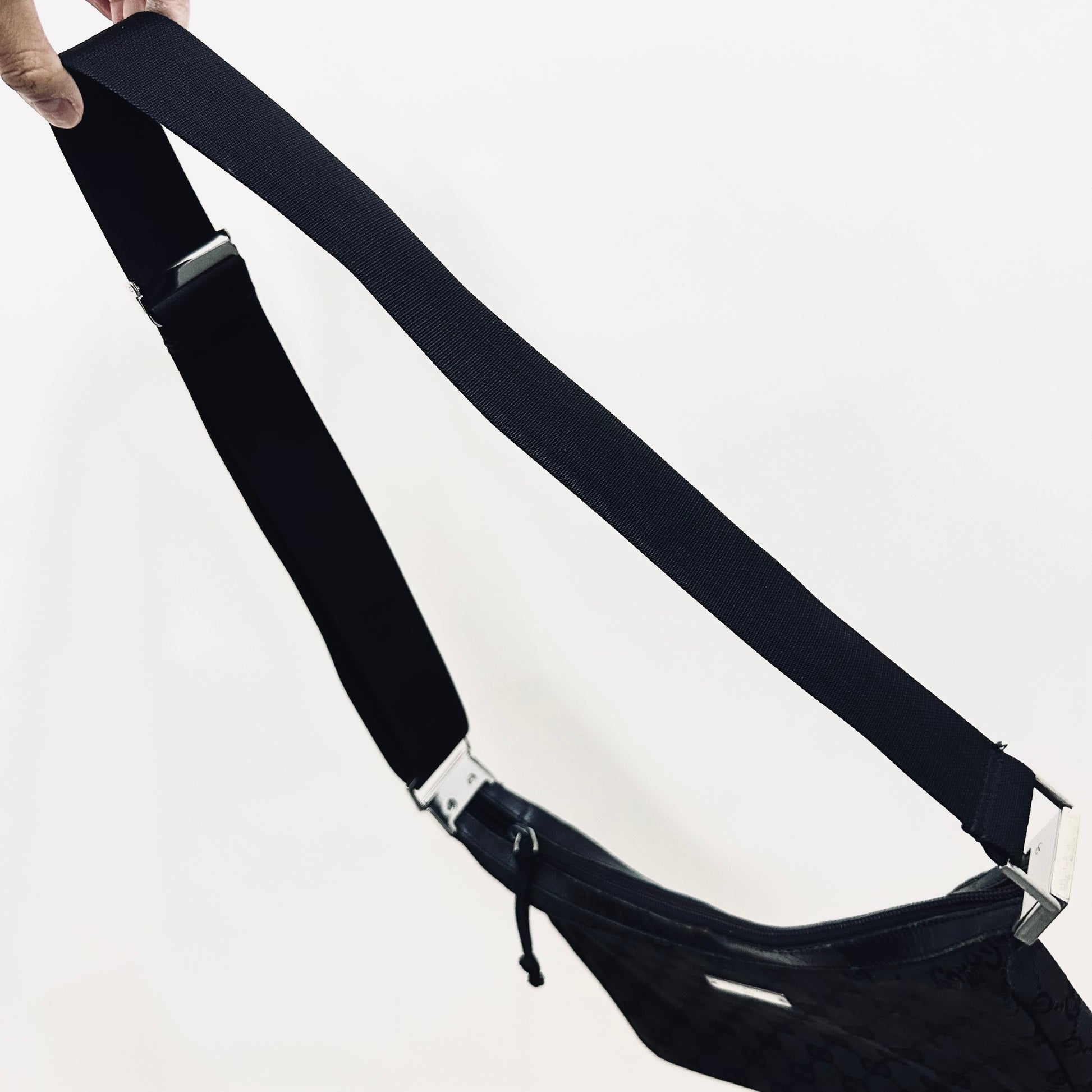 Gucci Black Half Moon Crescent GG Monogram Logo Hobo Baguette Shoulder Sling Bag