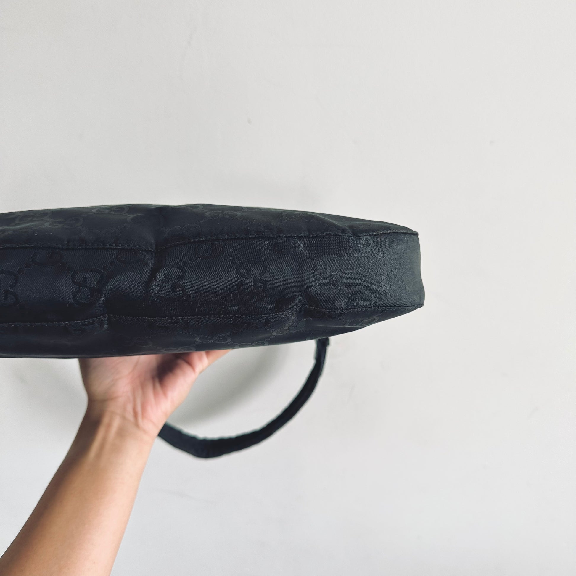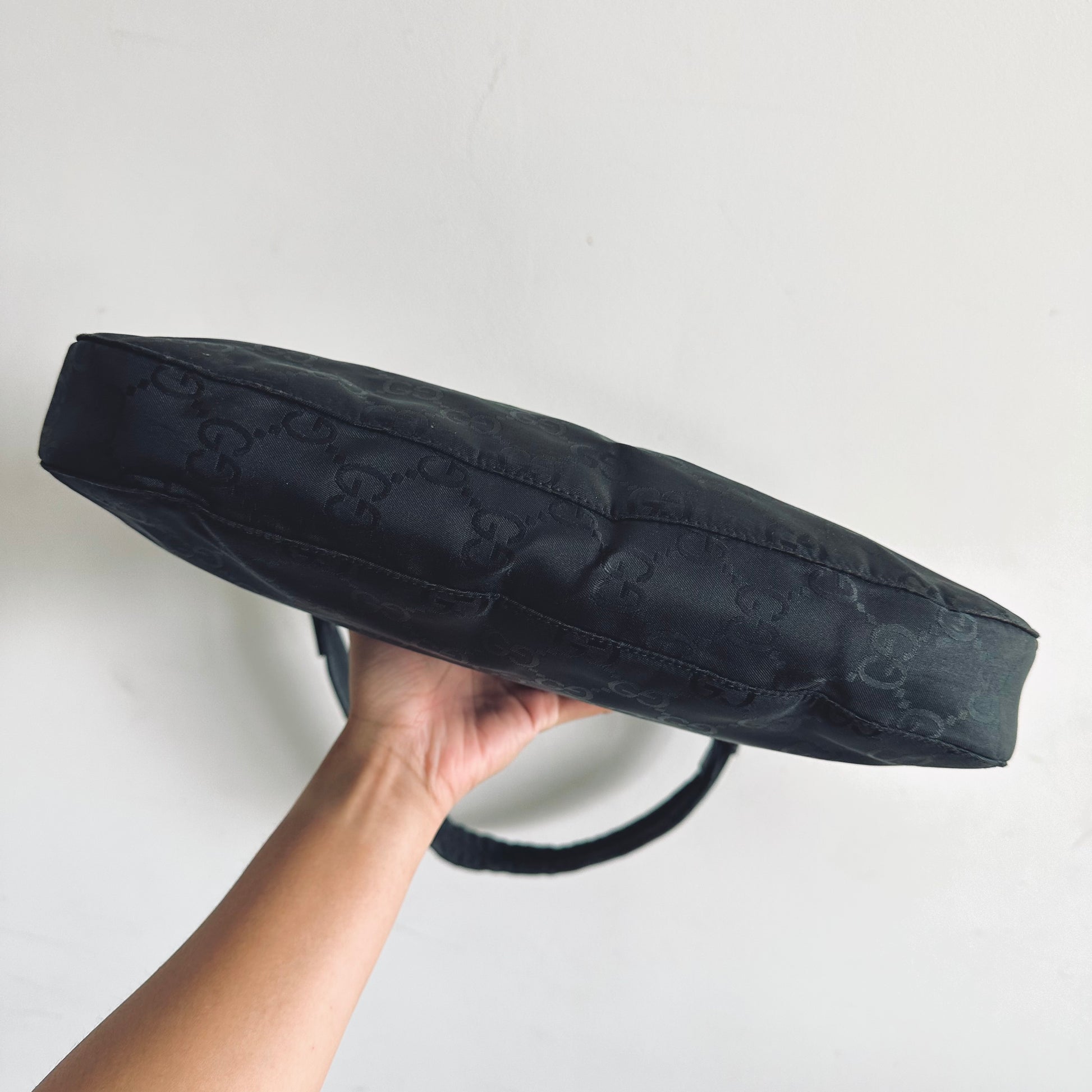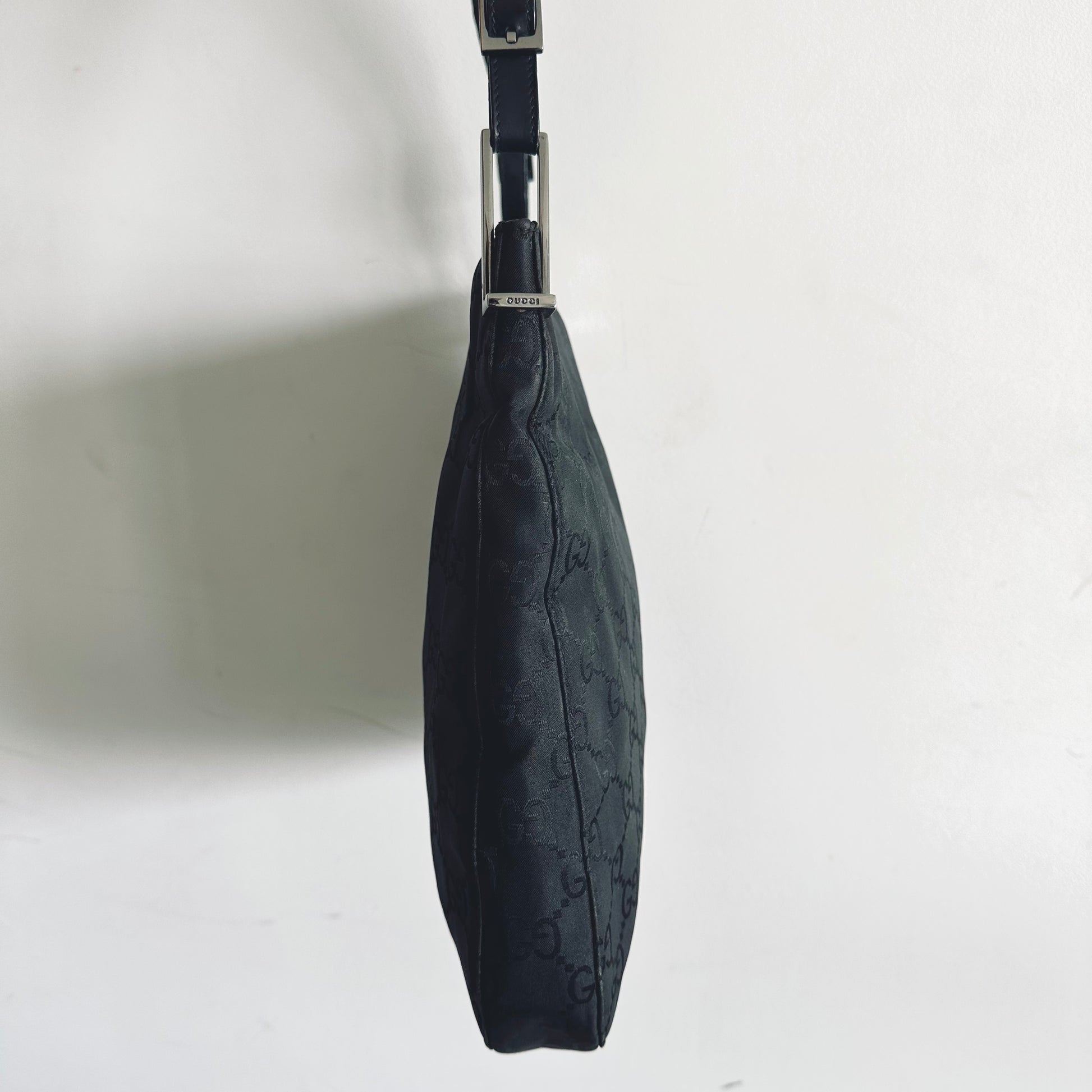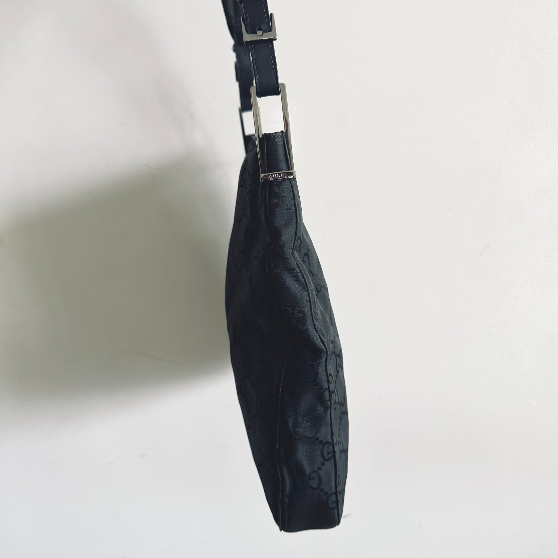 Gucci Black Iridescent GG Monogram Hobo Baguette Shoulder Bag