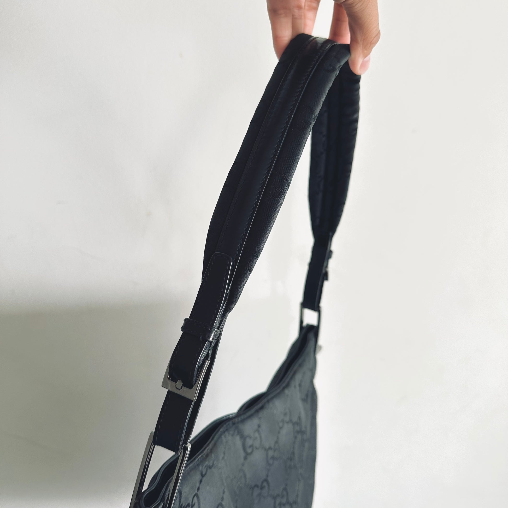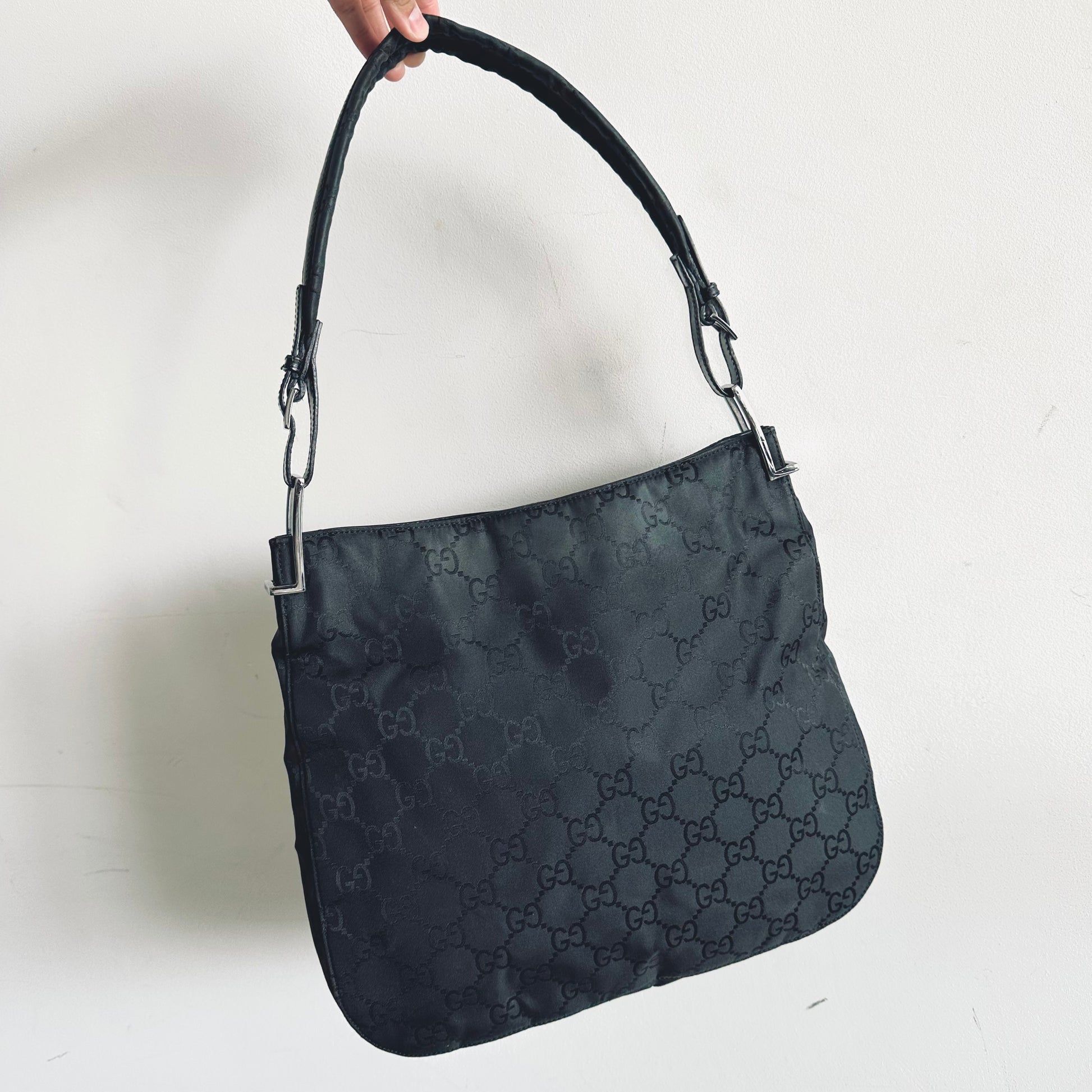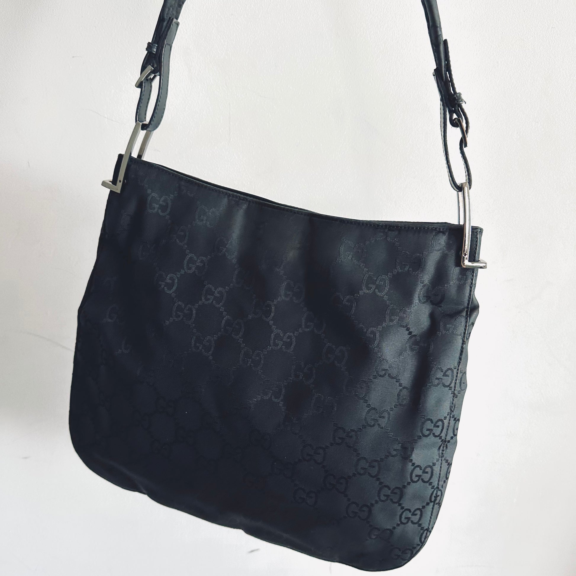 Gucci Black Iridescent GG Monogram Hobo Baguette Shoulder Bag