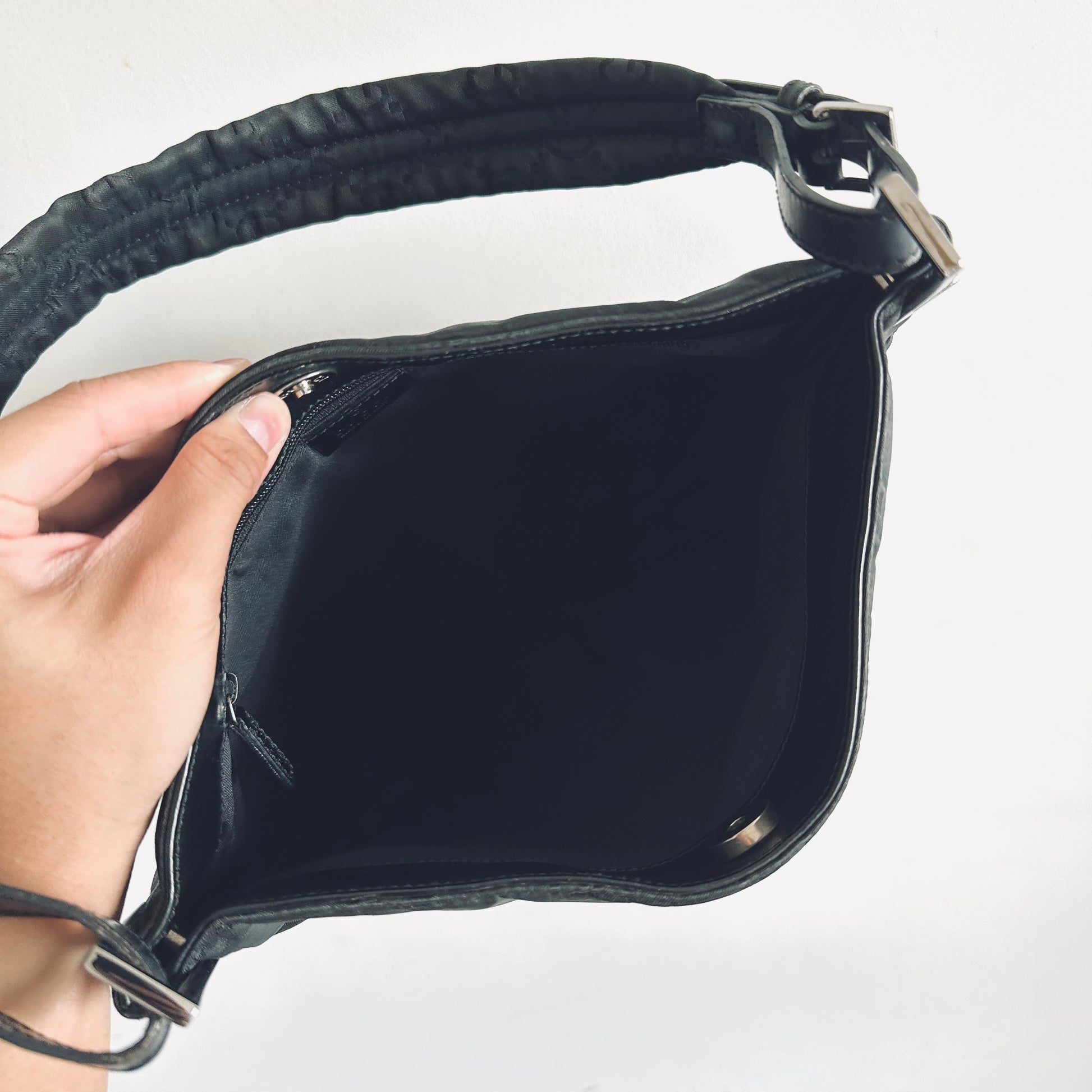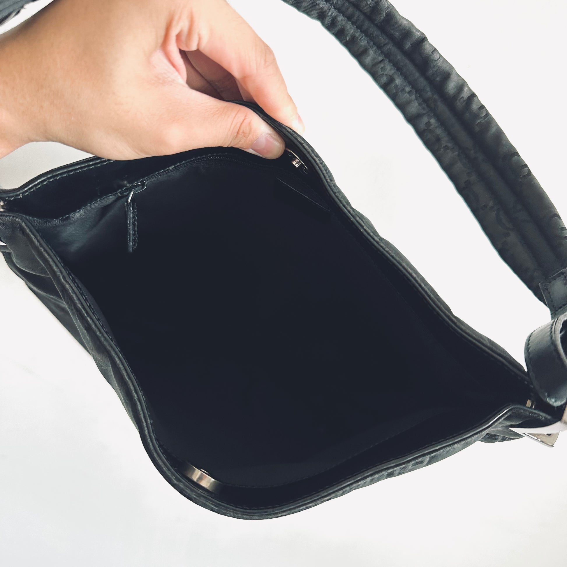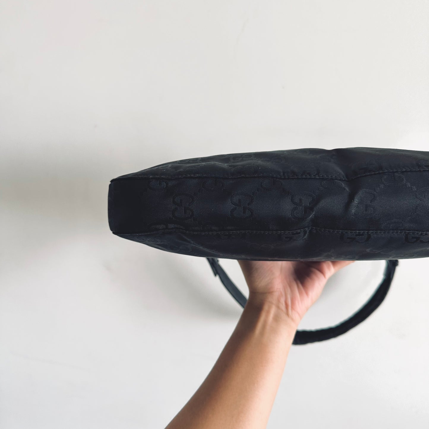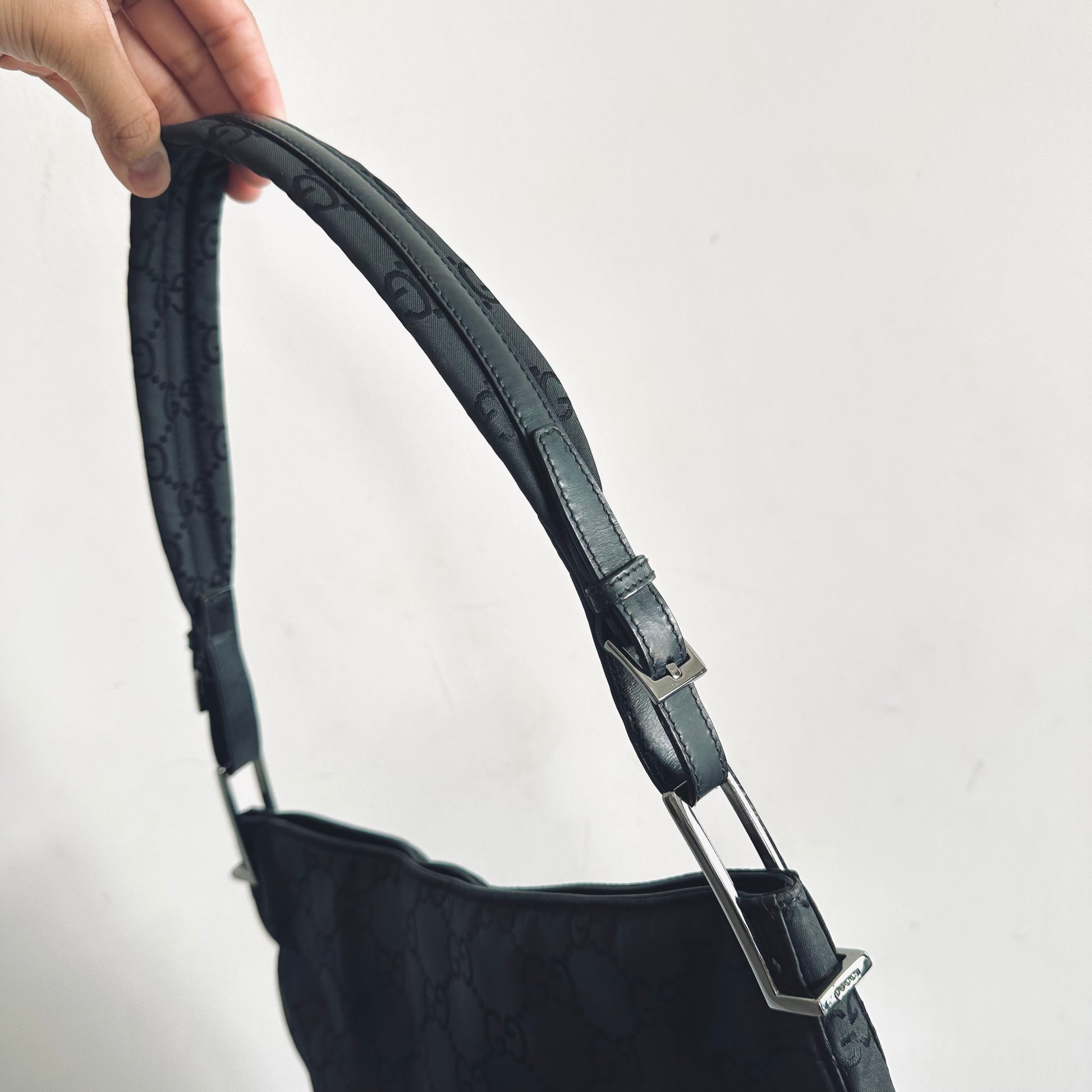 Gucci Black Iridescent GG Monogram Hobo Baguette Shoulder Bag