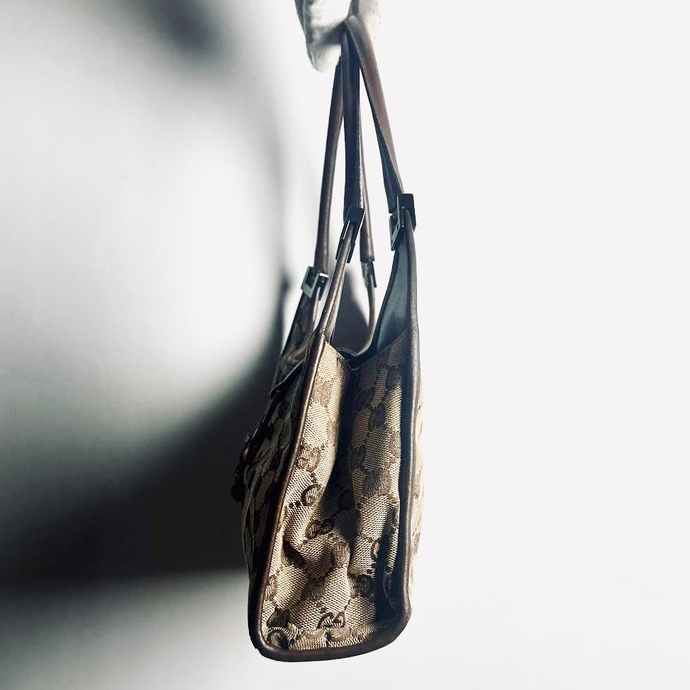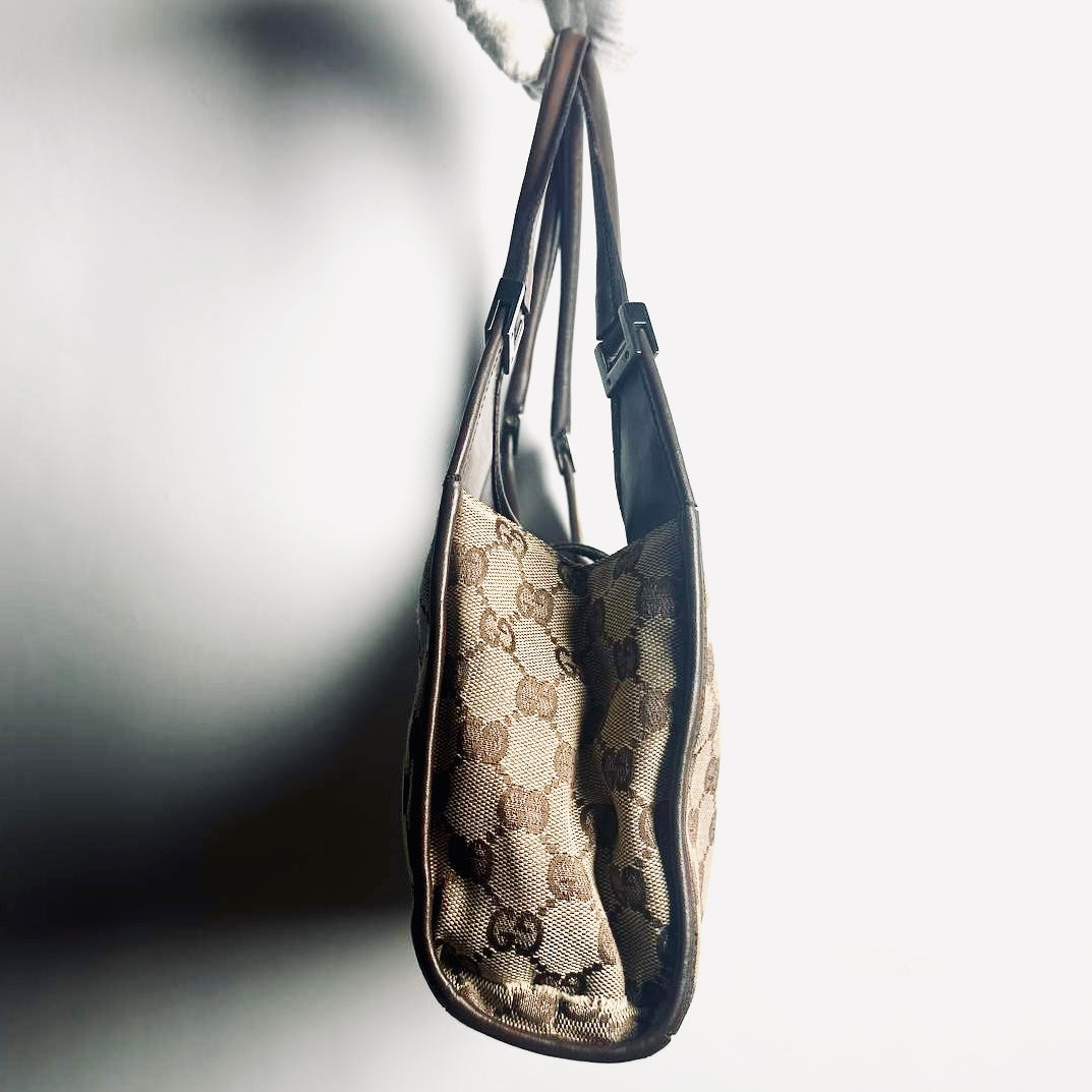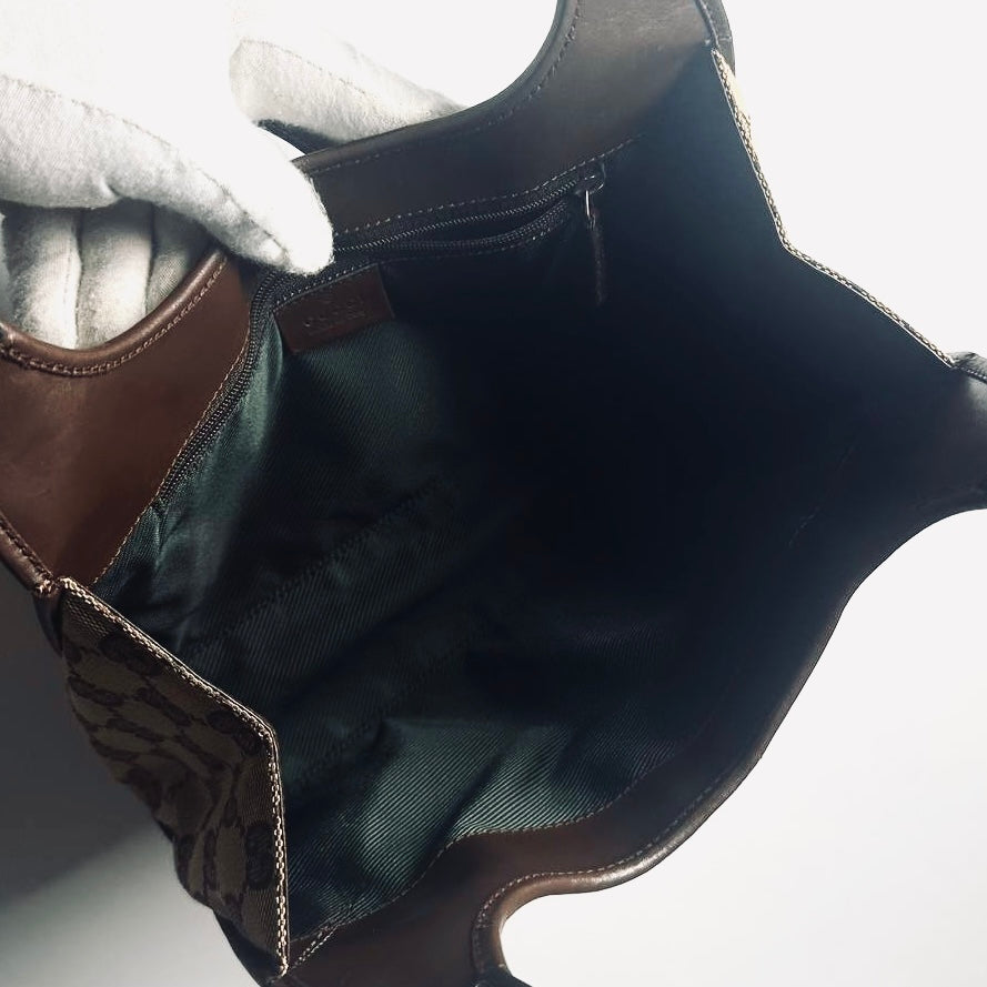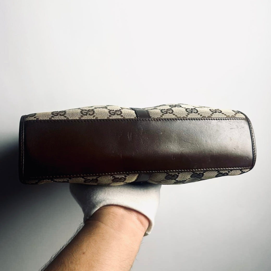 Gucci Brown / Beige Jackie GG Monogram Logo Vintage Baguette Hobo Shoulder Bag