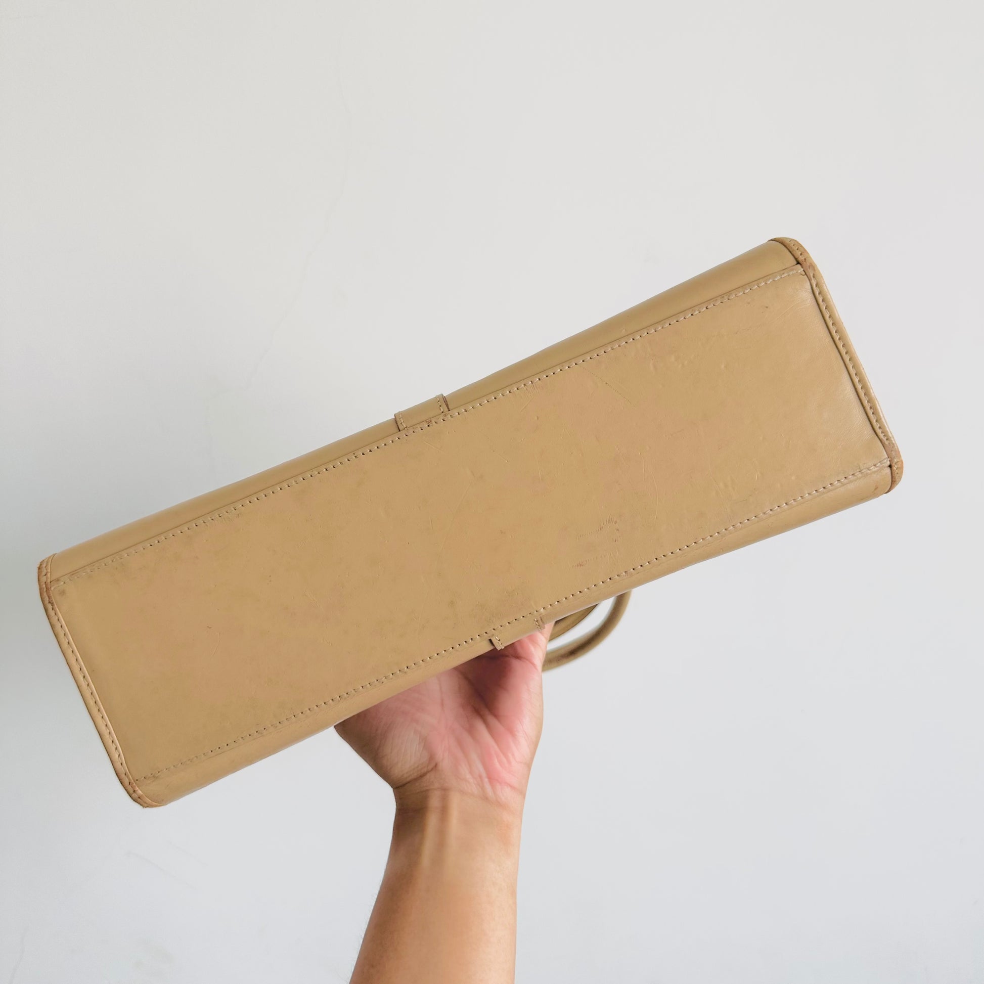 Preloved 9.3/10. This has a clasp flap closure, central compartment and zip pocket. This measures 31x18x8cm.