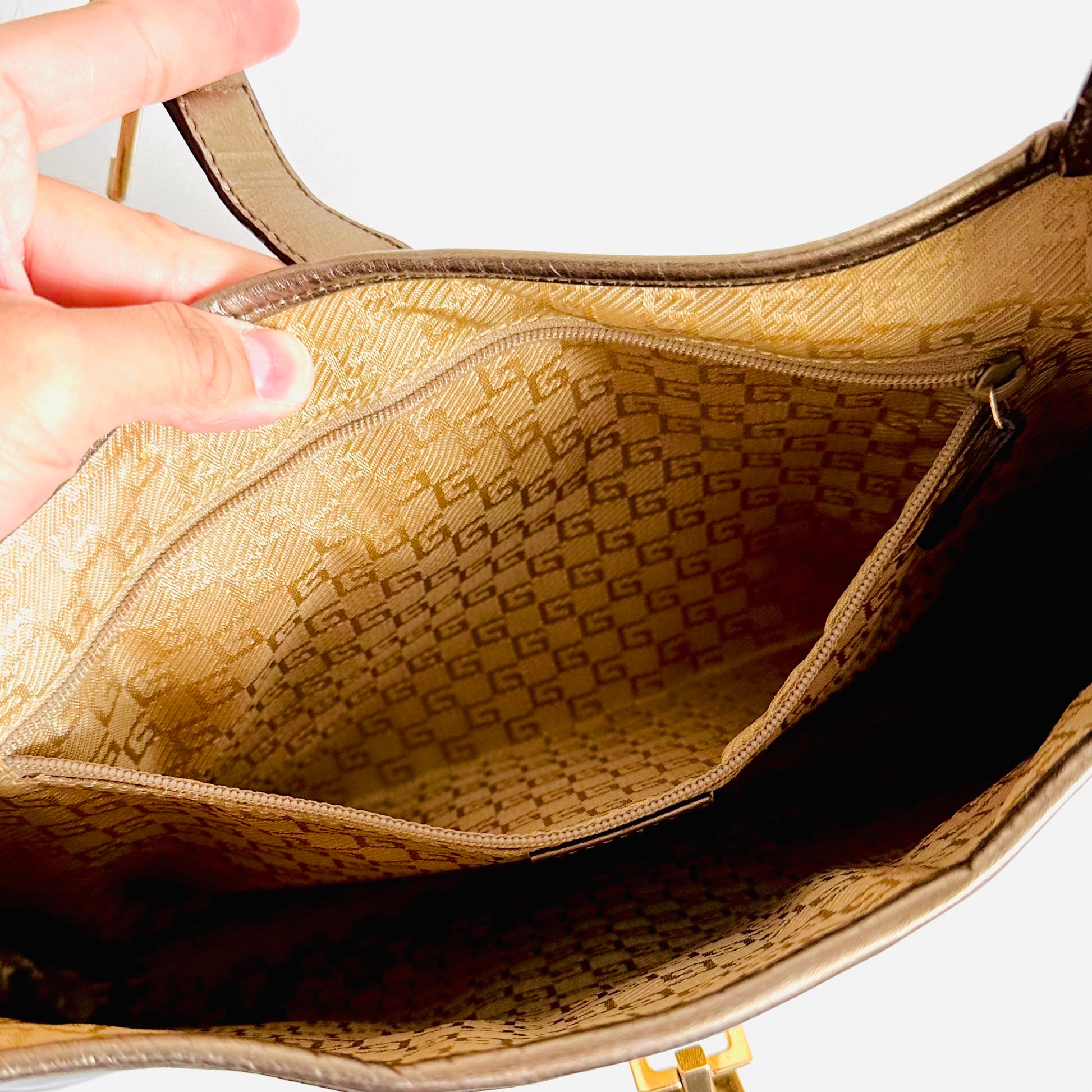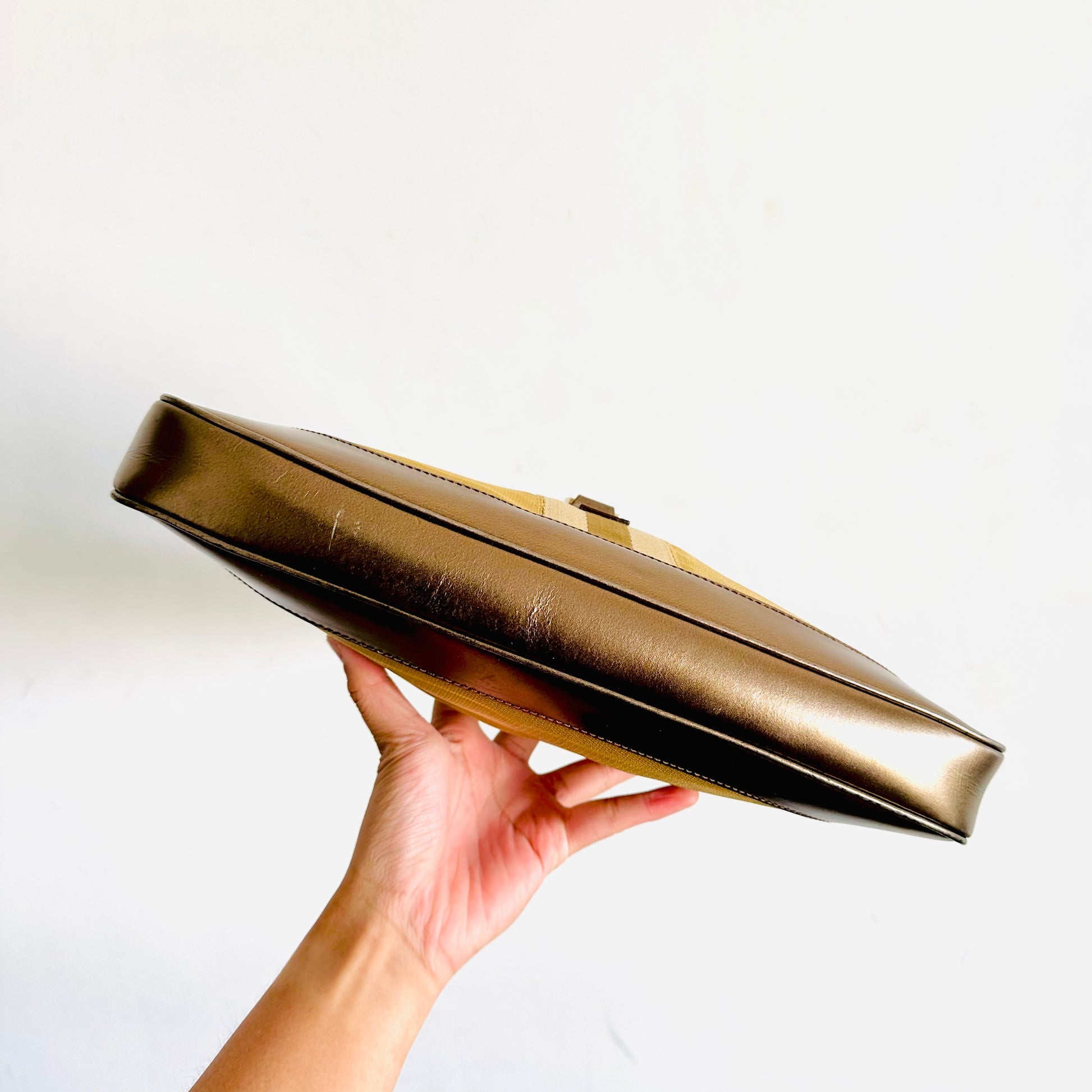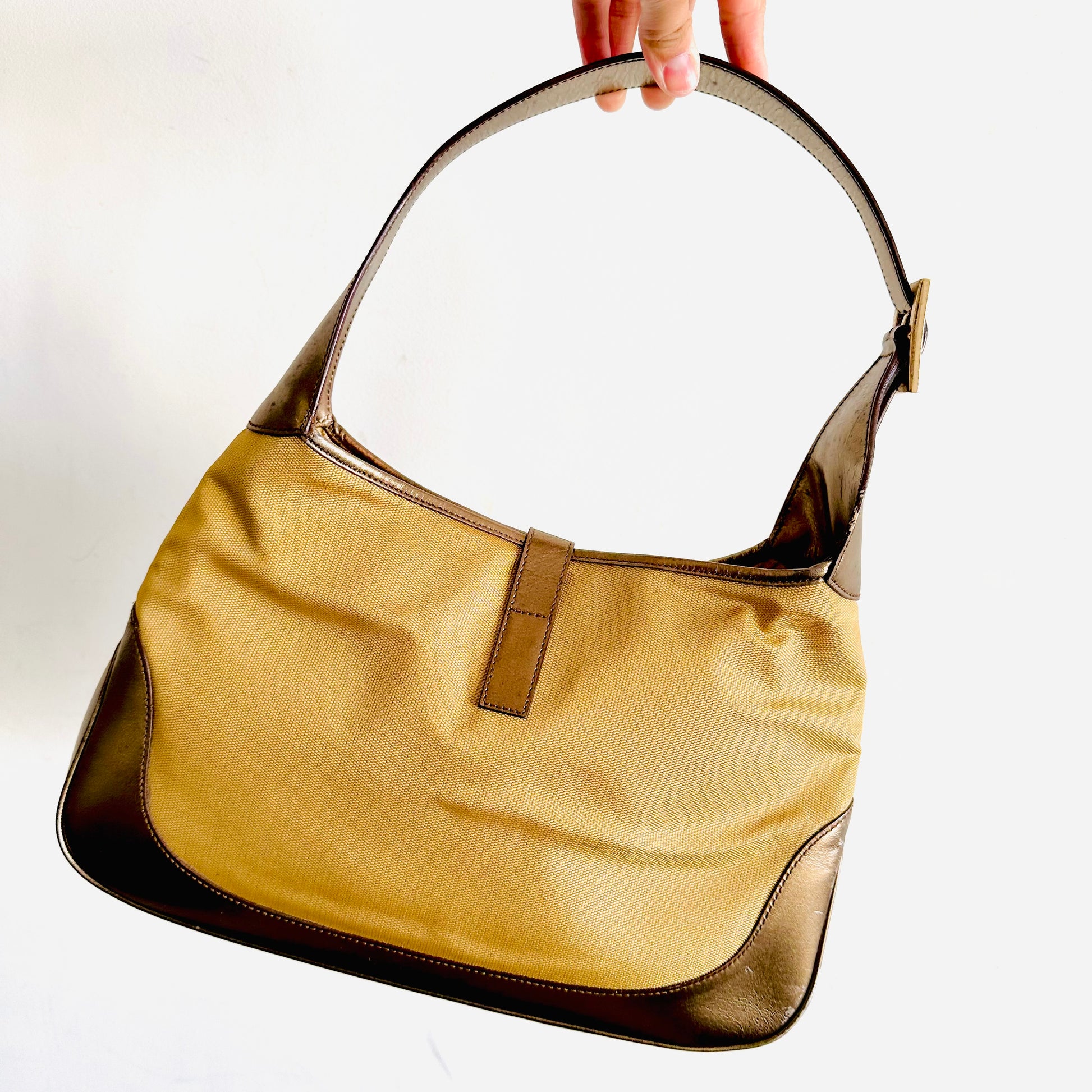 Gucci Jackie Brown / Gold GHW Monogram Logo Web Striped Vintage Hobo Shoulder Bag