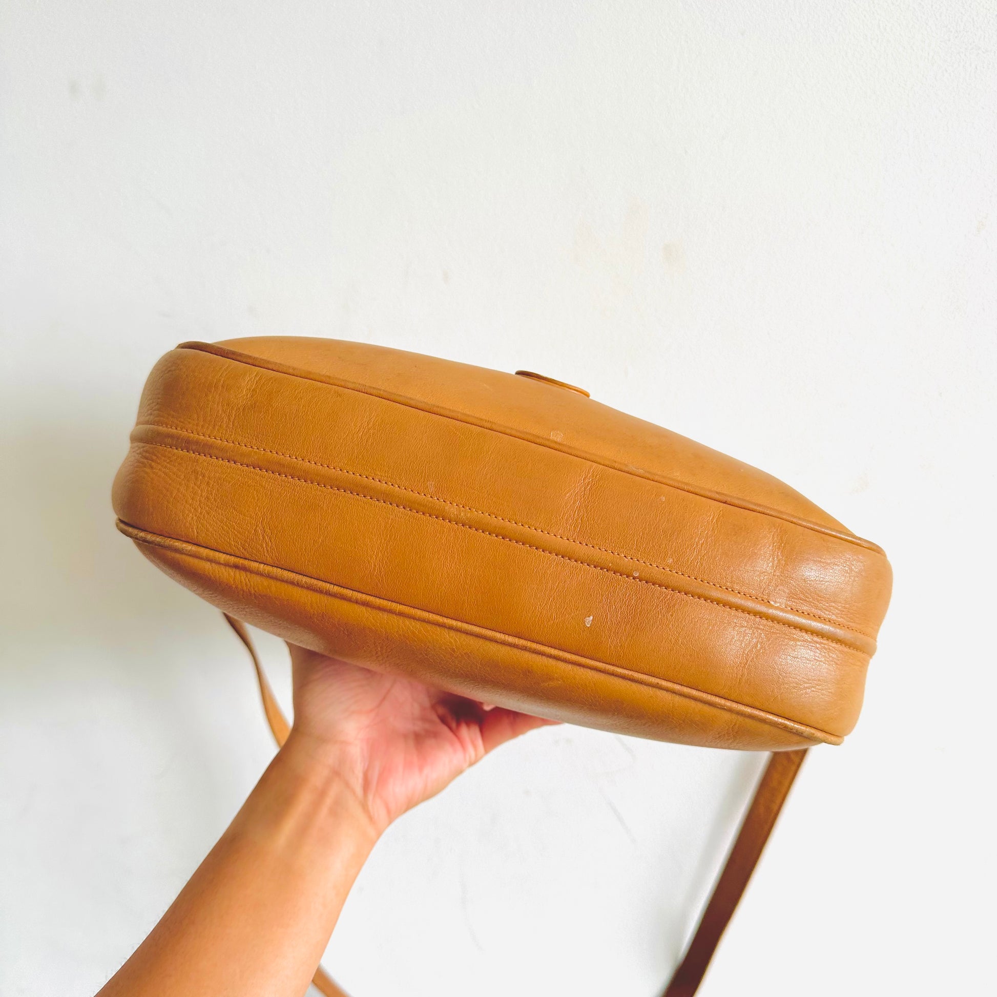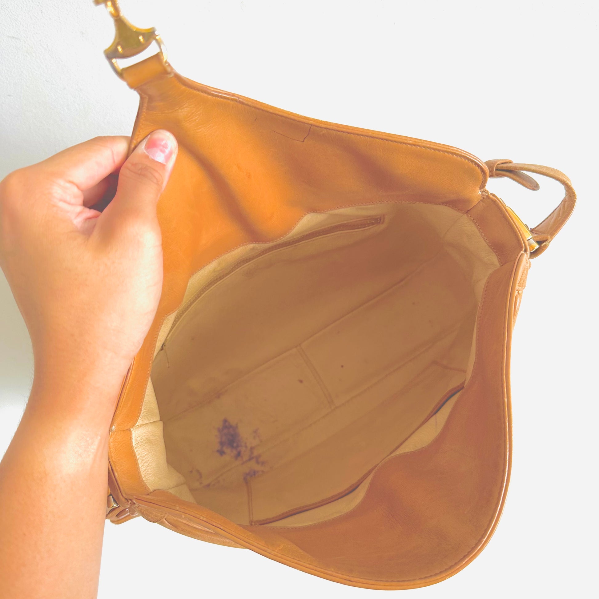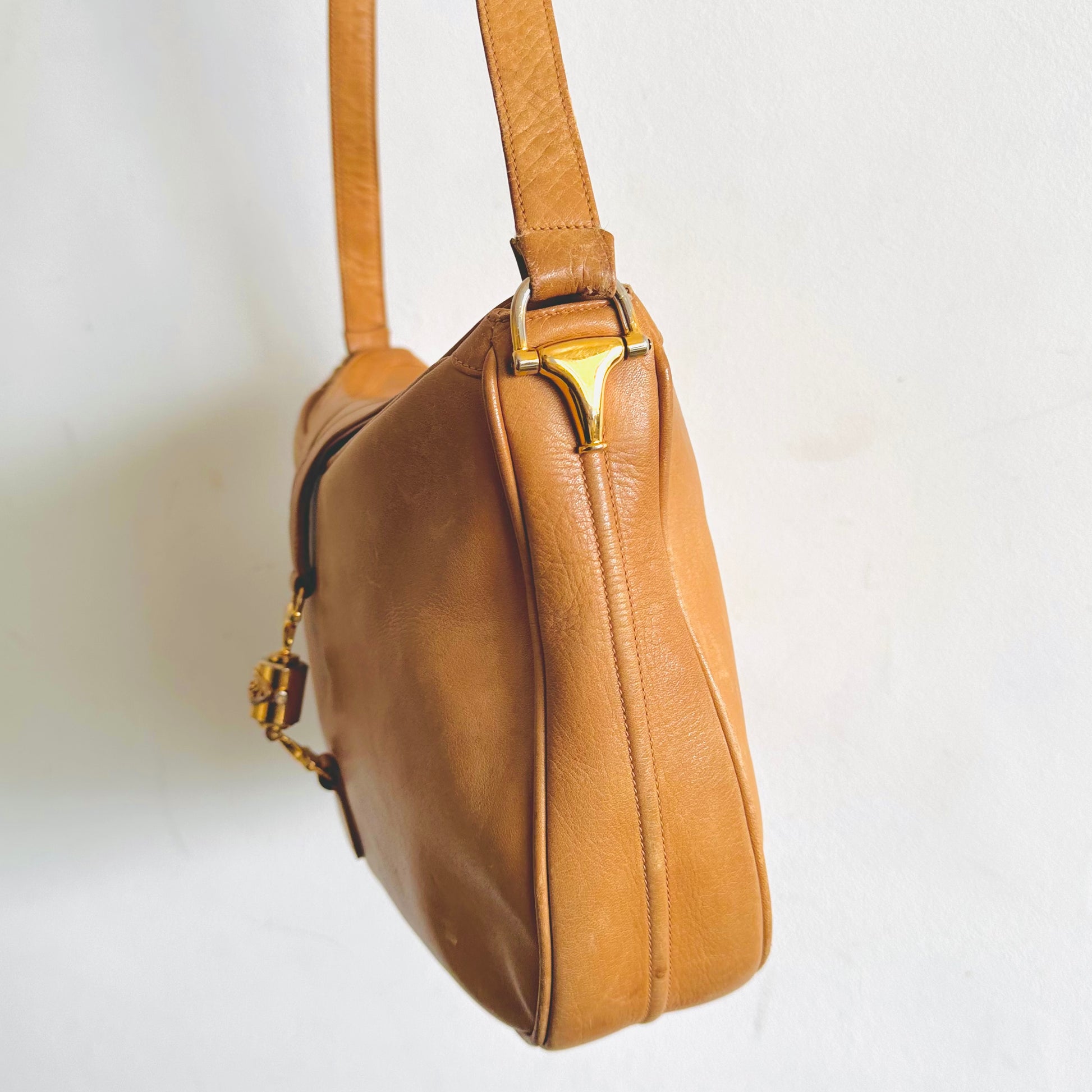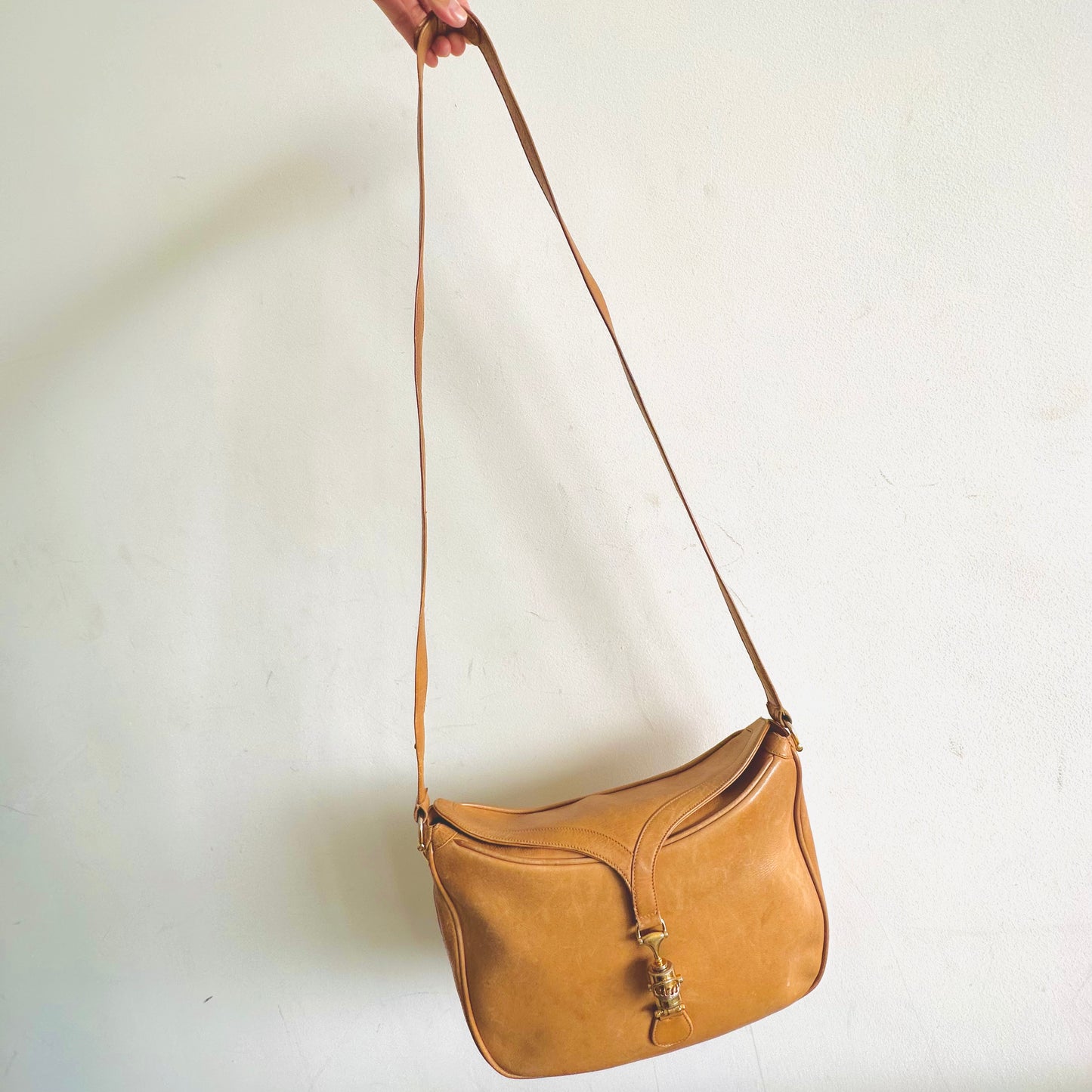 Gucci Jackie Caramel Tan Brown Leather GHW Monogram Logo Vintage 2-Way Flap Hobo Shoulder Sling Bag