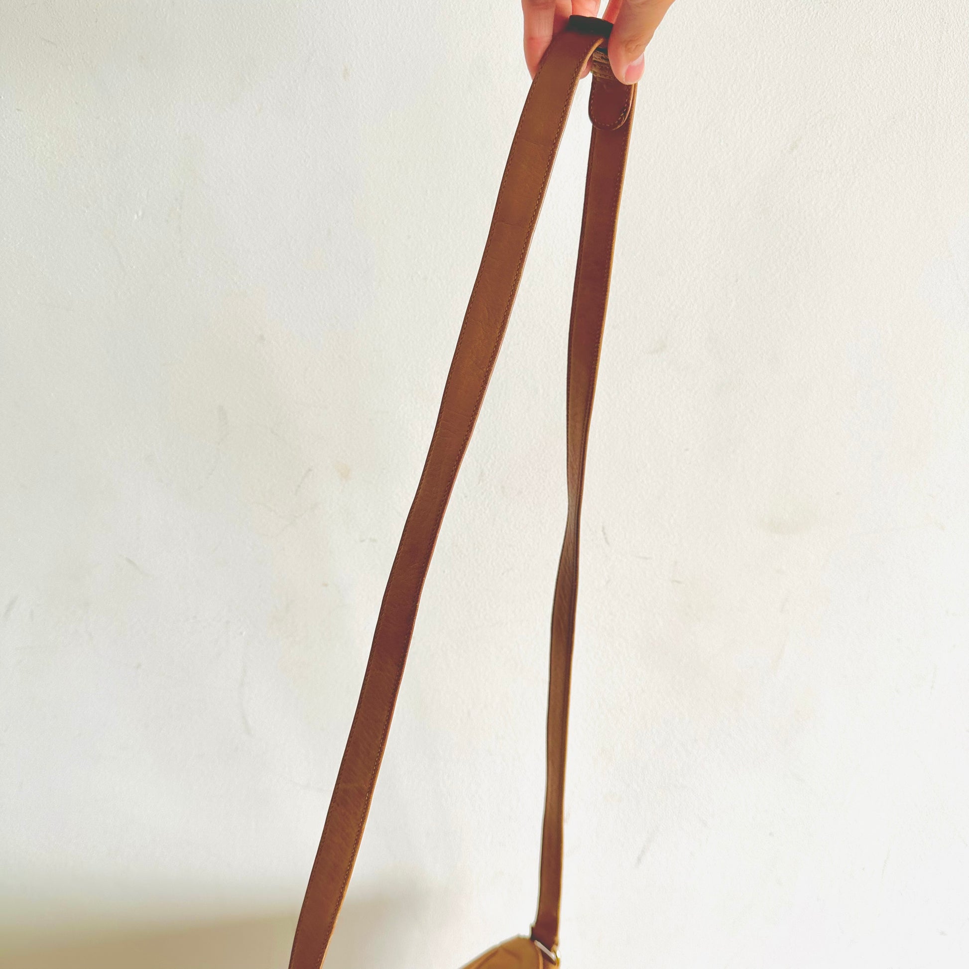 Preloved 9/10. This has an adjustable strap, clasp flap closure, central compartment, slip pocket and zip pocket. This measures 29x21x7cm.