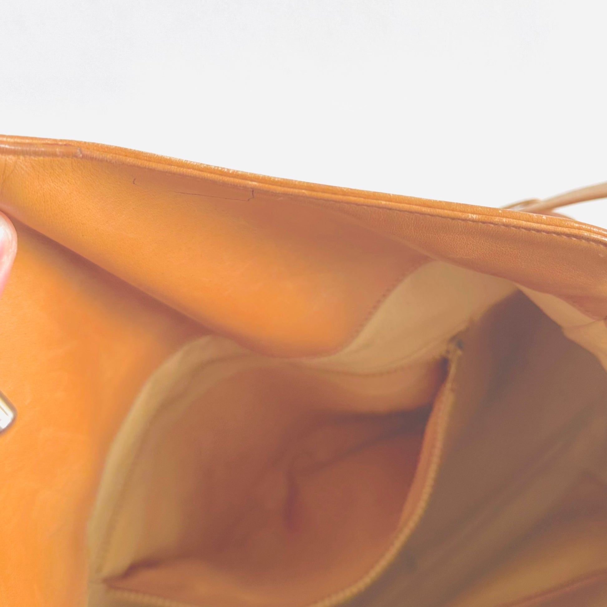 This has an adjustable strap, clasp flap closure, central compartment, slip pocket and zip pocket. This measures 29x21x7cm. This comes with clearly engraved hardware and interior stamping.Ā This canĀ be carried top handle/ shoulder/ crook of arm/ crossbody :)Ā