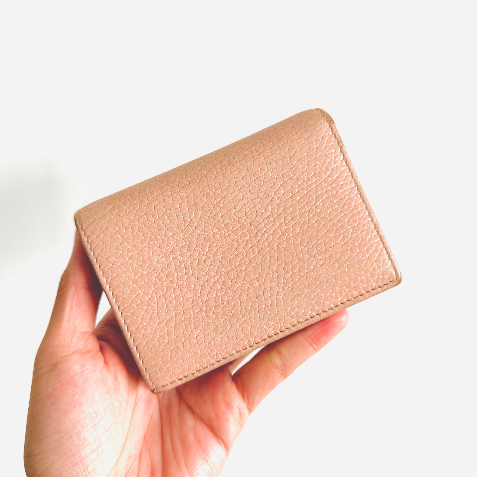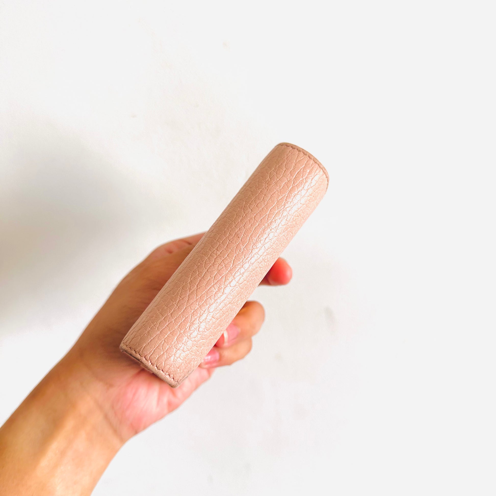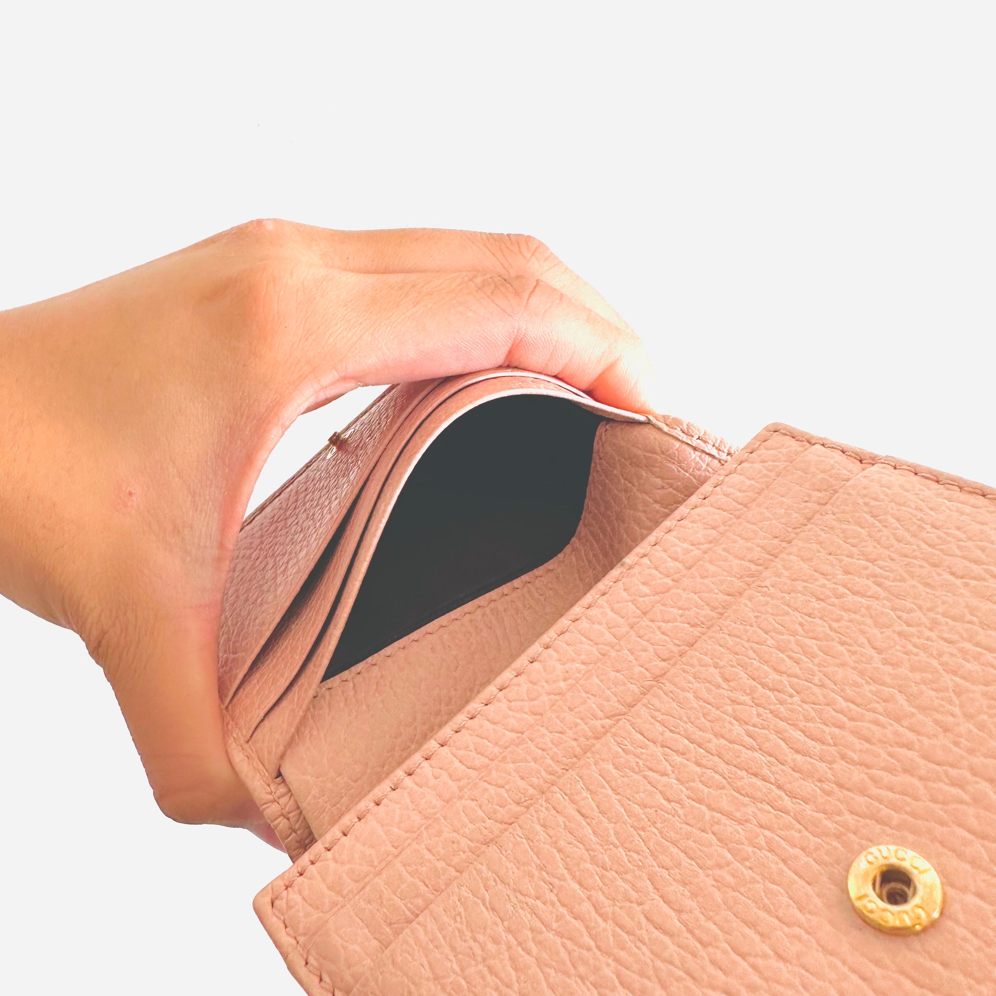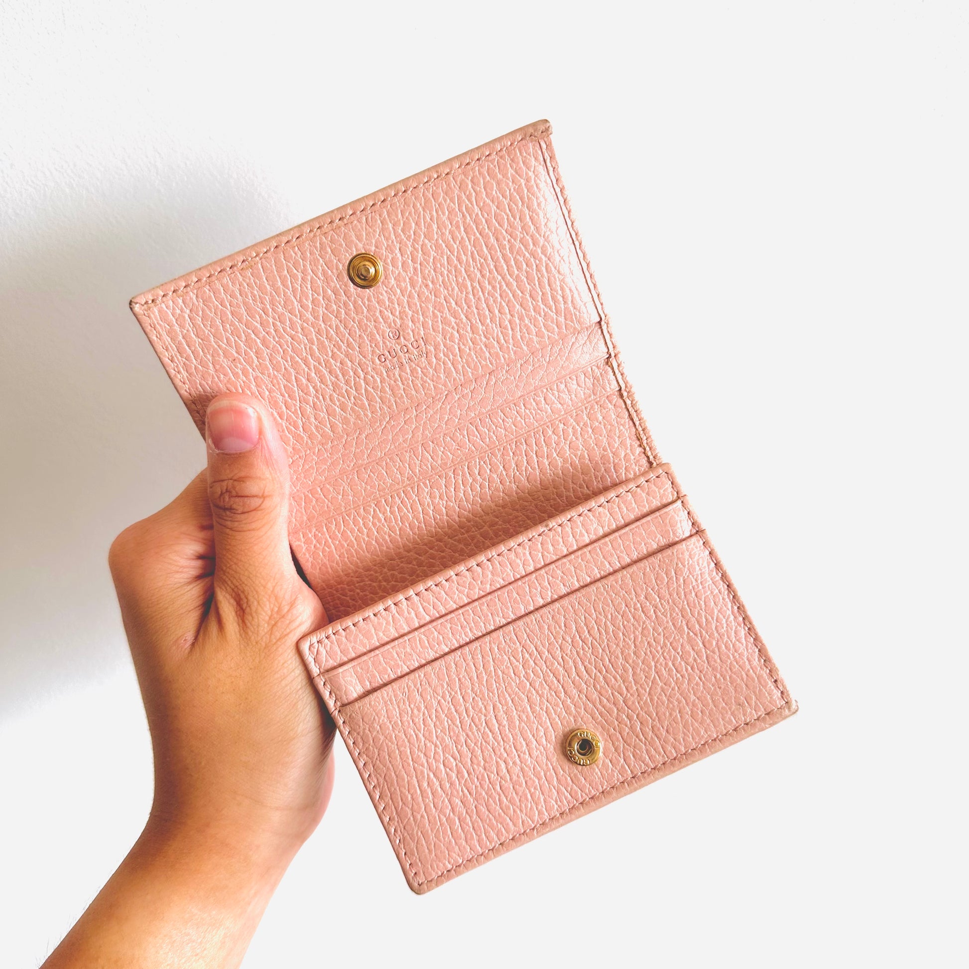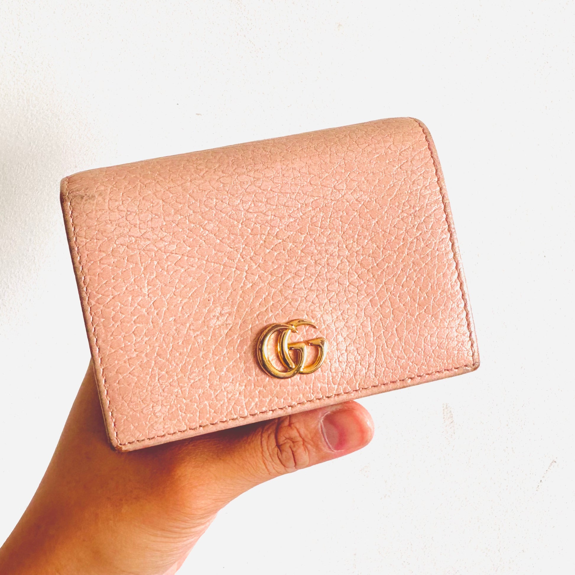 Gucci Marmont Pink GHW GG Monogram Logo Grained Leather Flap Bifold Compact Wallet