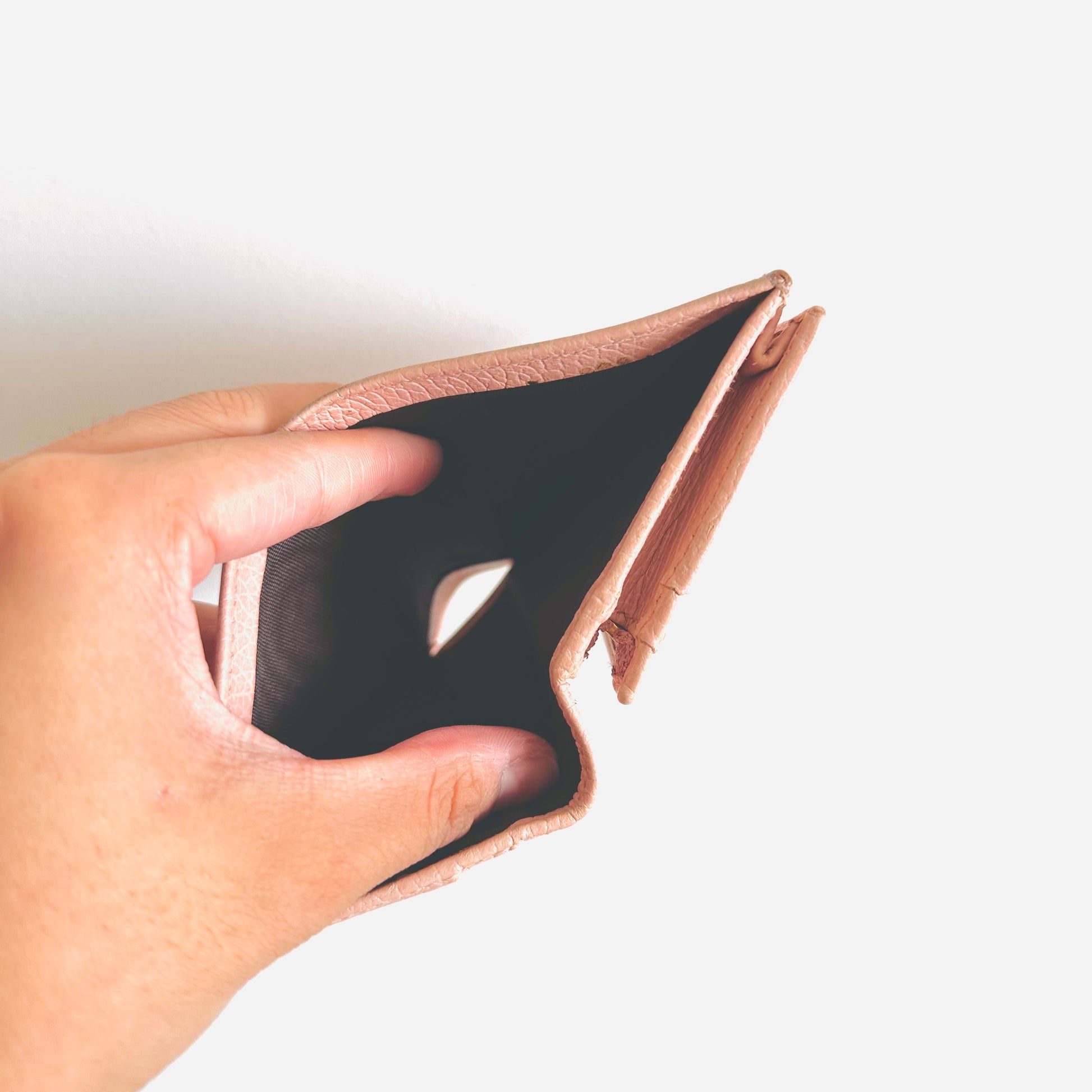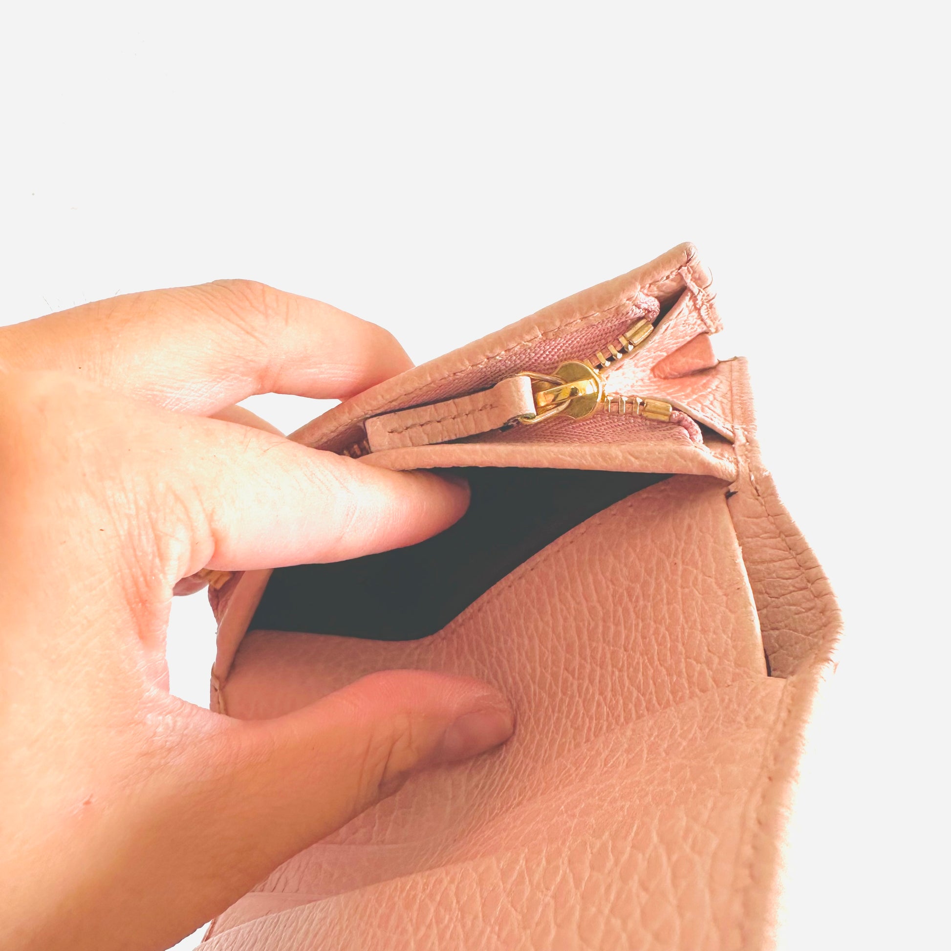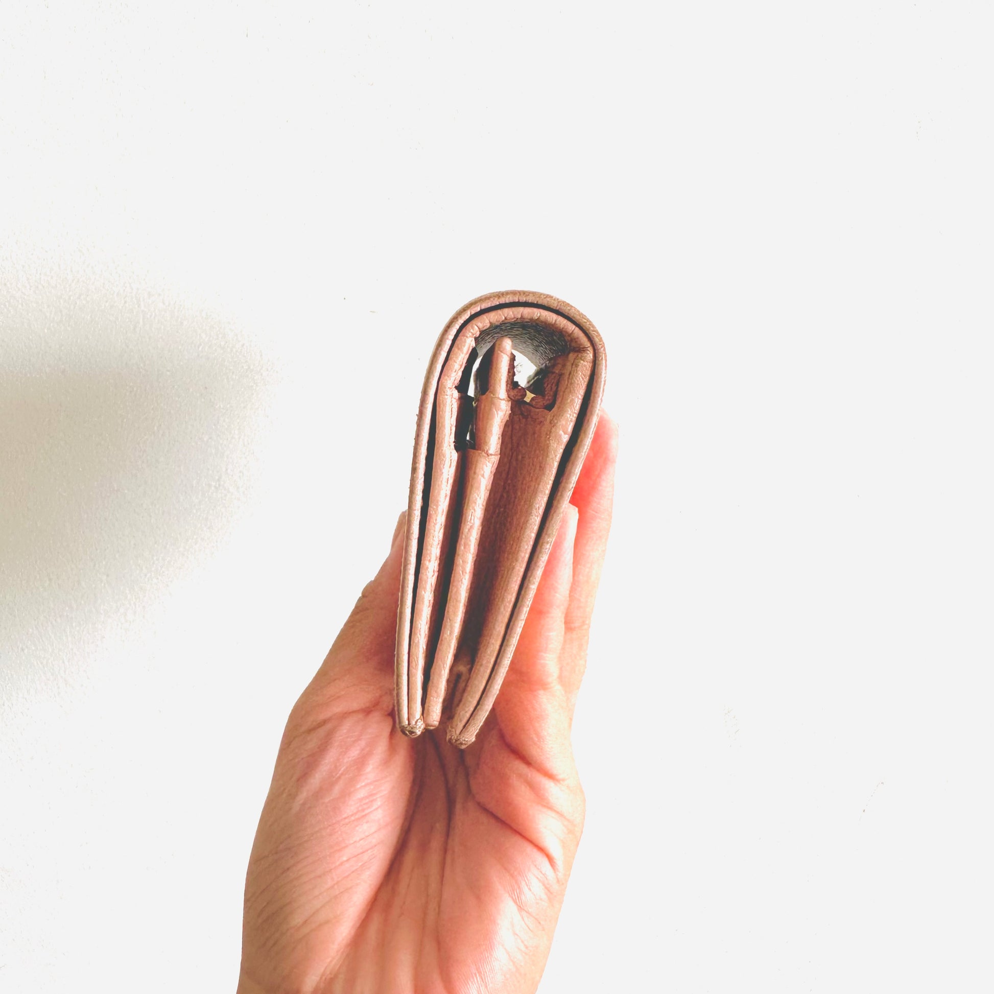 Preloved 9.4/10. This has a snap button closure, notes compartment, zip coin pocket, card slots and slip pockets. This measures 11x8x2cm.