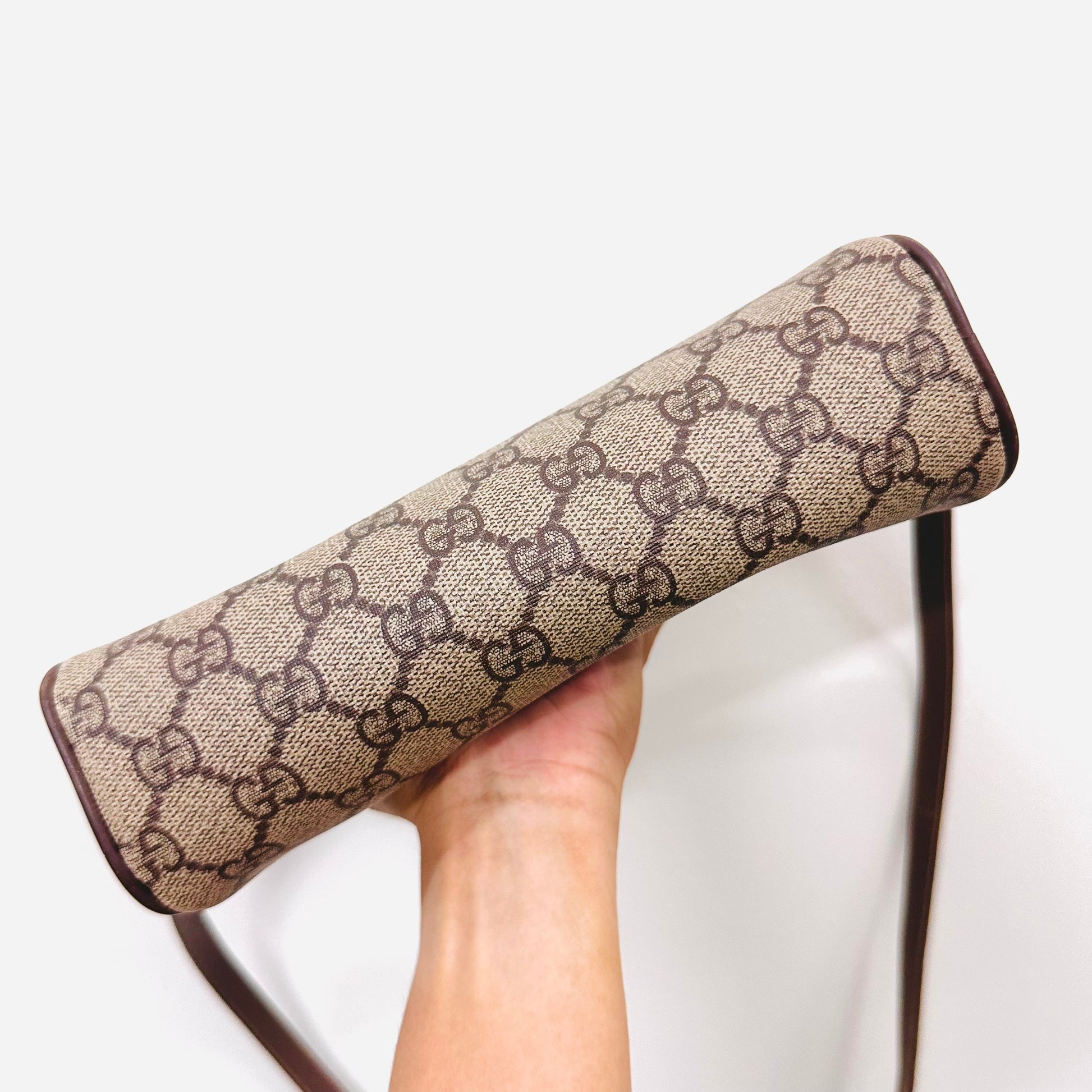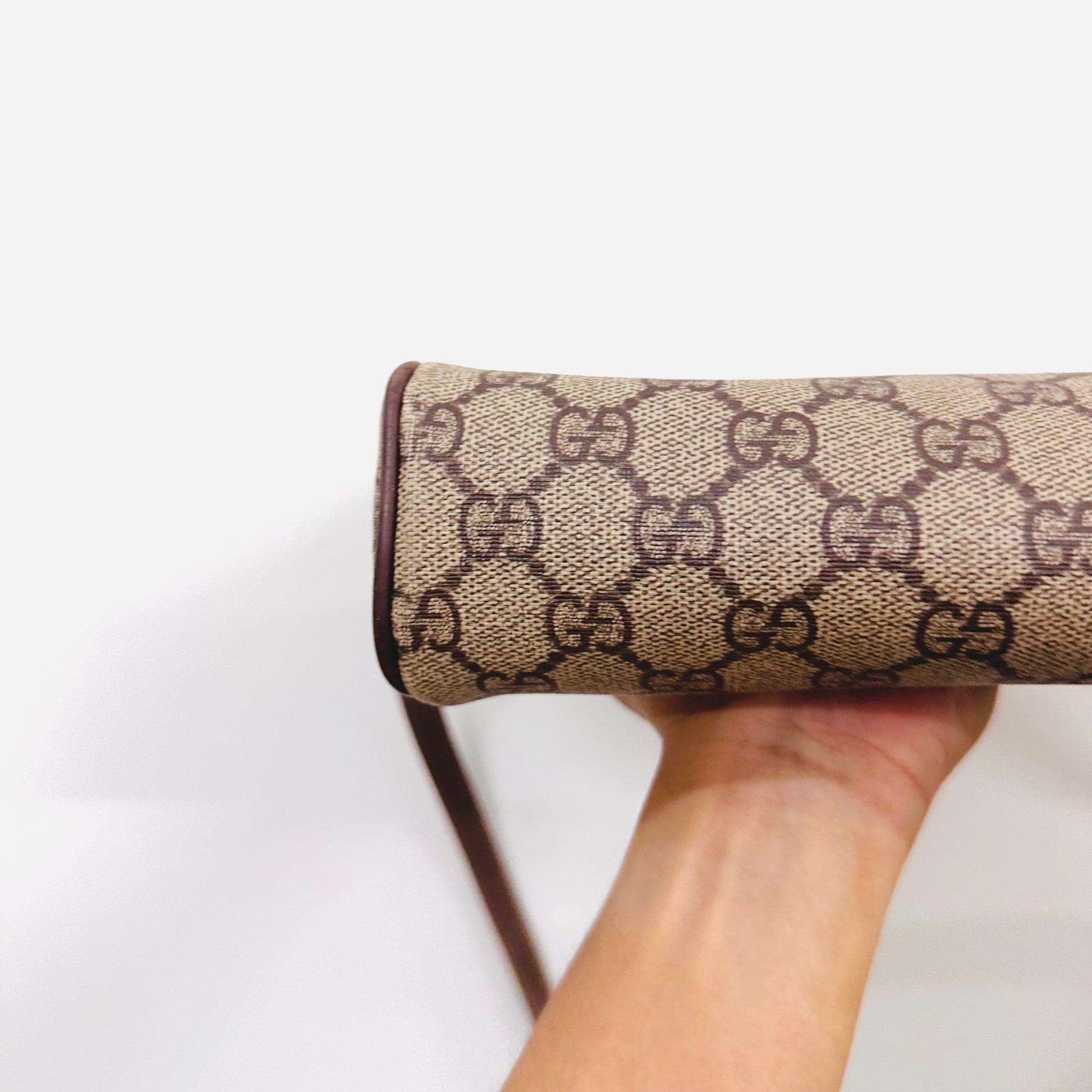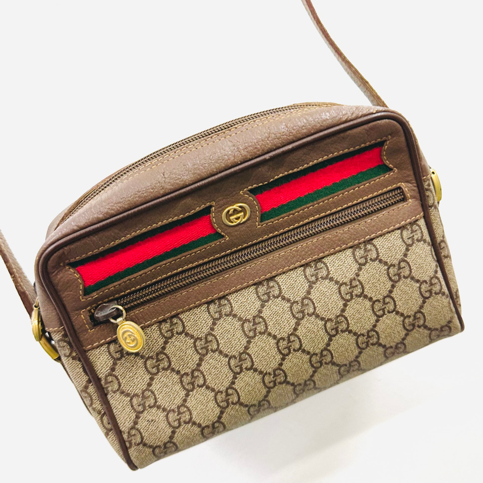 Gucci Ophidia Beige GHW GG Monogram Logo Web Striped Camera Shoulder Sling Bag