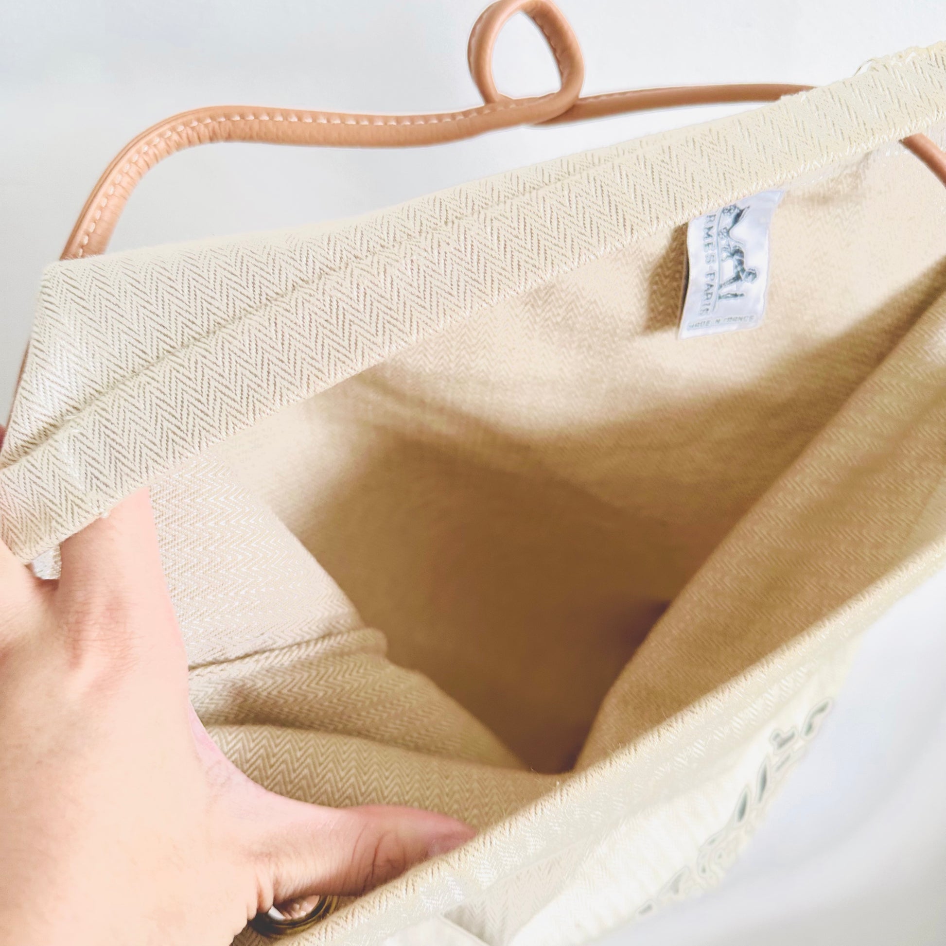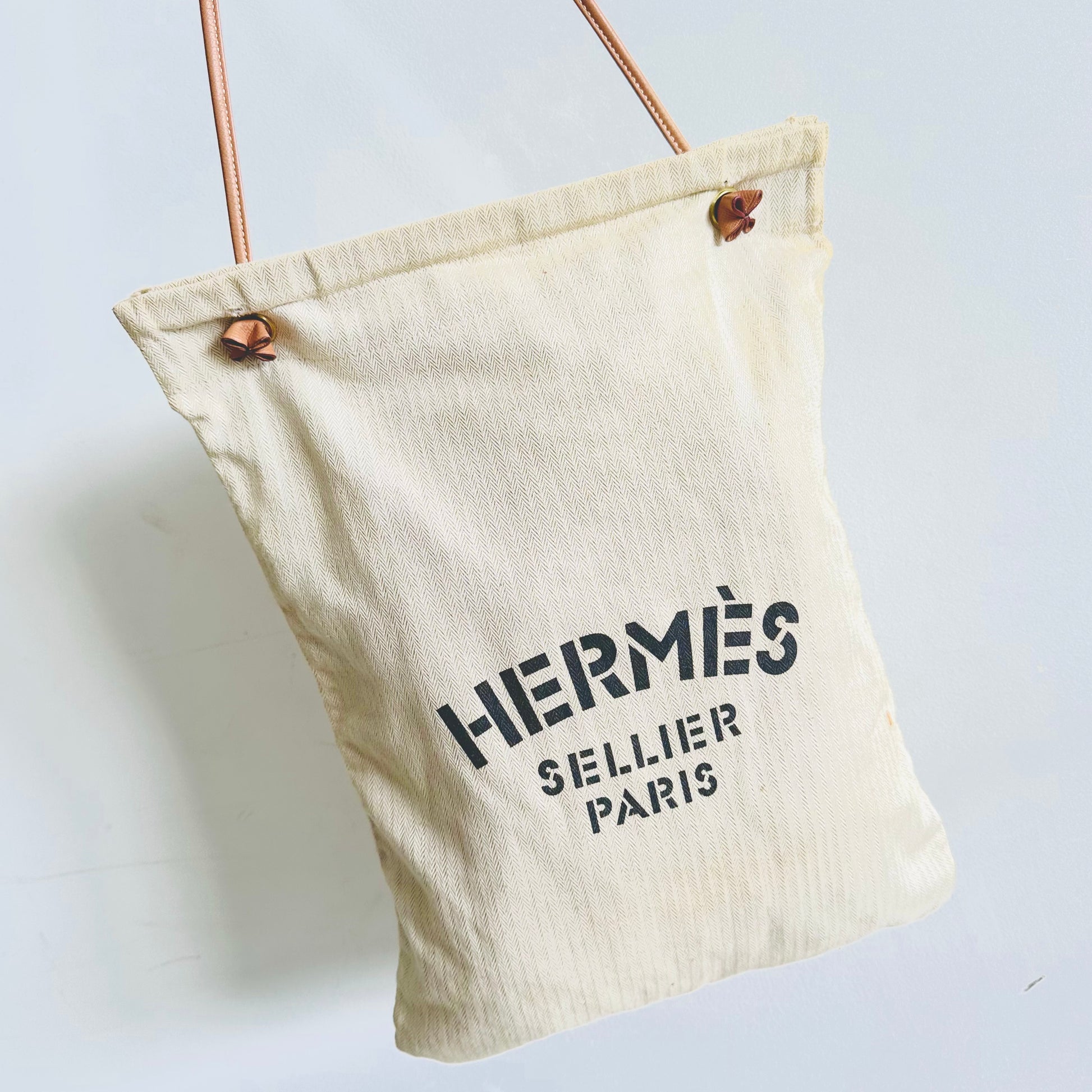 Hermes Aline White Toile & Gold Leather Sellier Grooming Monogram Logo Shoulder Sling Bag
