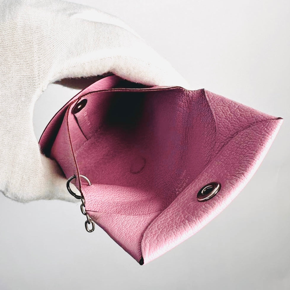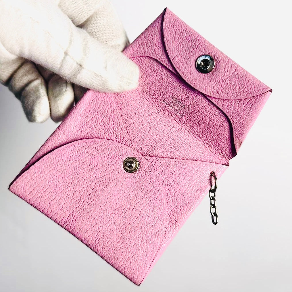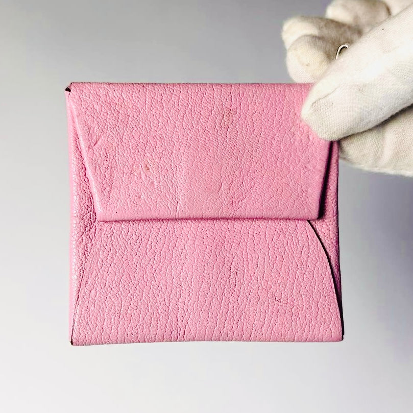 Hermes Bastia Mauve Sylvestre Pink Classic Chevre Leather Flap Coin Purse Wallet