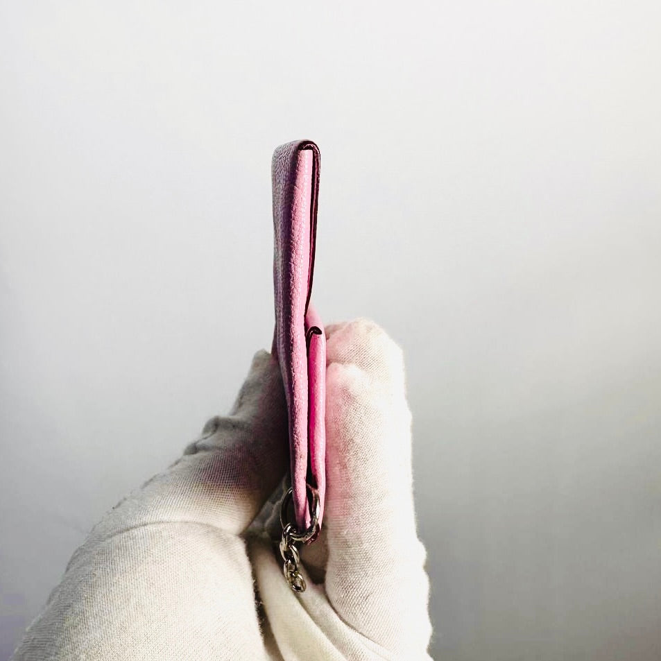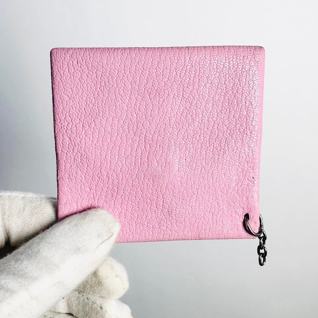 This has a flap button closure and central compartment. This measures 8.5x8x1cm. This comes with clearly engraved hardware and interior stamping. C stamp (2018).