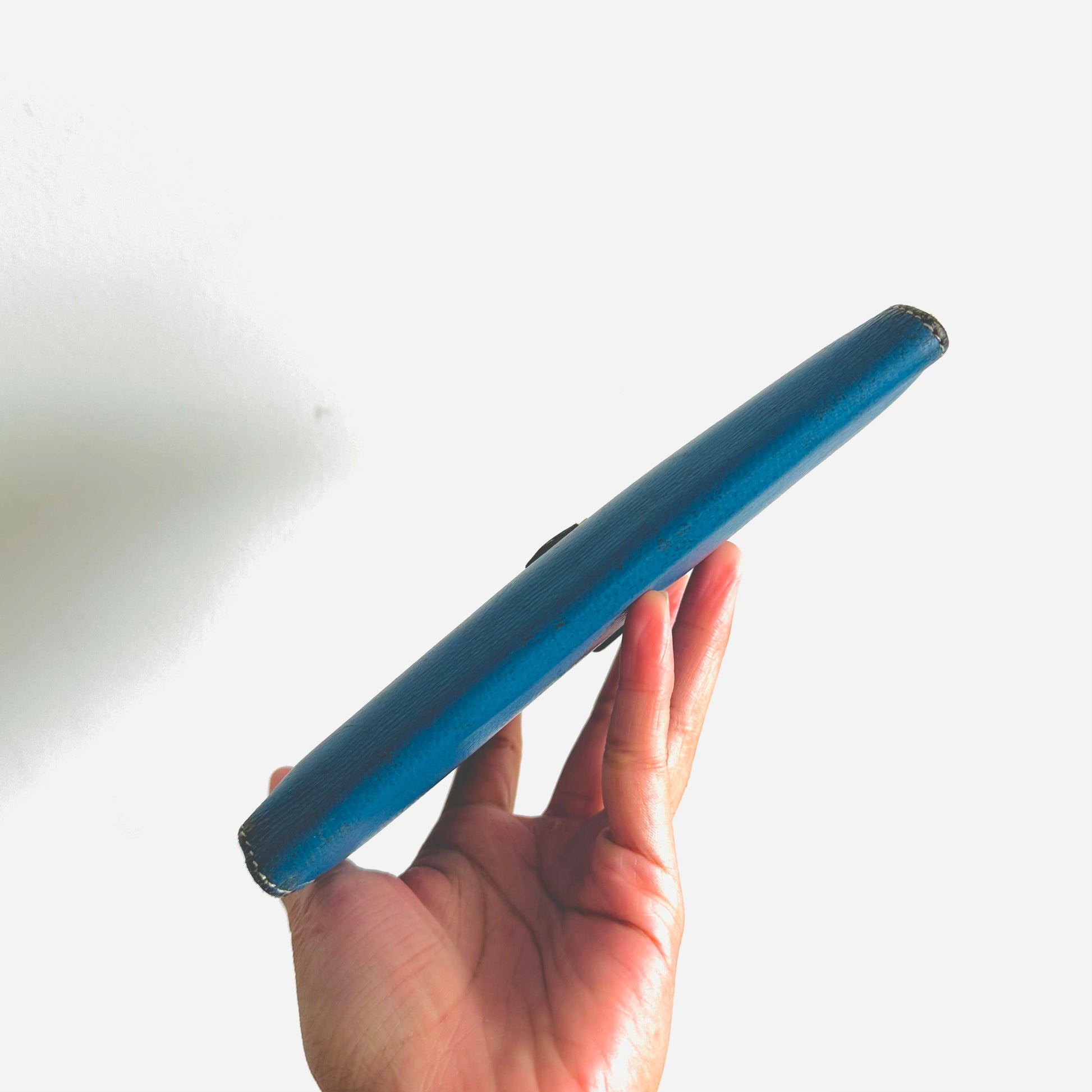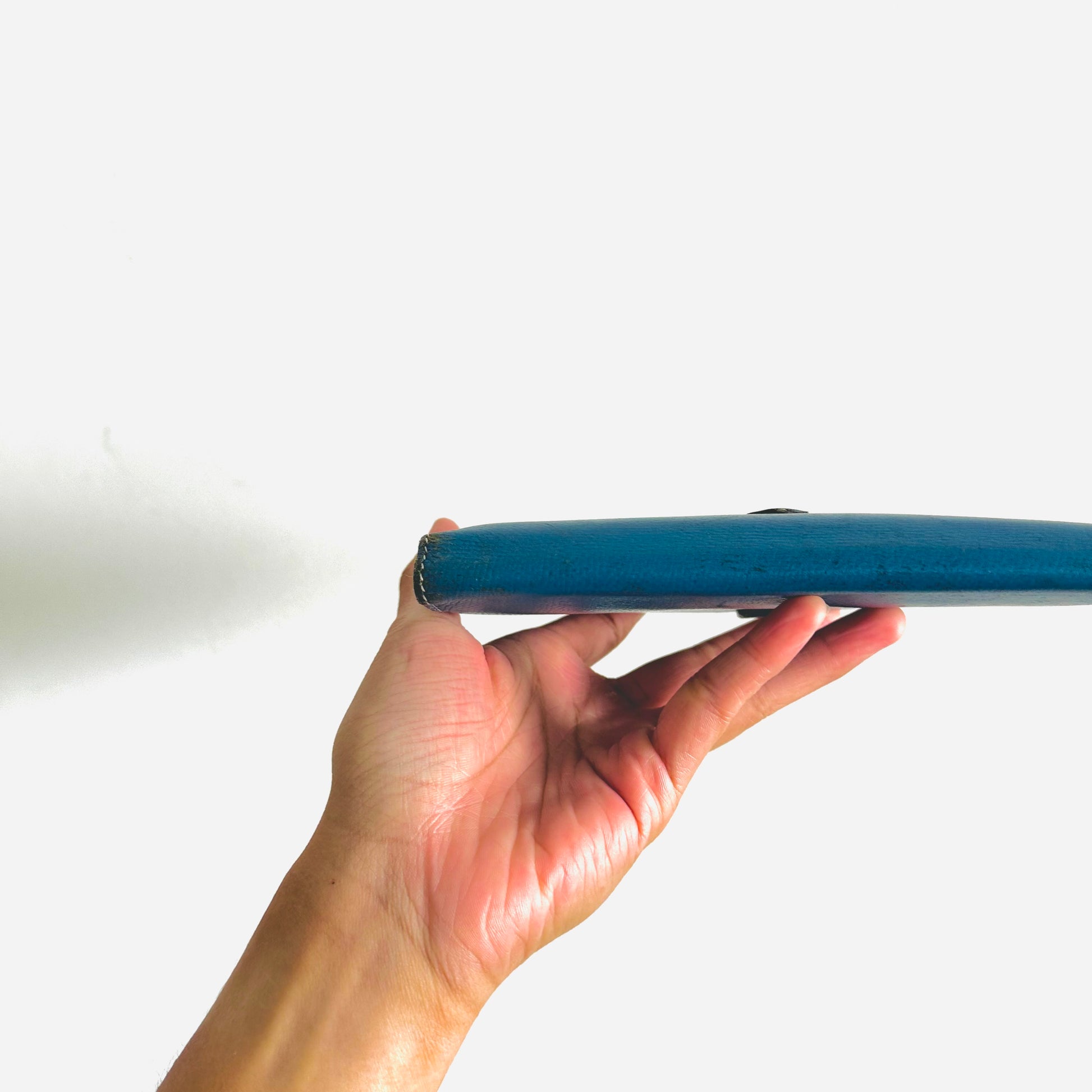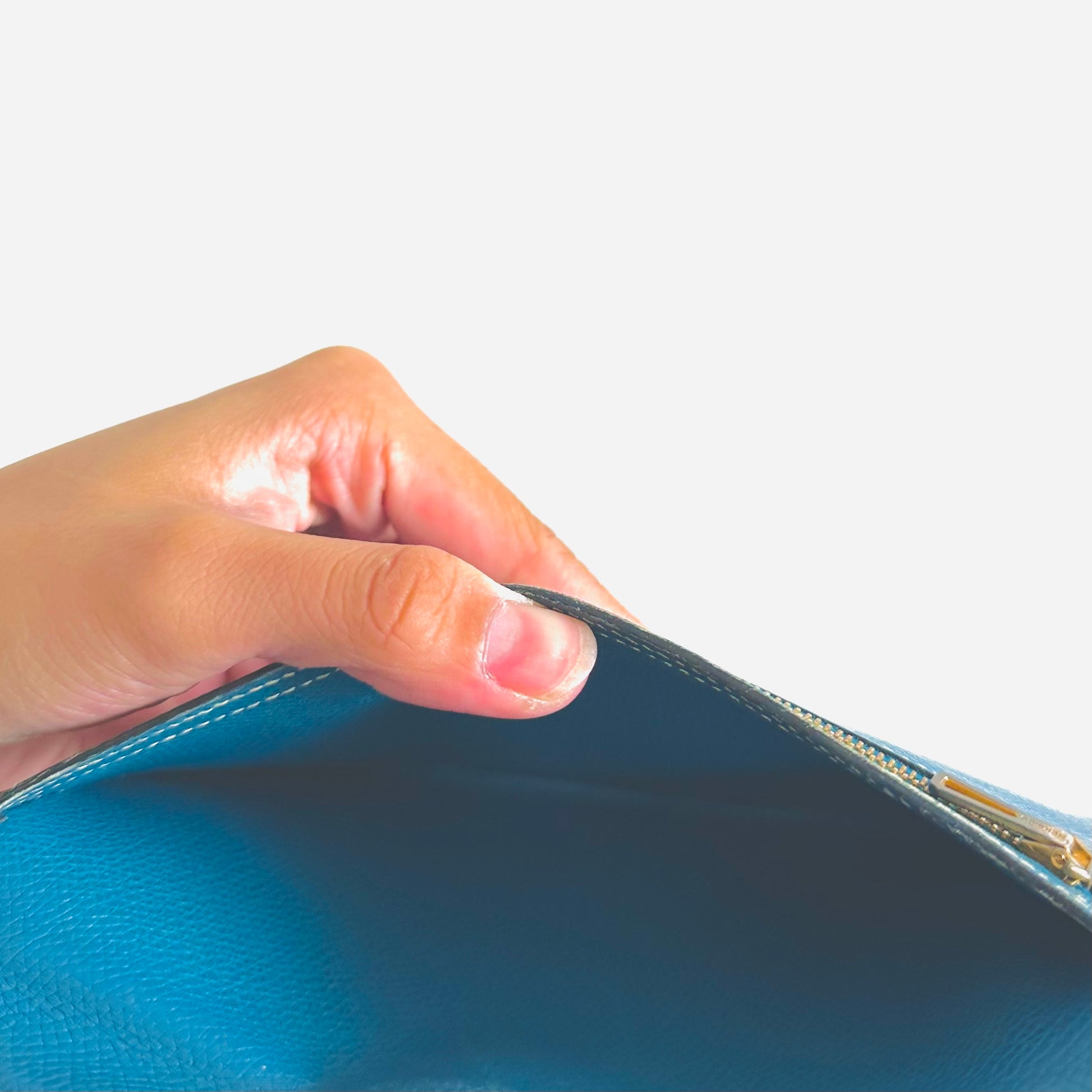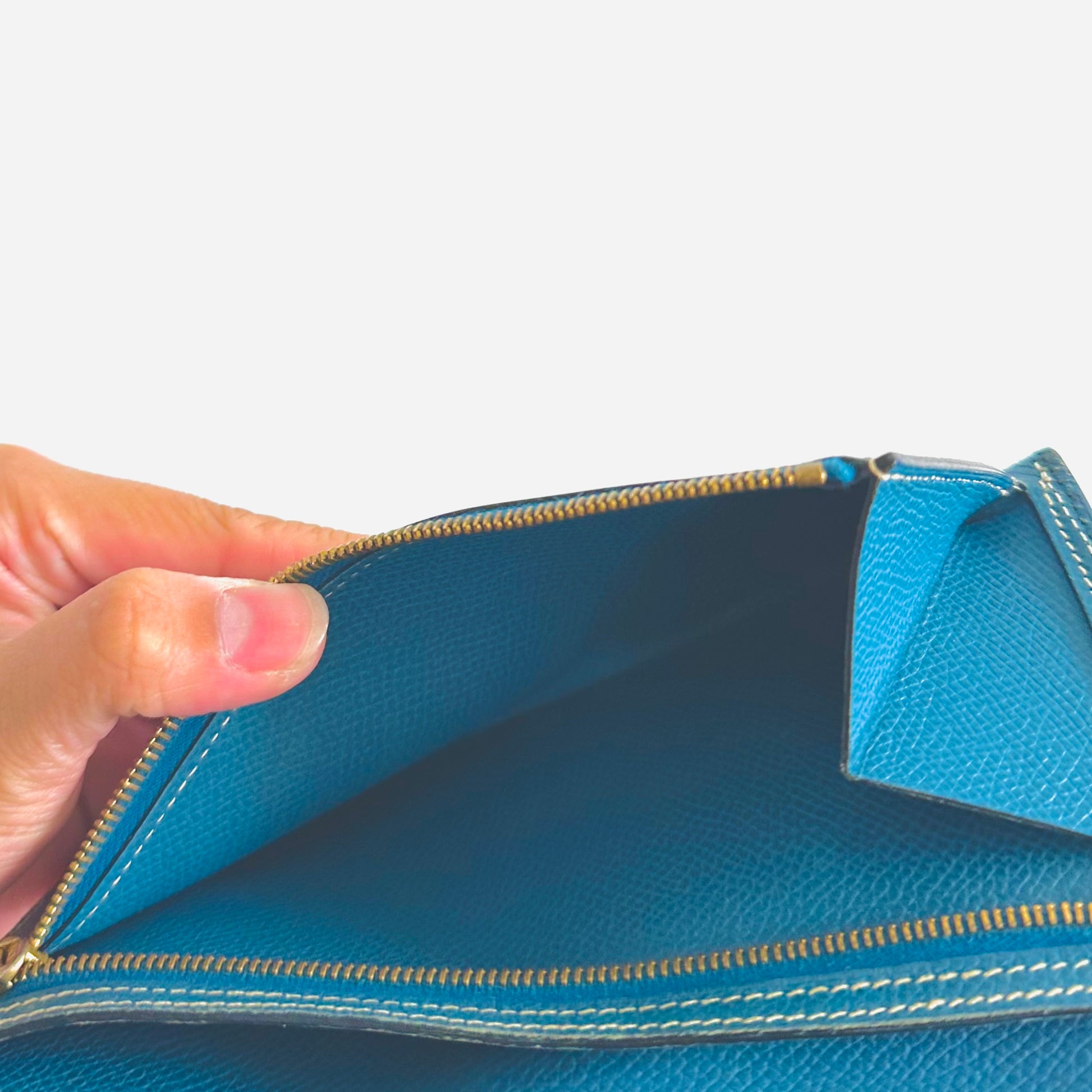 Hermes Bearn Blue Bleu Jean GHW H Logo Epsom Grained Leather Trifold Flap Long Wallet