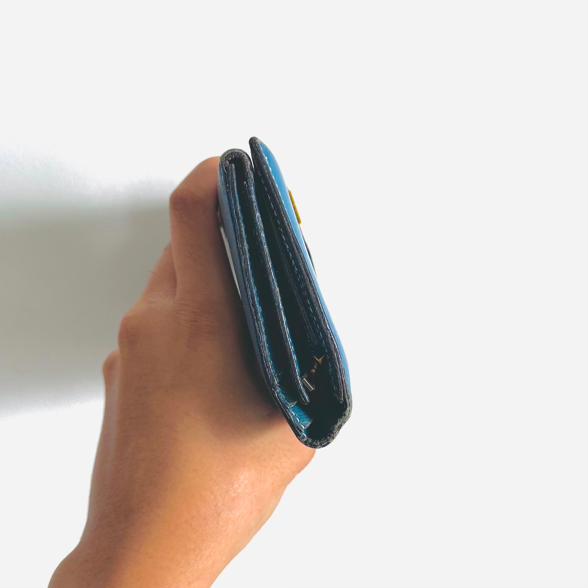 Preloved 9.3/10. This has a flap gusset closure, card slots, bill pocket, zip coin purse and slip pockets. This measures 18x10x2cm.
