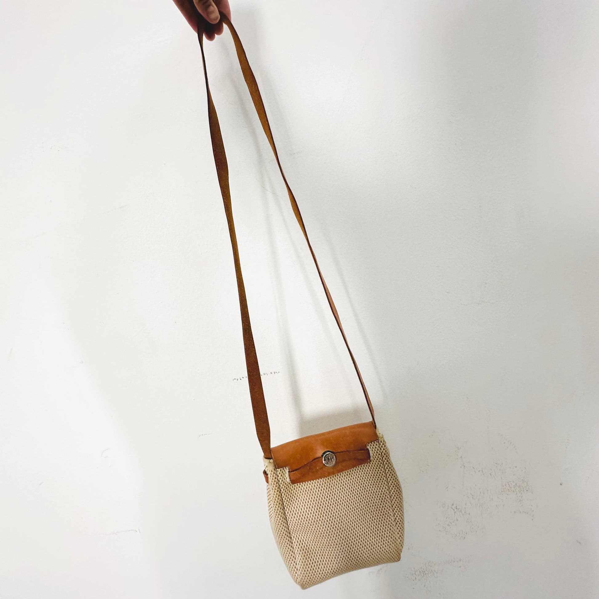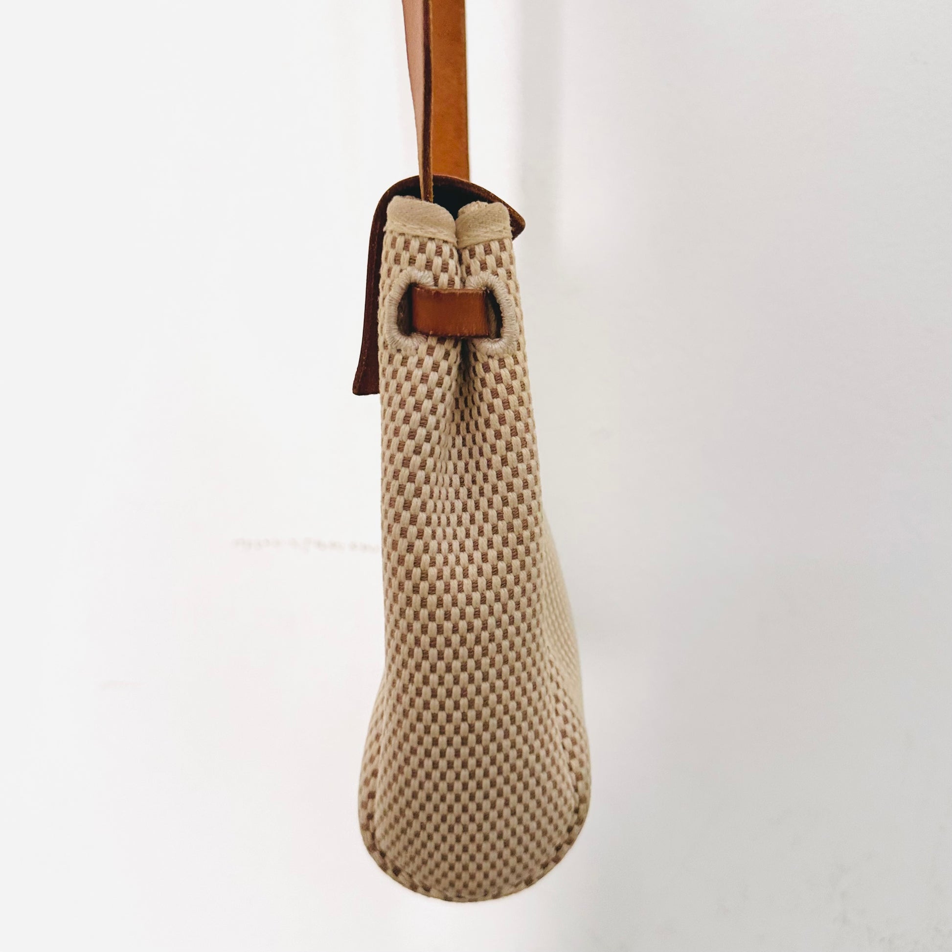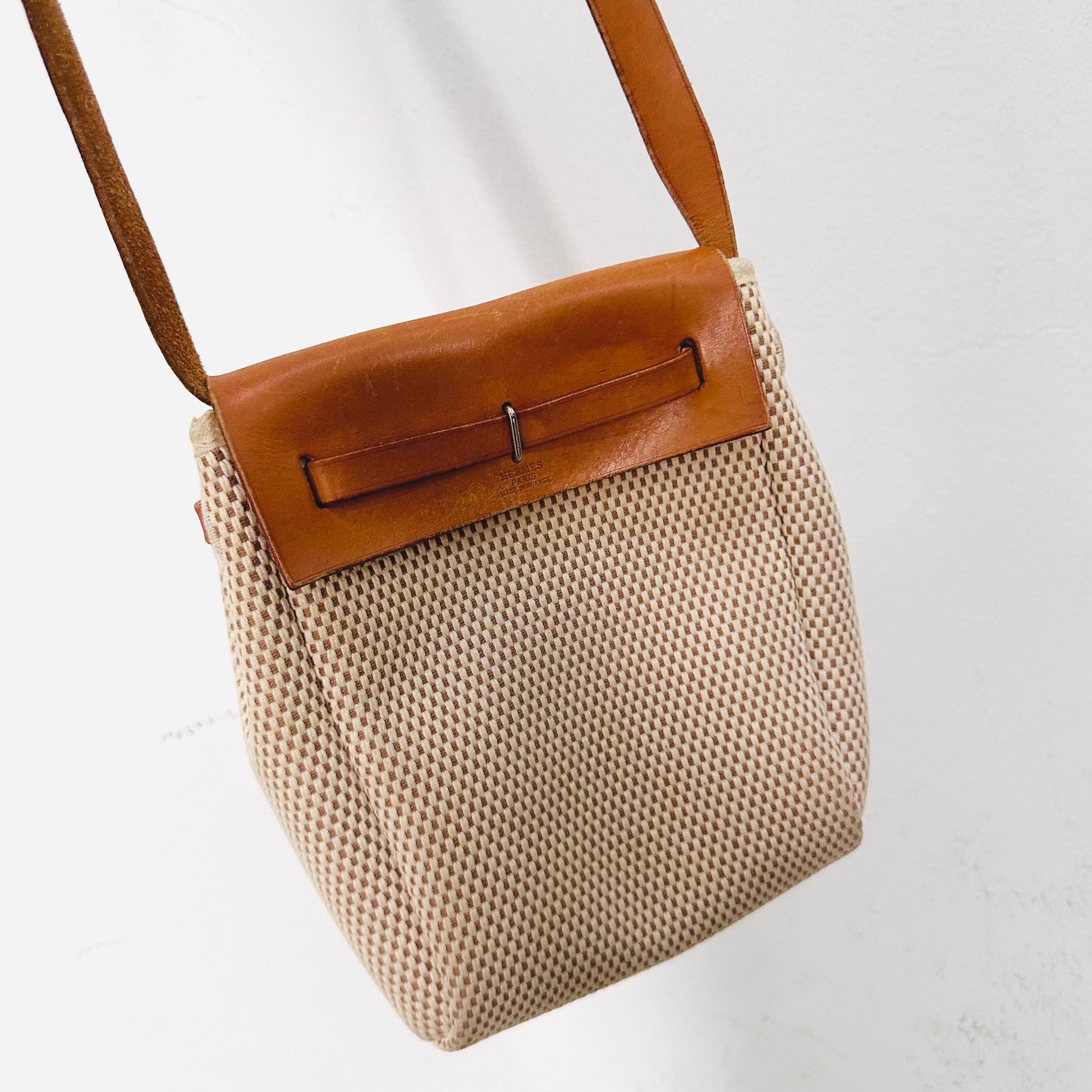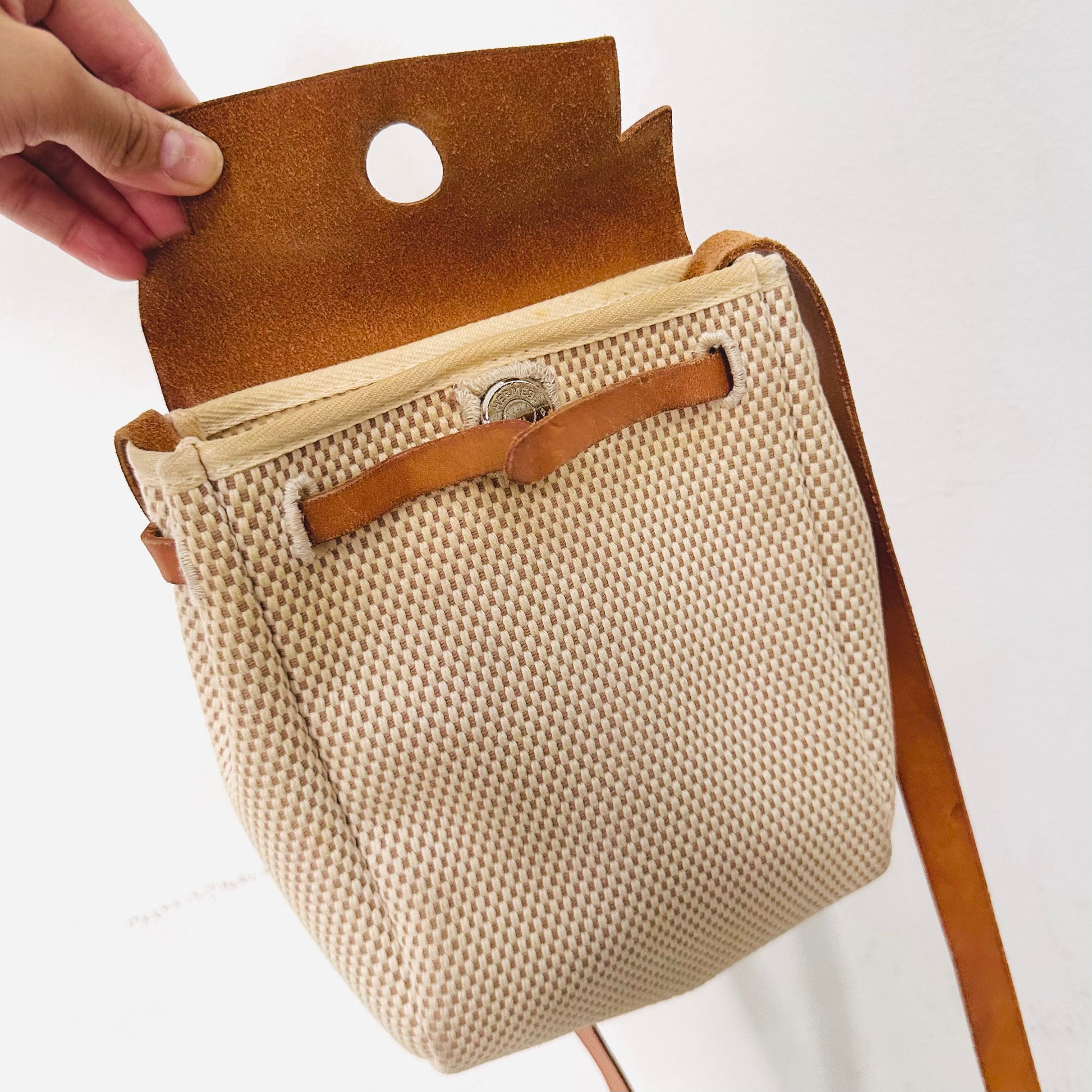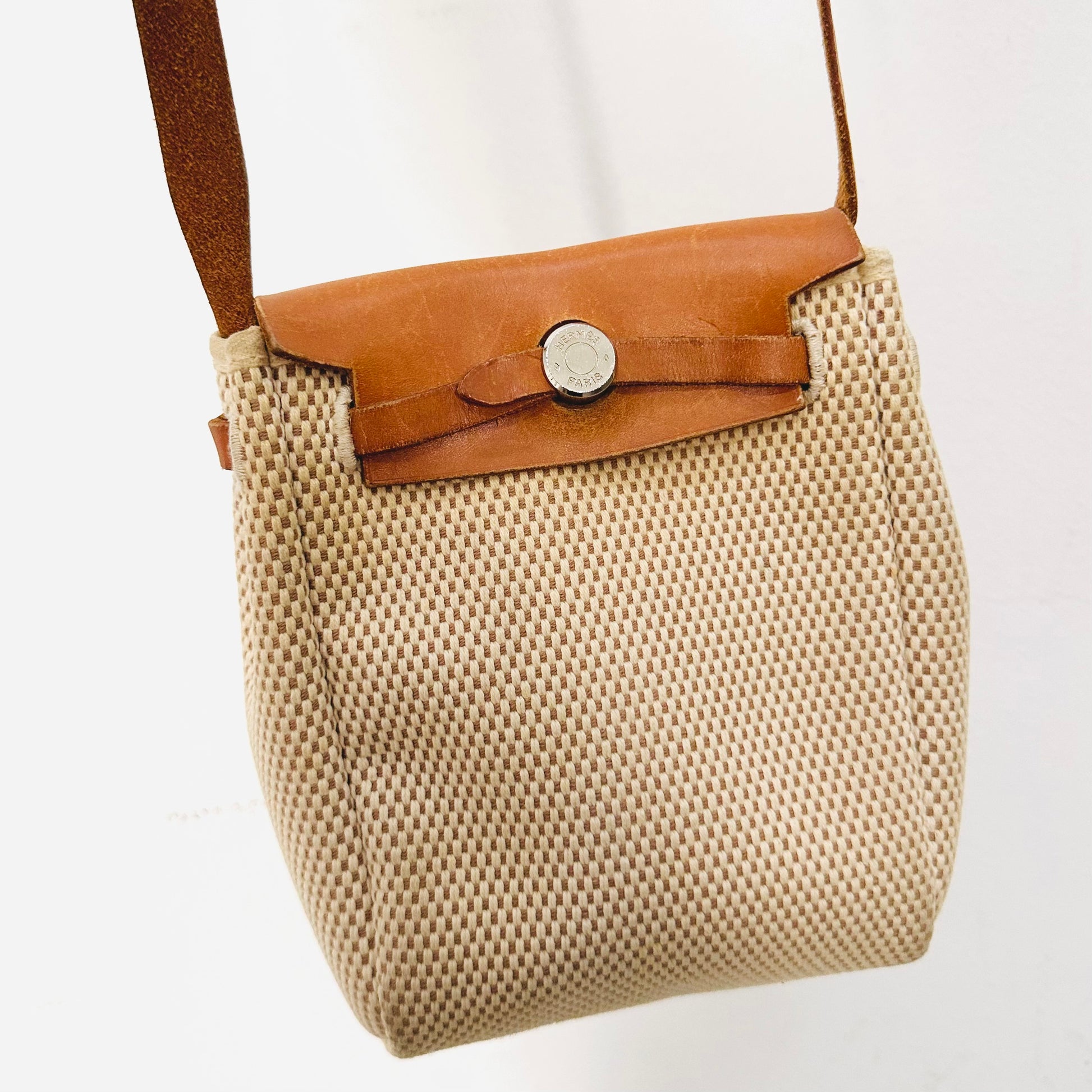 Hermes Beige / Tan Herbag TPM Toile / Leather Mini Flap Shoulder Sling Bag